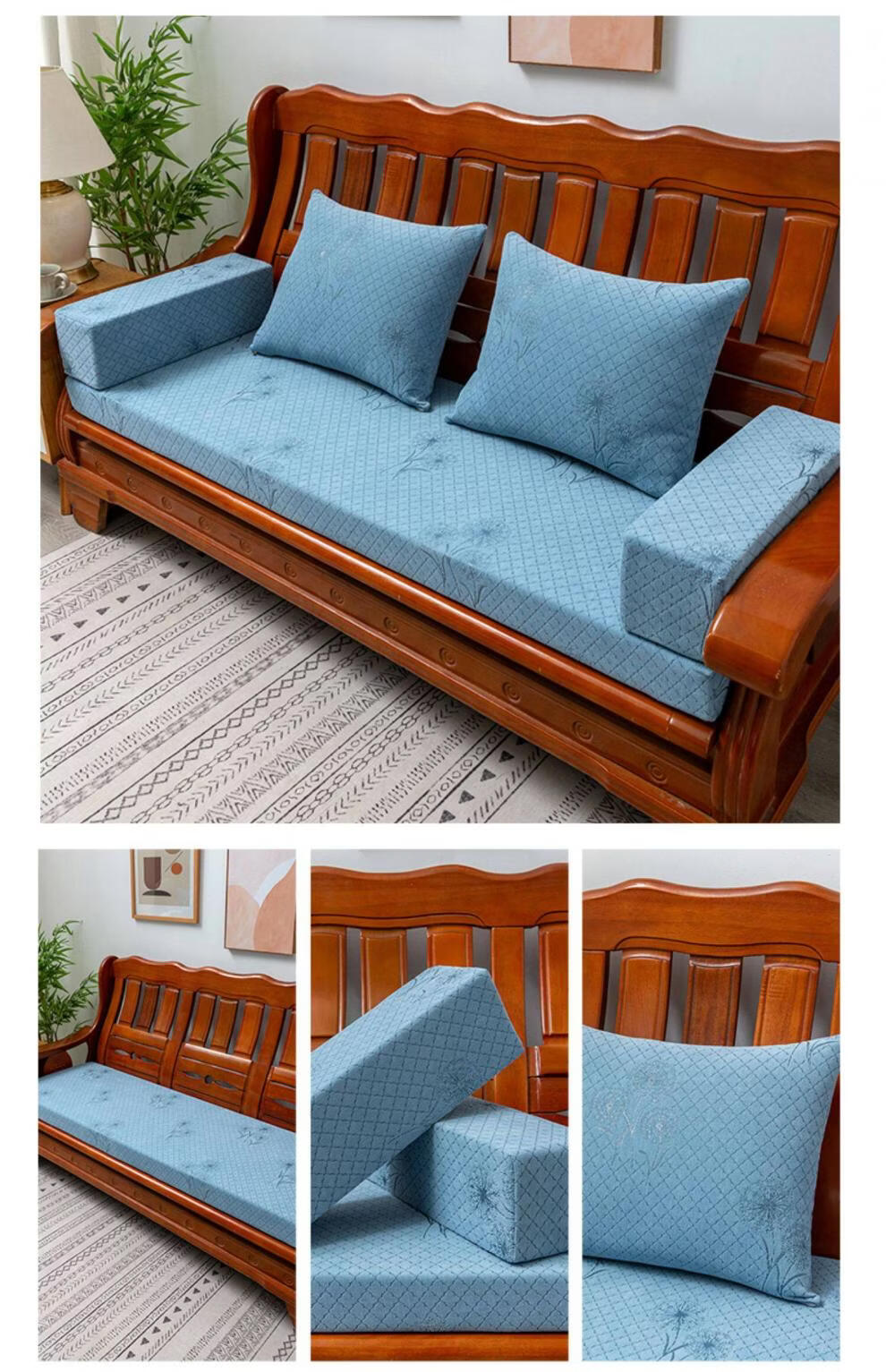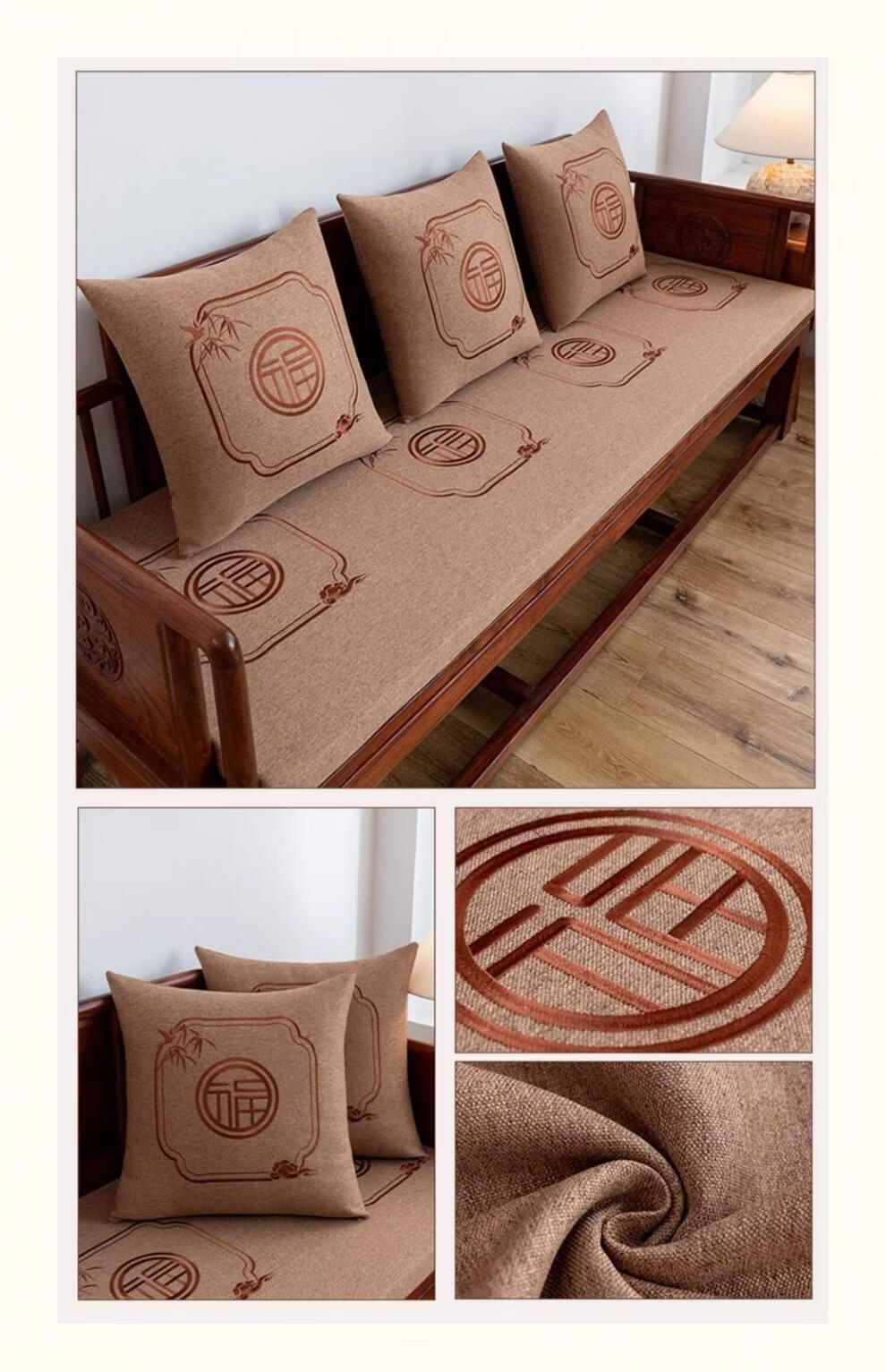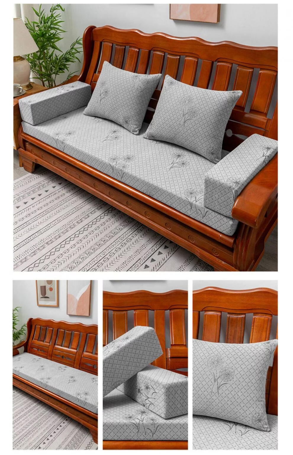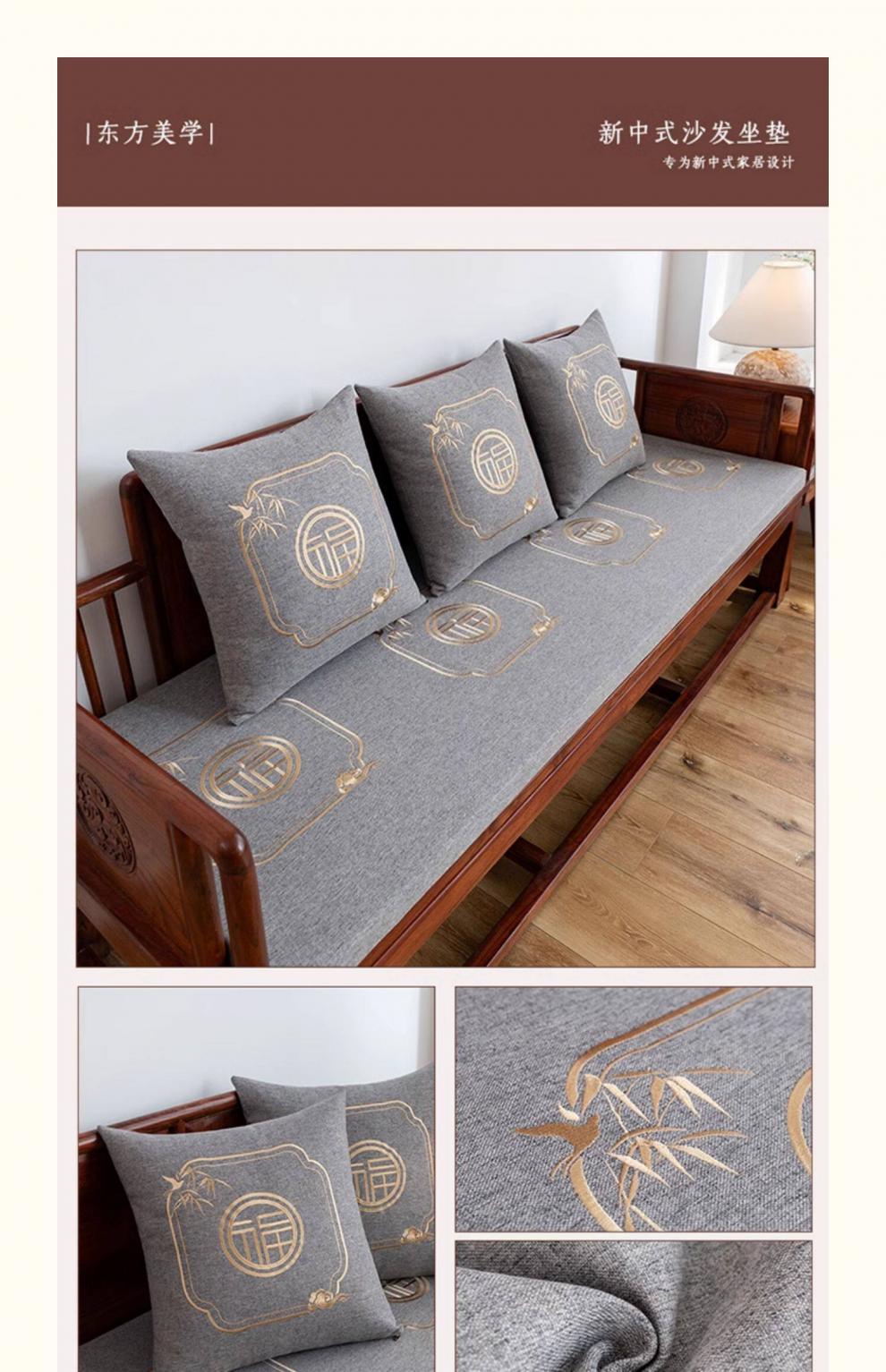 正圣红木沙发垫四季通用防滑2026年新款刺绣实木沙发坐垫加厚海绵垫子 蒲公英-烟灰色(35D-5厘米厚) 50*50 单人坐垫(不含靠枕和扶手枕)