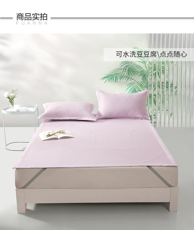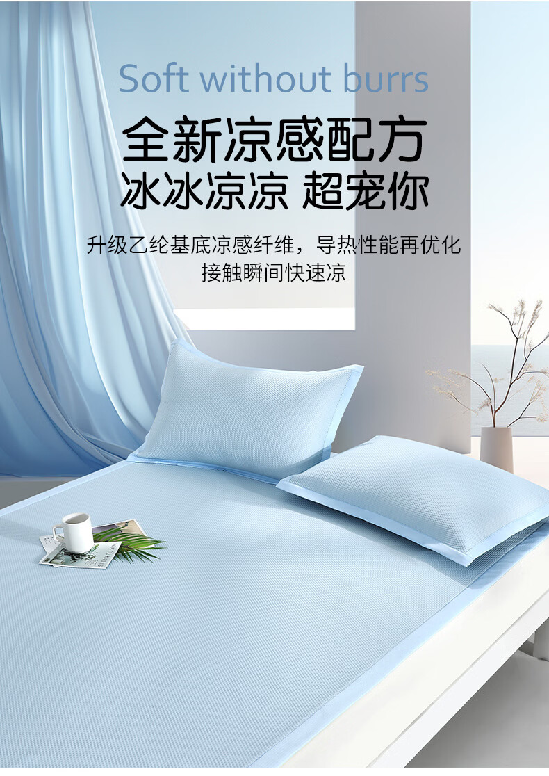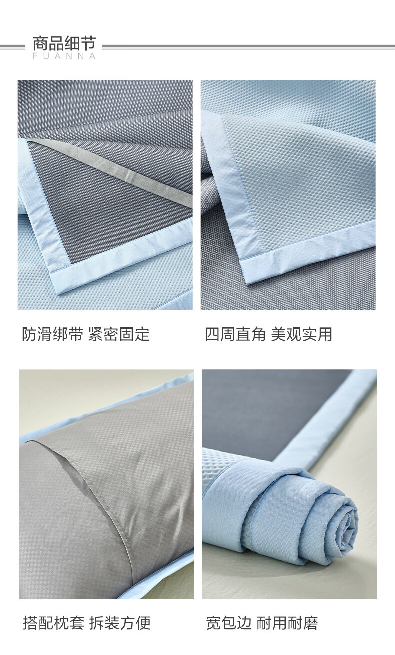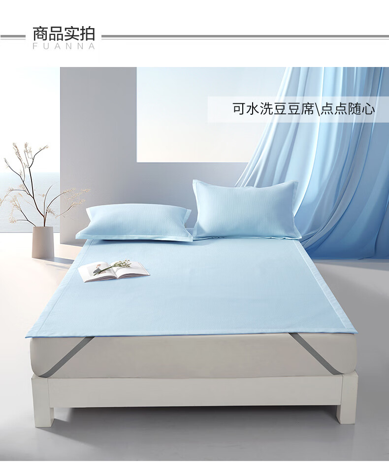 富安娜 凉席可水洗凉感豆豆席 冰丝凉席空调房夏季必备 可水洗+凉感豆豆席【橡筋款】蓝 两件套 1.2米 200cm*120cm