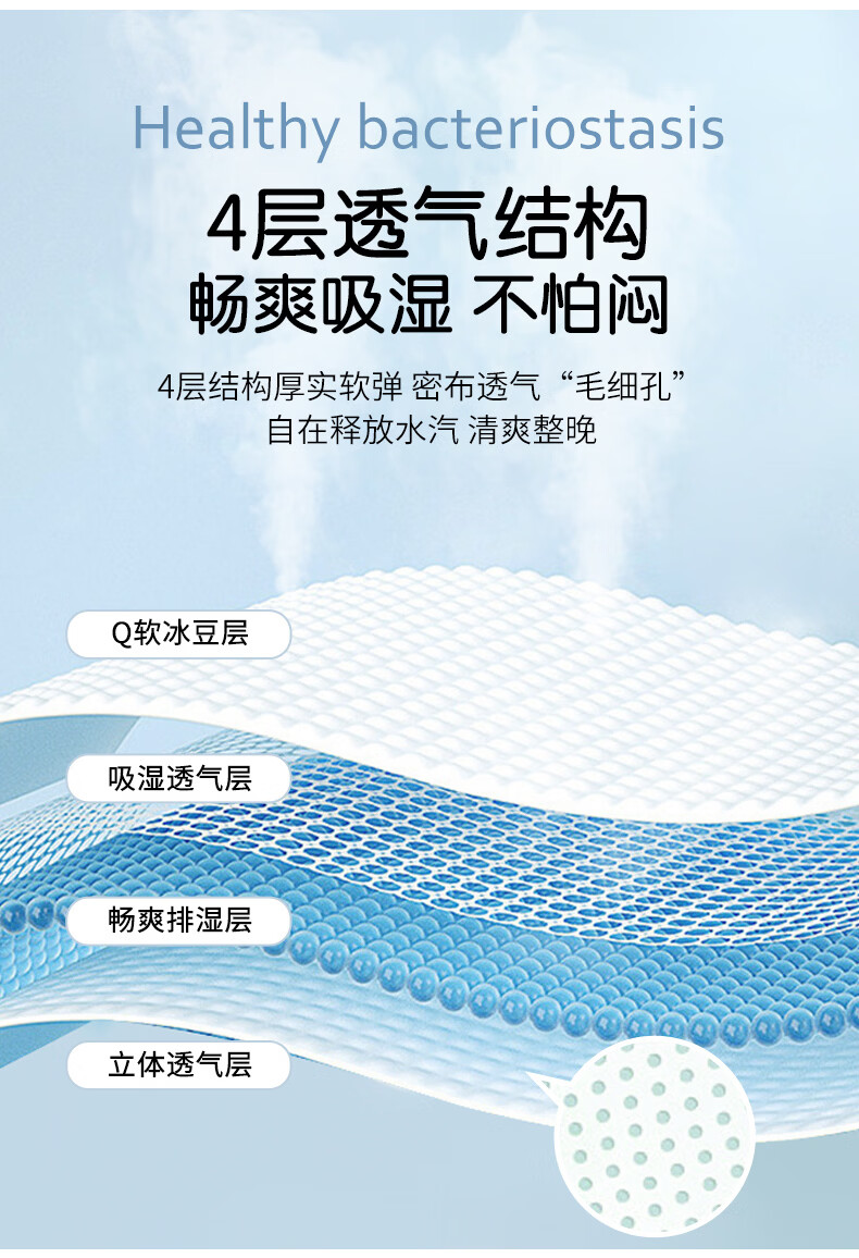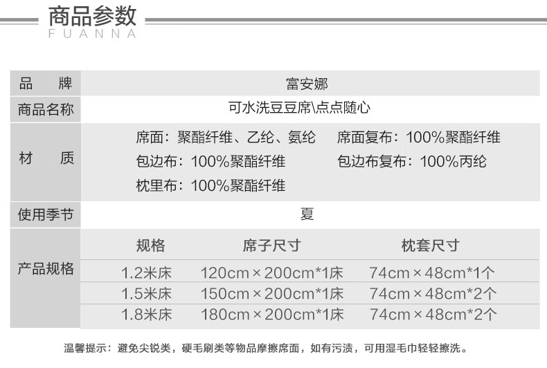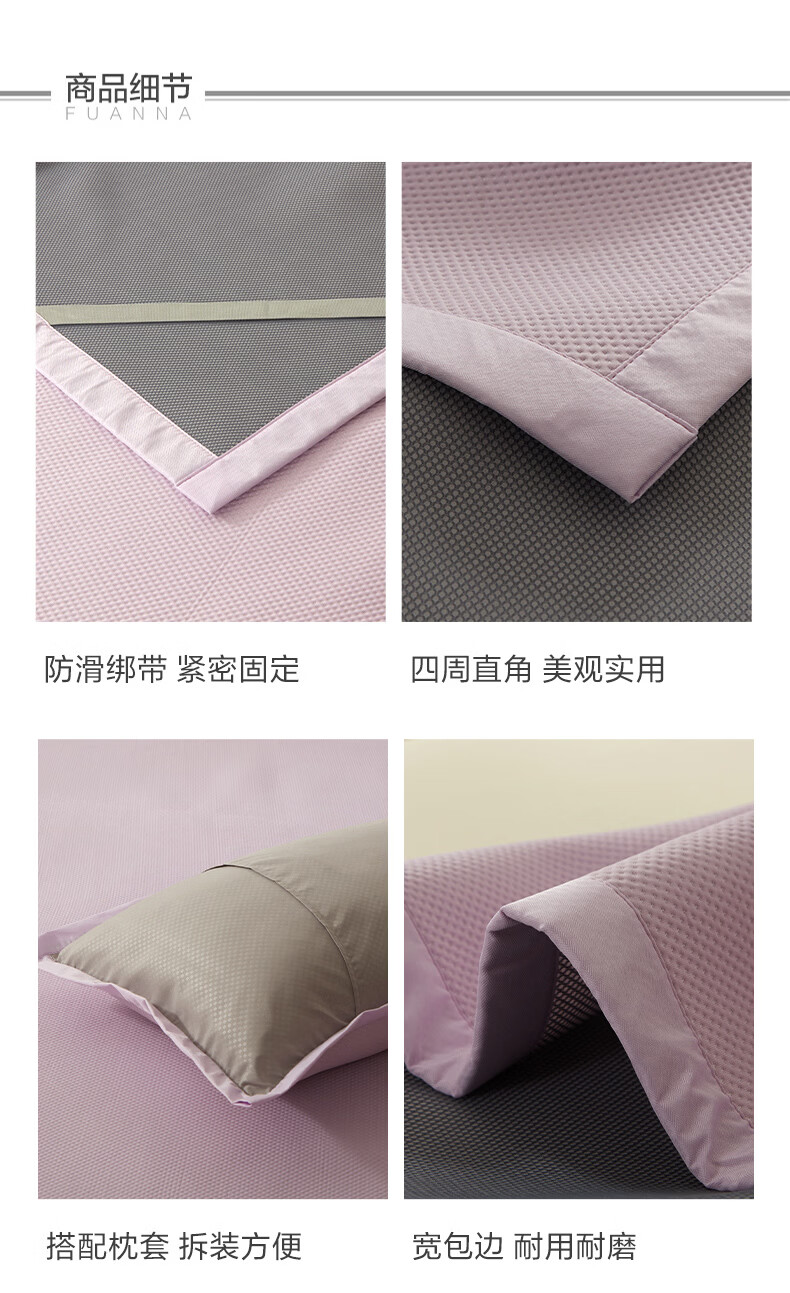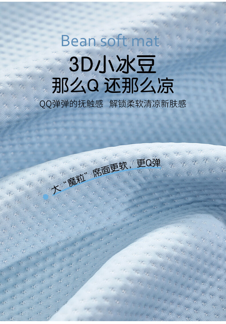 富安娜 凉席可水洗凉感豆豆席 冰丝凉席空调房夏季必备 可水洗+凉感豆豆席【橡筋款】蓝 两件套 1.2米 200cm*120cm
