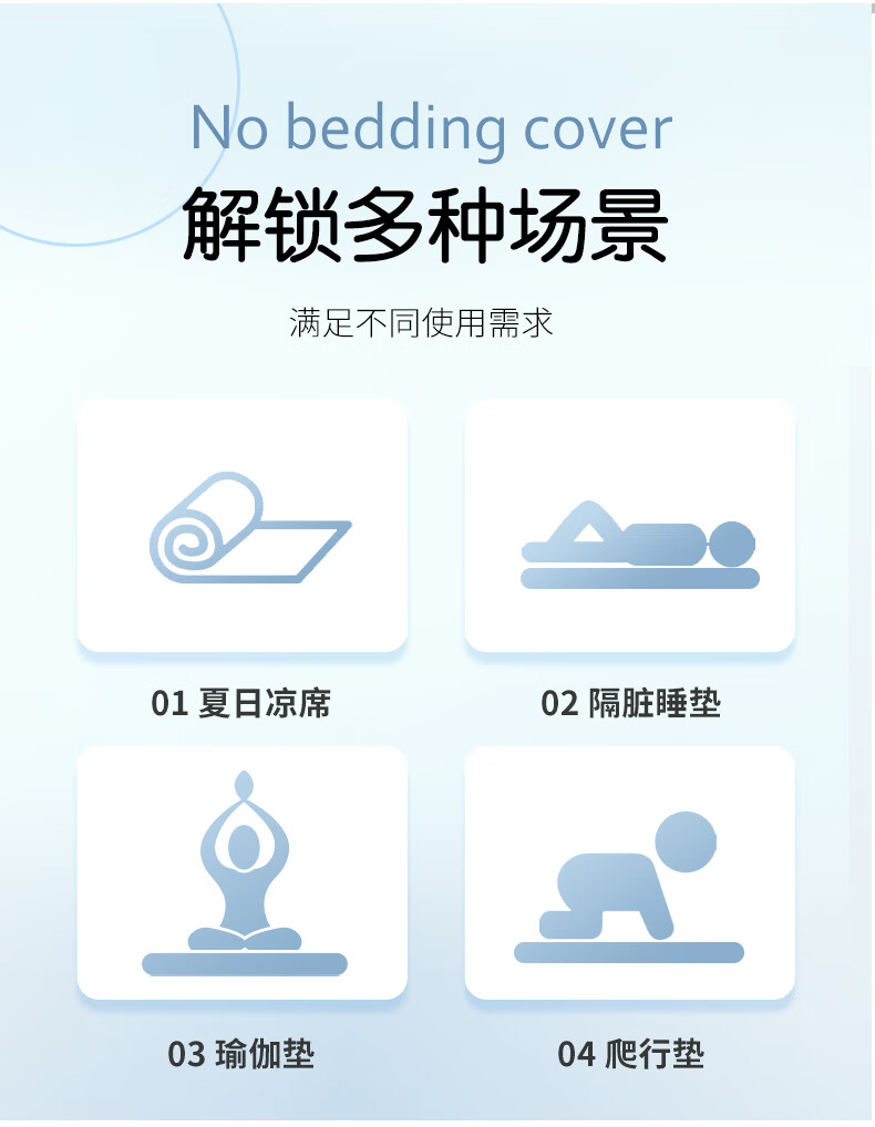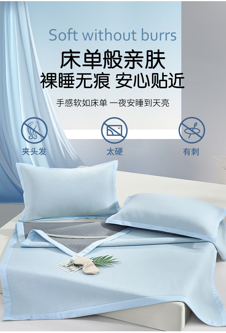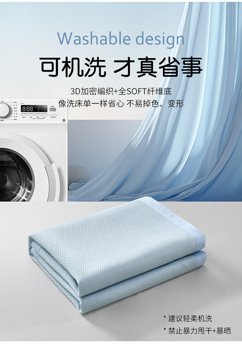 水星家纺北欧·海岸可水洗冰丝席/床笠式提花冰丝席升级款 北欧·海岸可水洗提花冰丝席升级款(灰蓝色) 195cm*90cm
