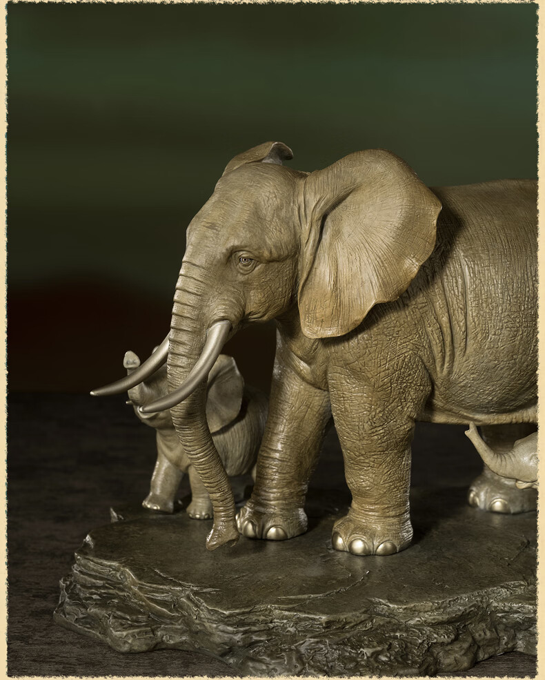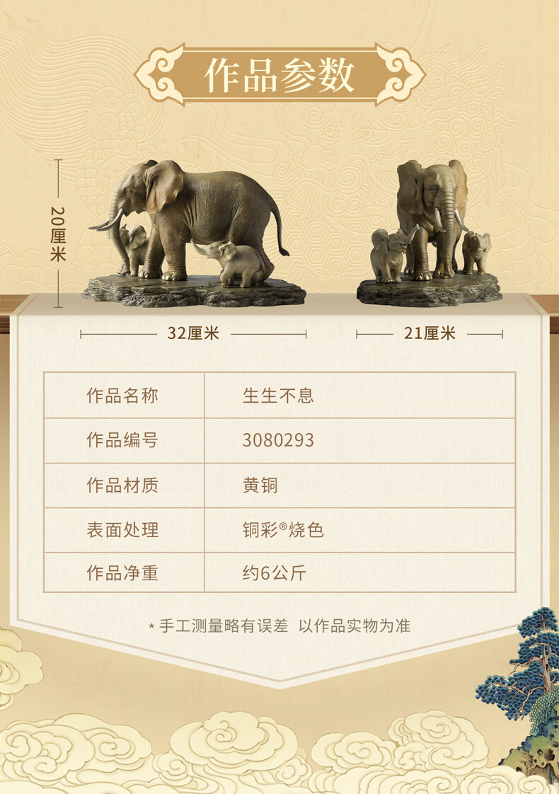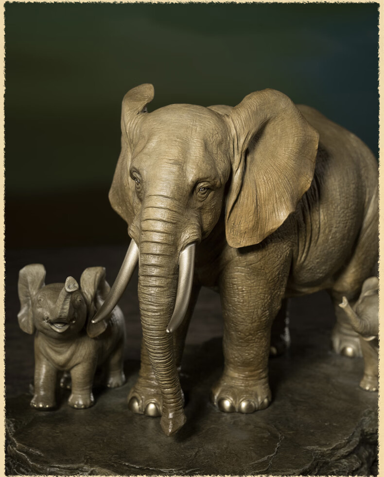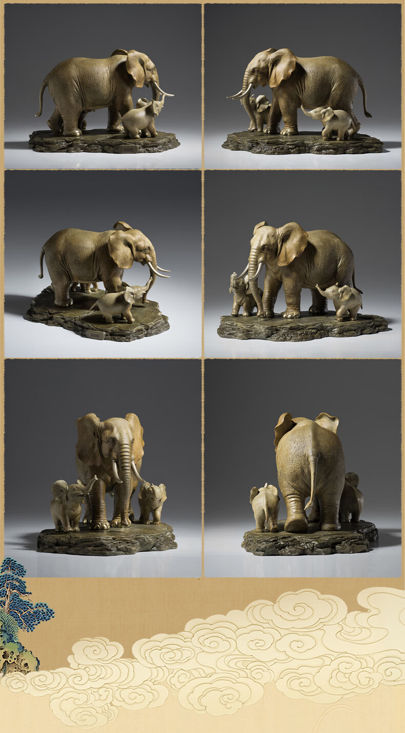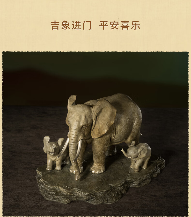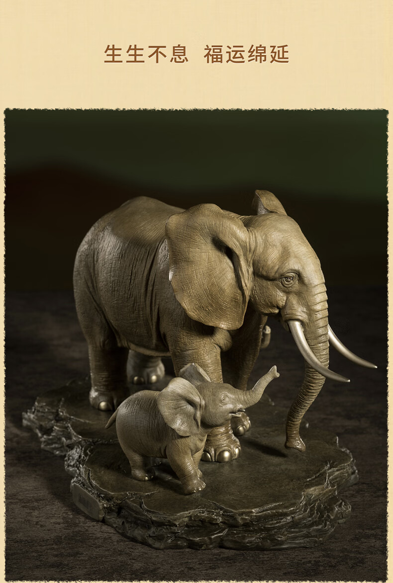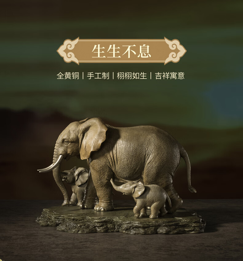 铜师傅《生生不息》客厅桌面铜大象摆件 家居装饰工艺品乔迁礼物