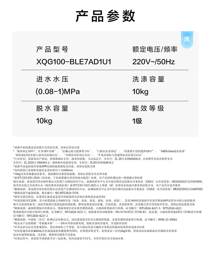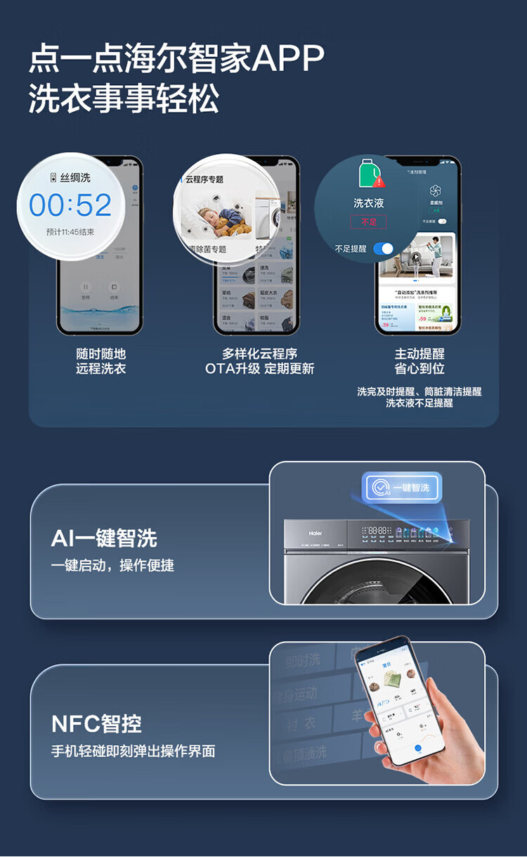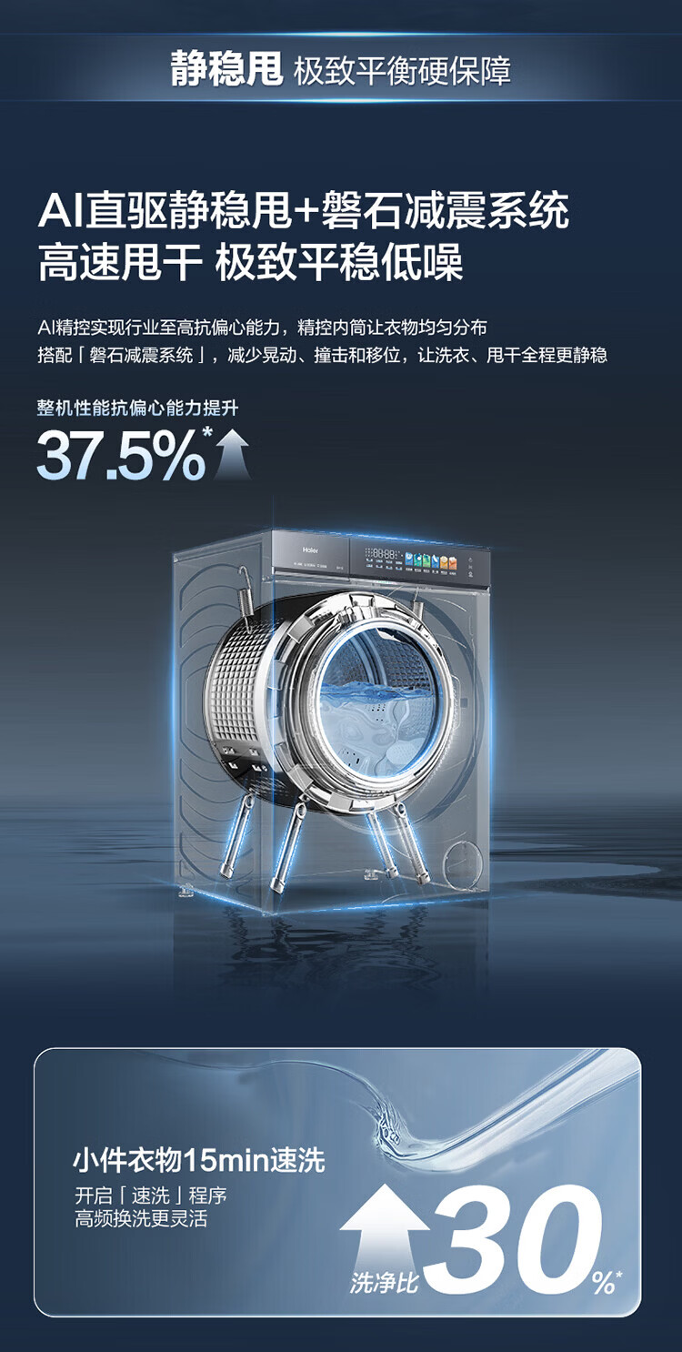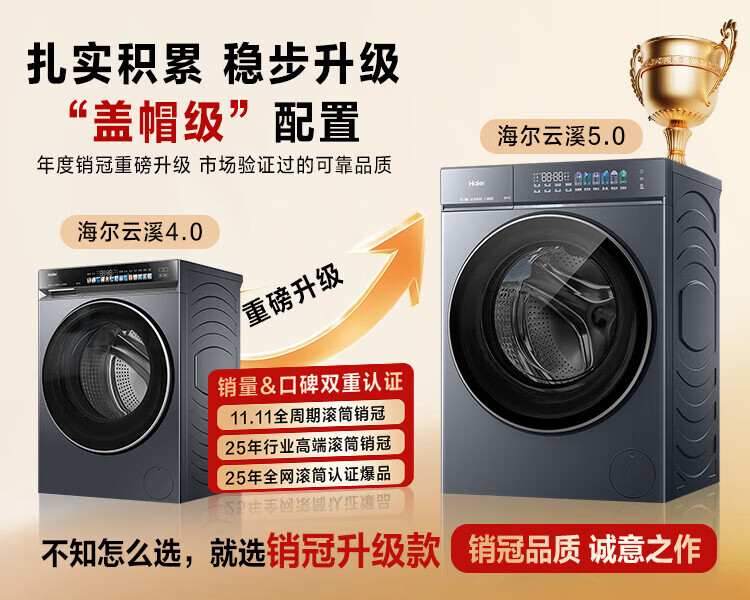 海尔(Haier)【云溪5.0新品】滚筒洗衣机全自动家用10公斤/12公斤大容量超薄直驱变频 官方旗舰店正品一级能效 【王炸新品】10KG丨7AD1U1 单洗