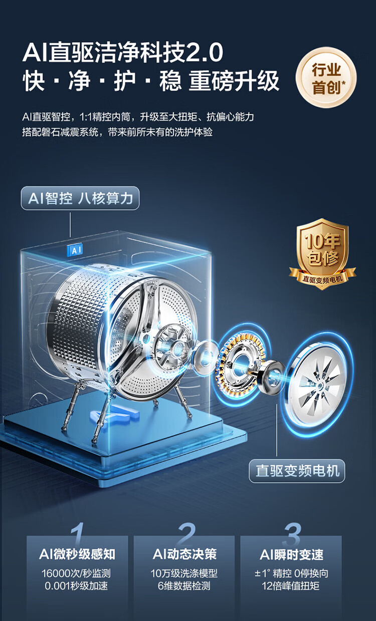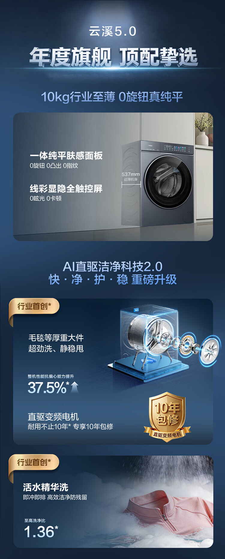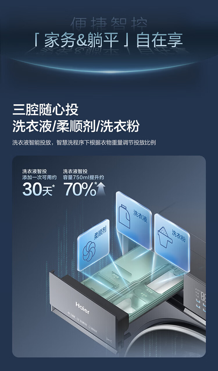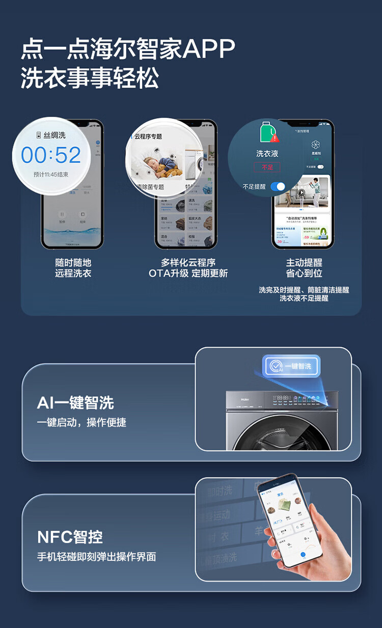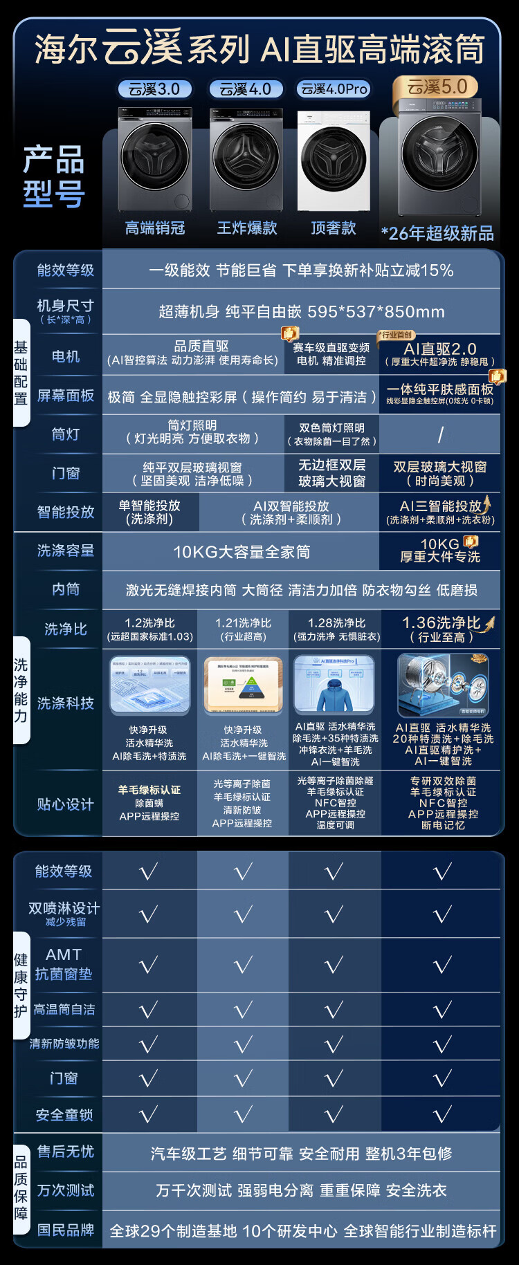 海尔(Haier)云溪5.0 D1 全自动滚筒洗衣机10公斤单洗 家用大容量 AI直驱洁净2.0双效除菌直驱变频 云溪5.0 滚筒 10kg 丨1.28高洗净比