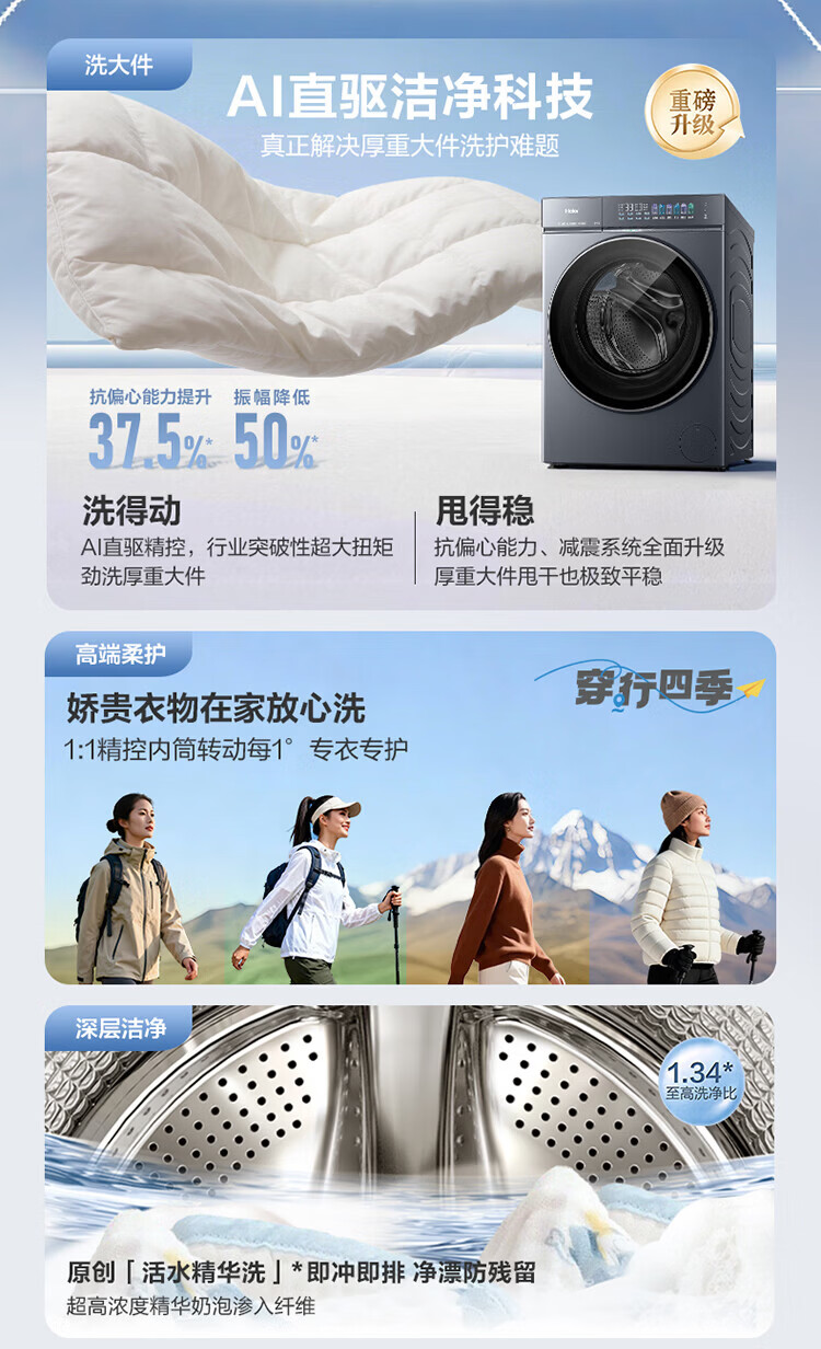 小天鹅(LittleSwan)分区双区洗 滚筒洗衣机全自动 13KG懒人洗衣机 TGG13E 5KG上筒 以旧换新国家补贴 京东自营 内衣洗