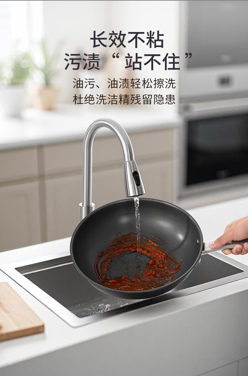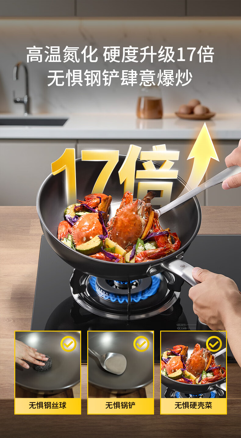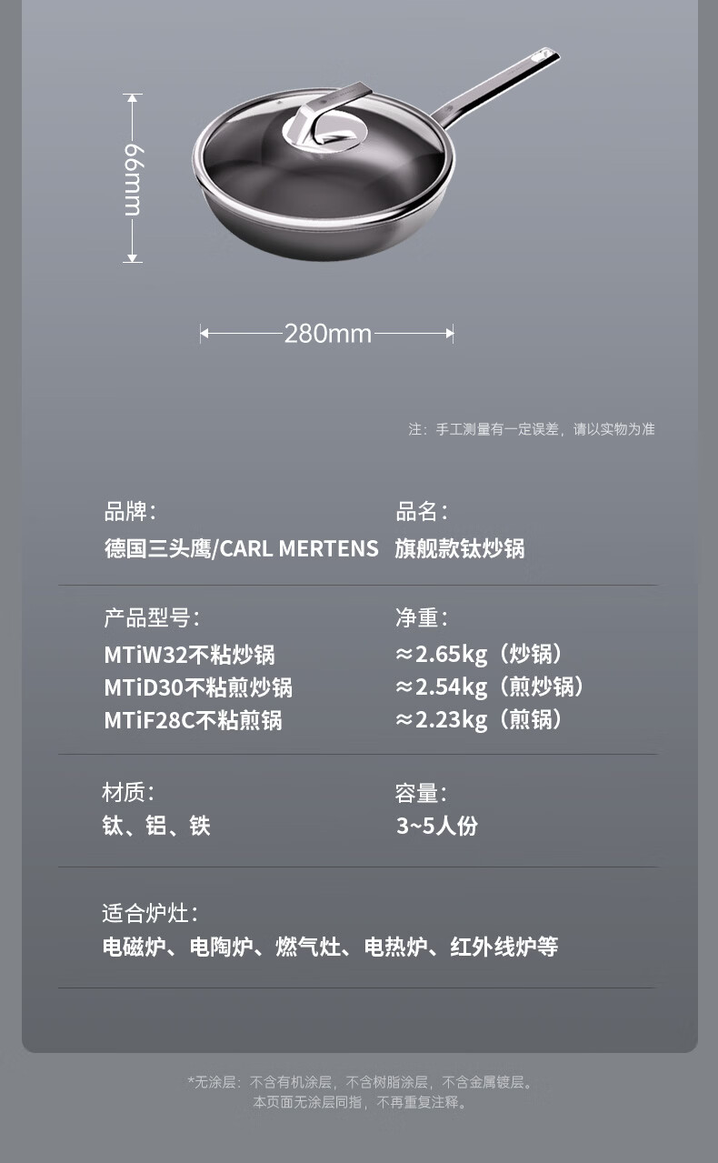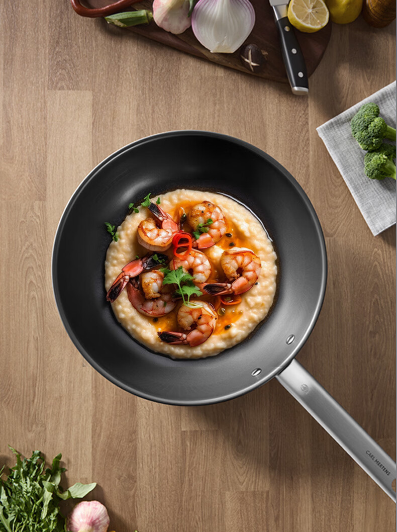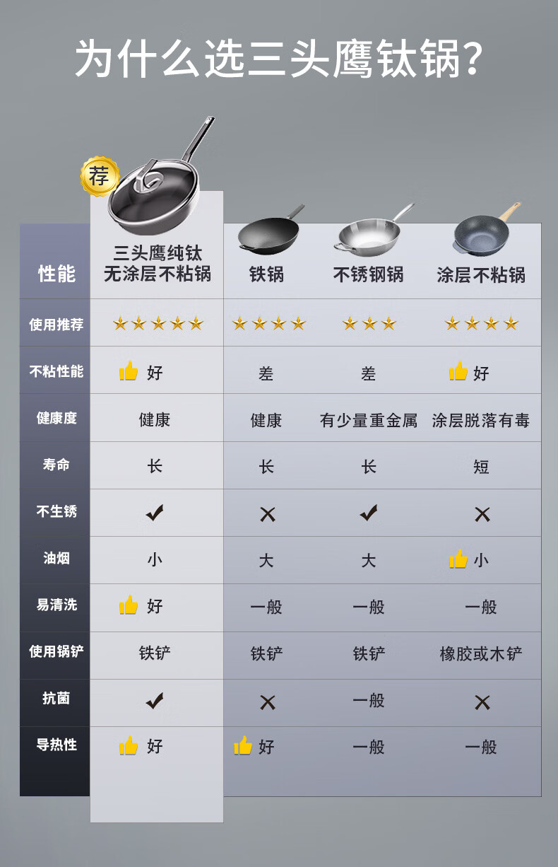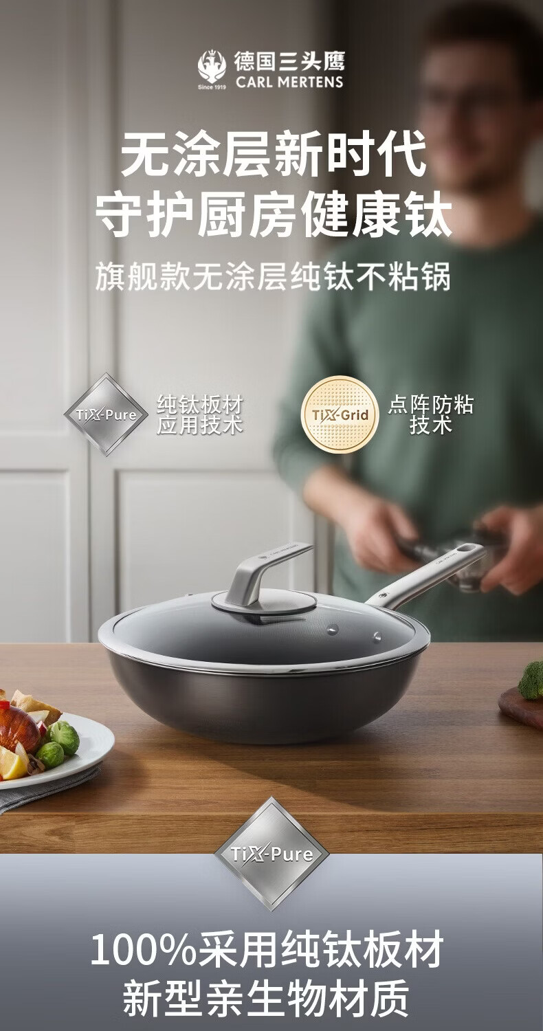 三头鹰钛无涂层不易粘锅炒菜锅32cm家用少油烟通用炉灶MTiW32