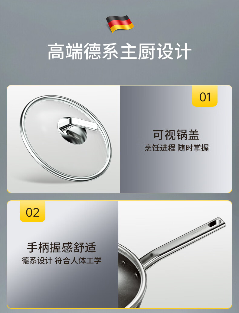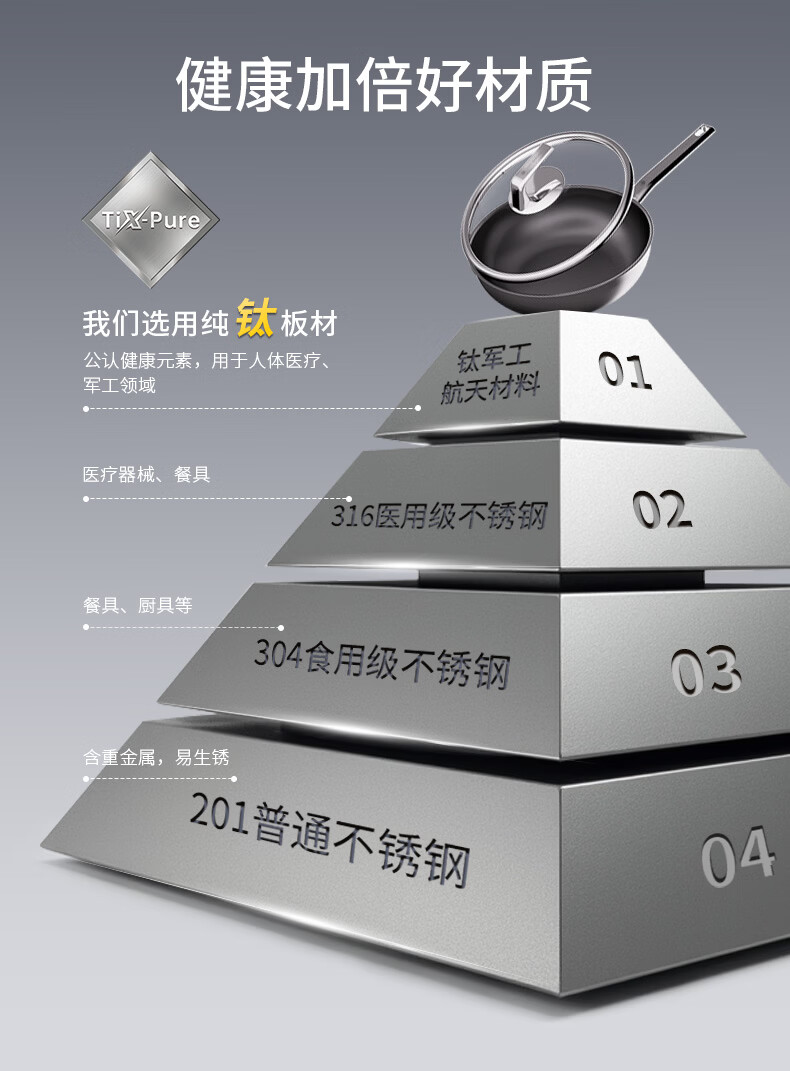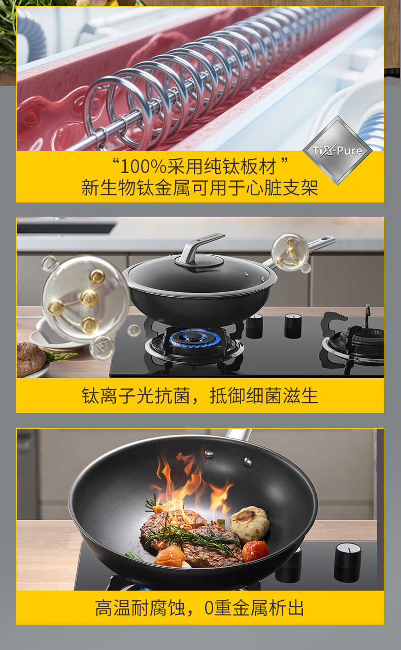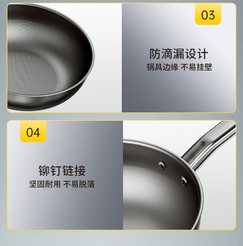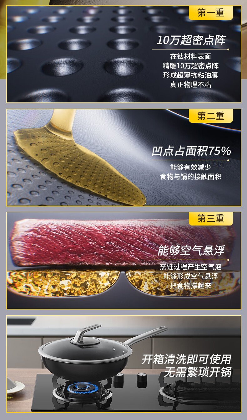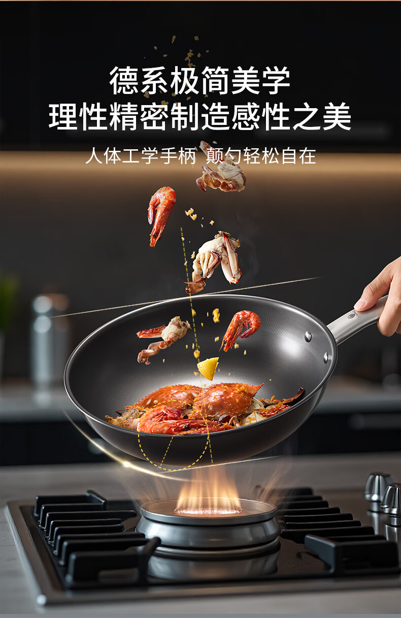 三头鹰钛无涂层不易粘锅炒菜锅32cm家用少油烟通用炉灶MTiW32