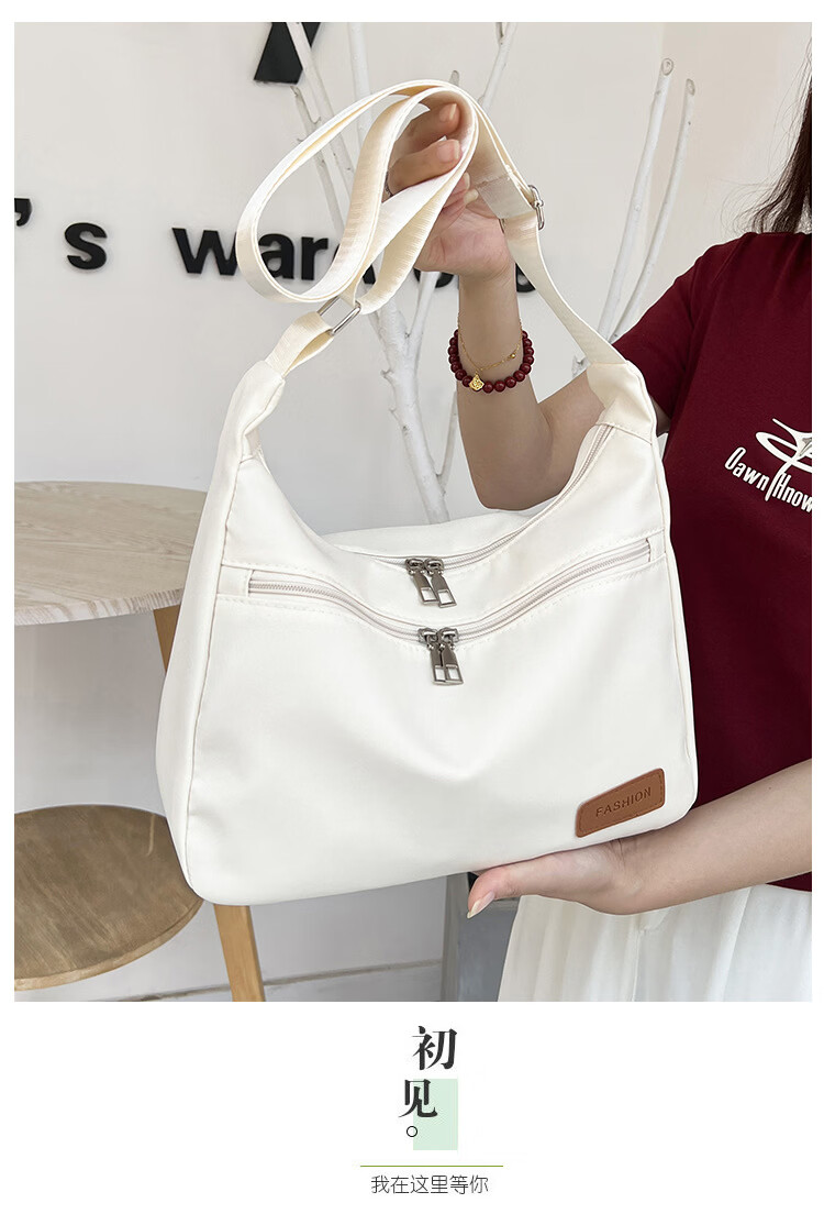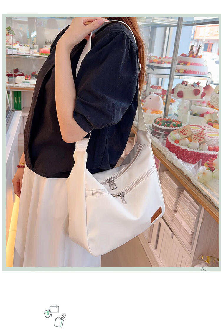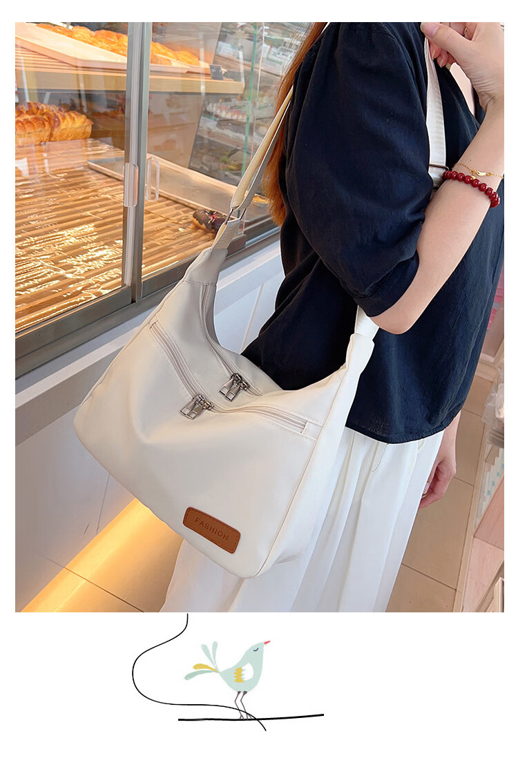 【严选好物】尼龙斜跨包女2025新款单肩包轻便小挎包学生女包休闲 乳白色