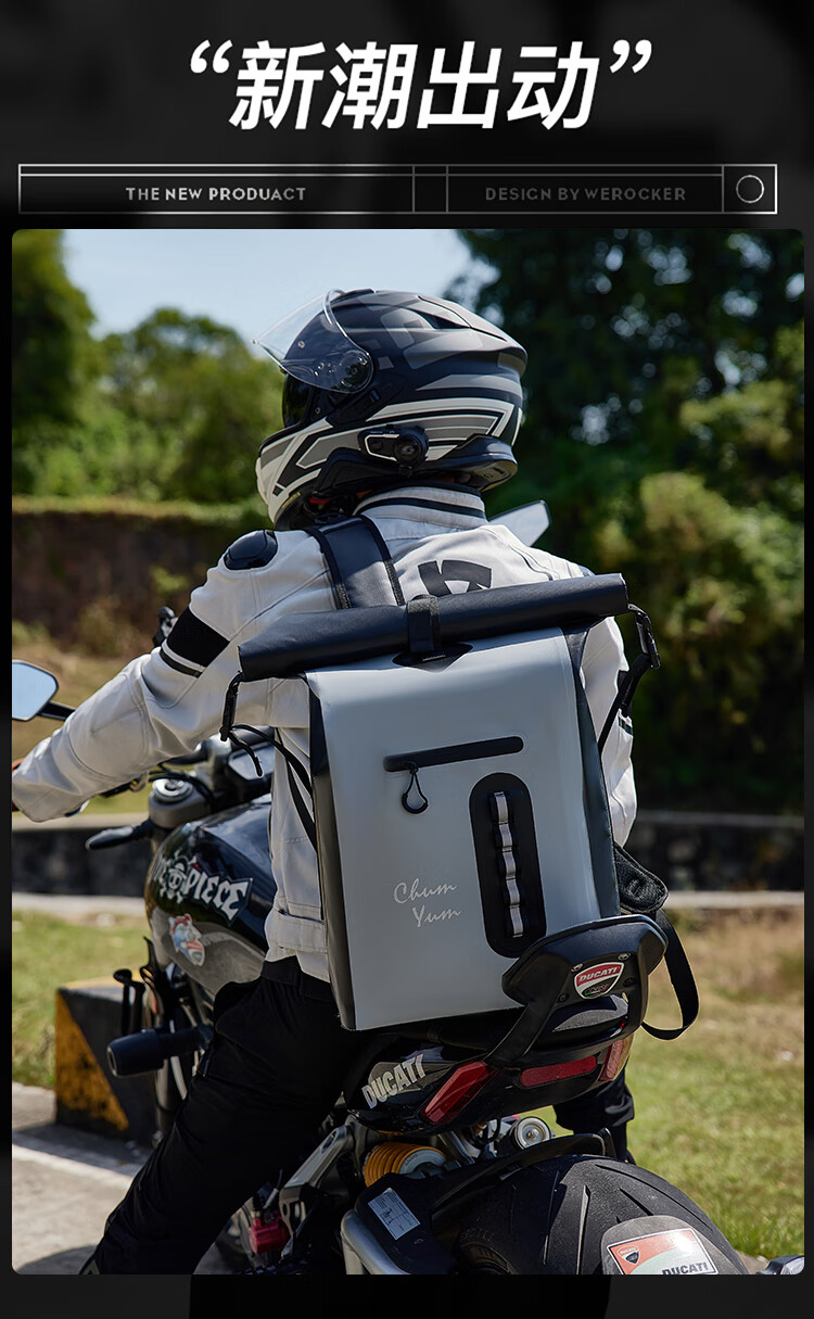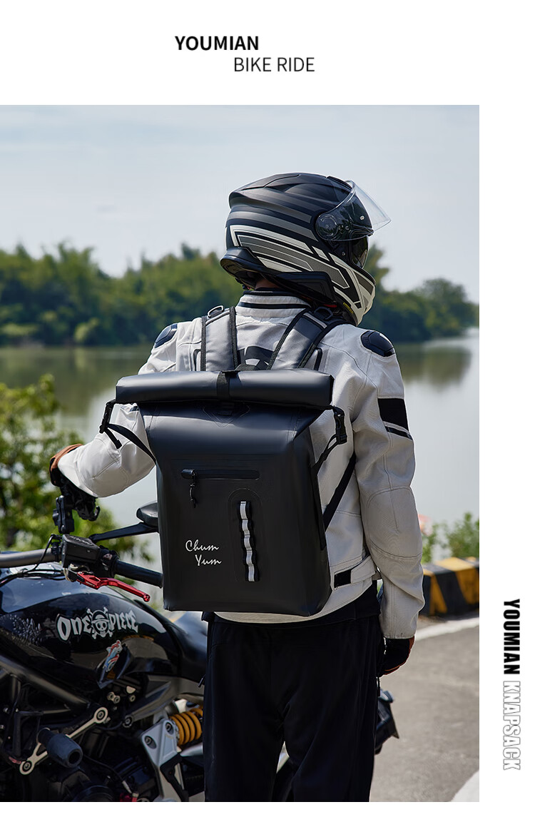 CHUMYUM摩托车防水骑行包户外运动双肩包大容量登山背包 灰色
