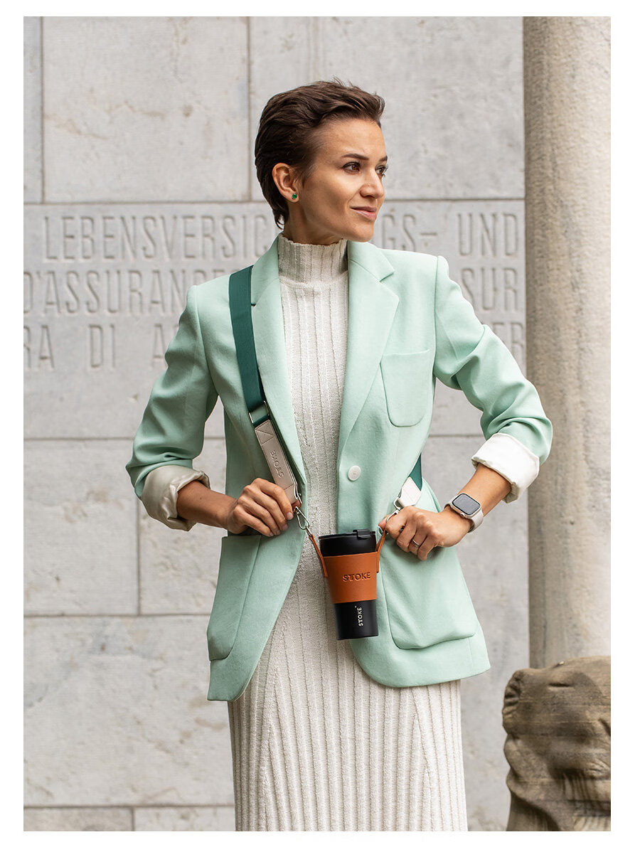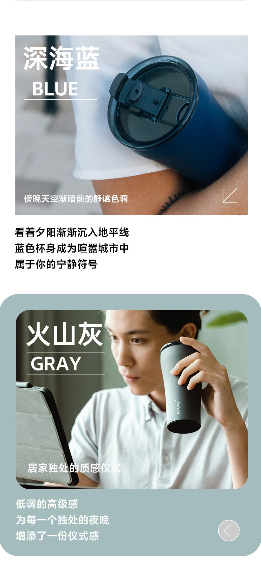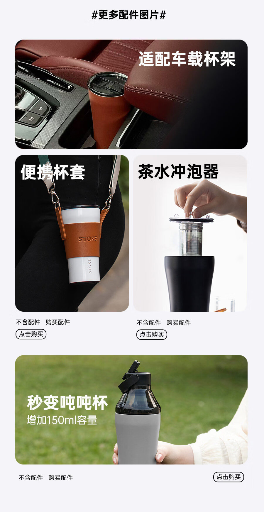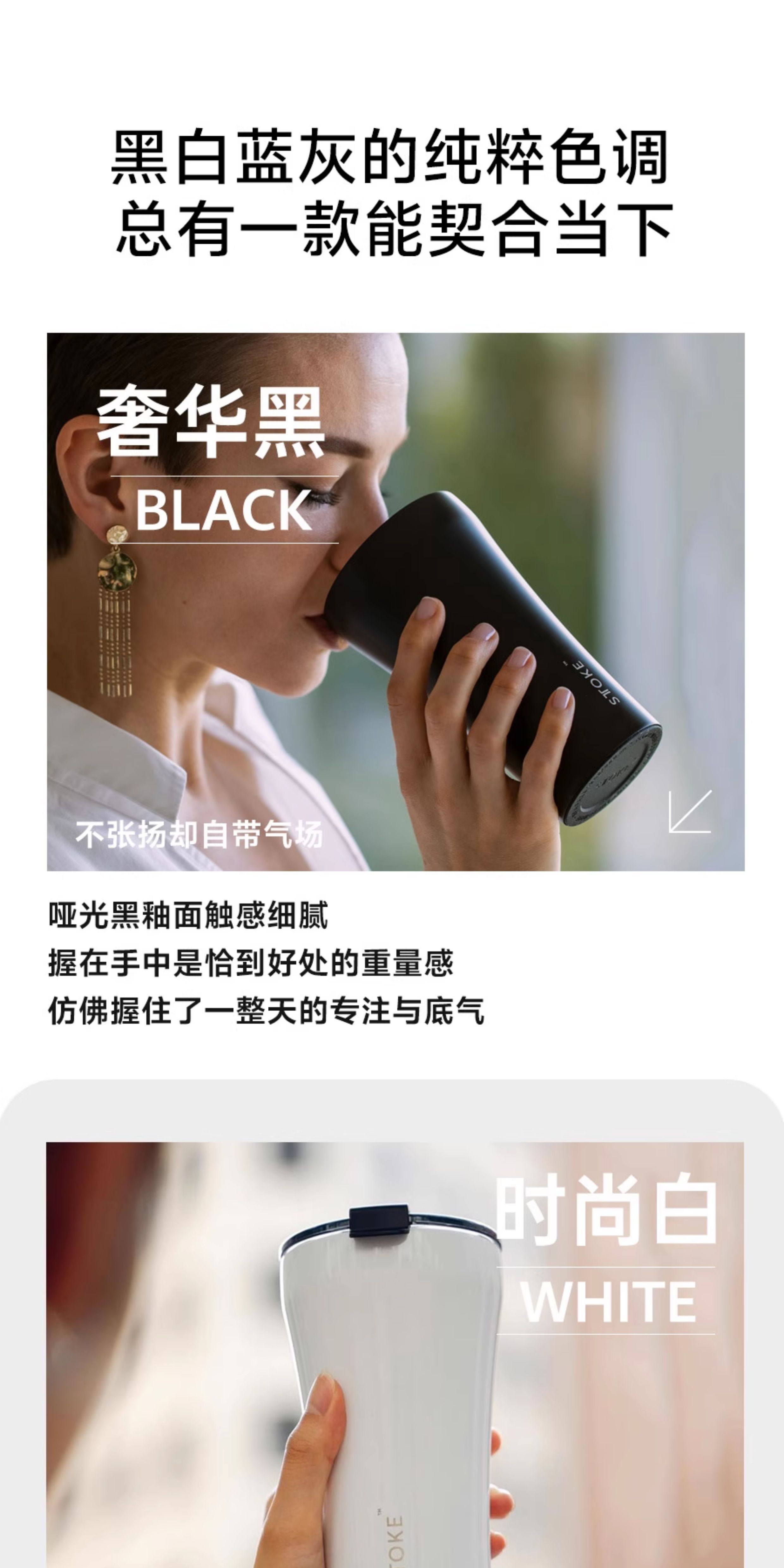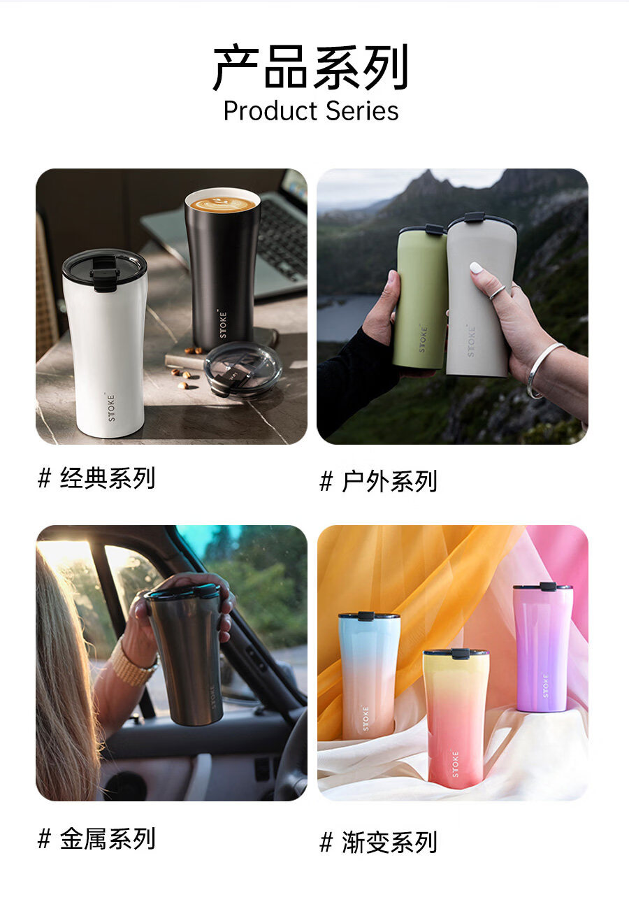 慕咖STTOKE经典款咖啡杯精致陶瓷内胆保温杯便携实用水杯TT杯节日礼物 奢华黑460ml【延伸盖组合】