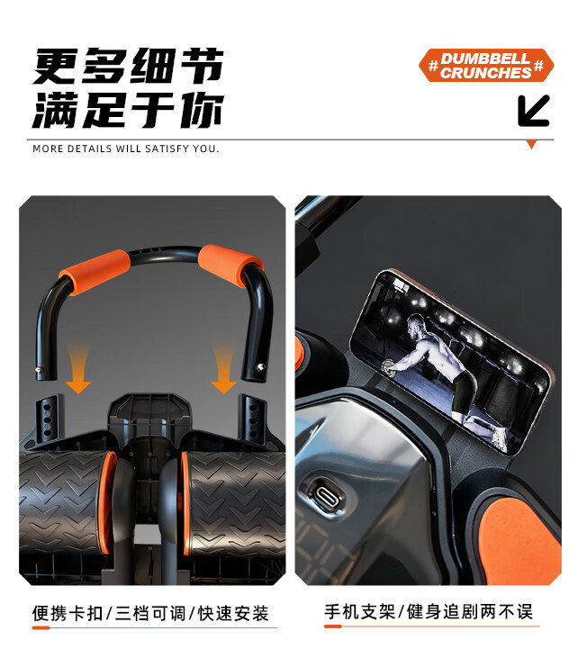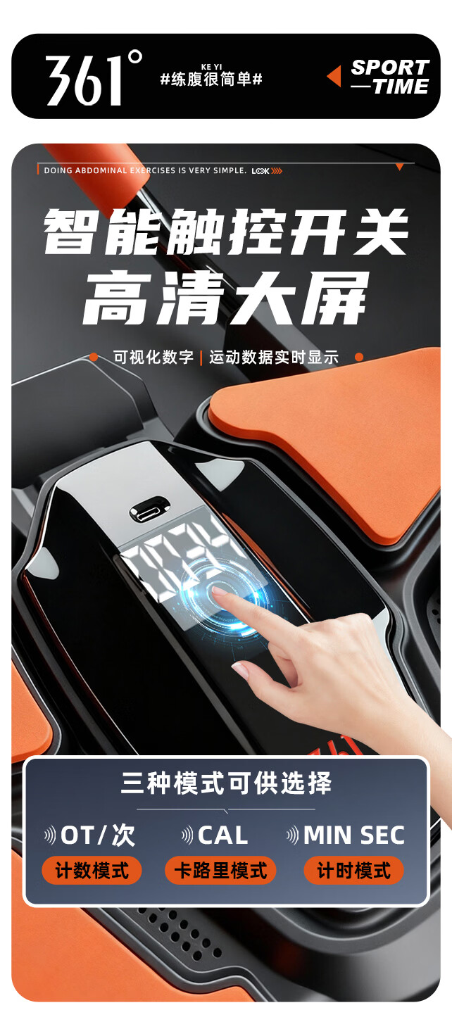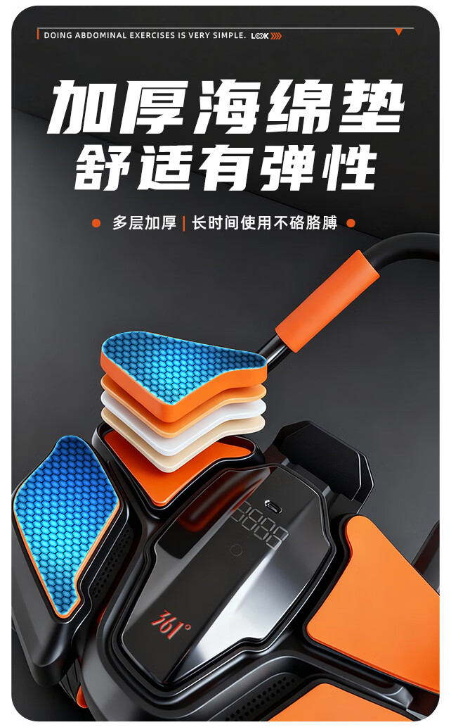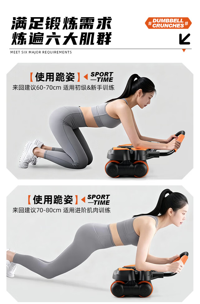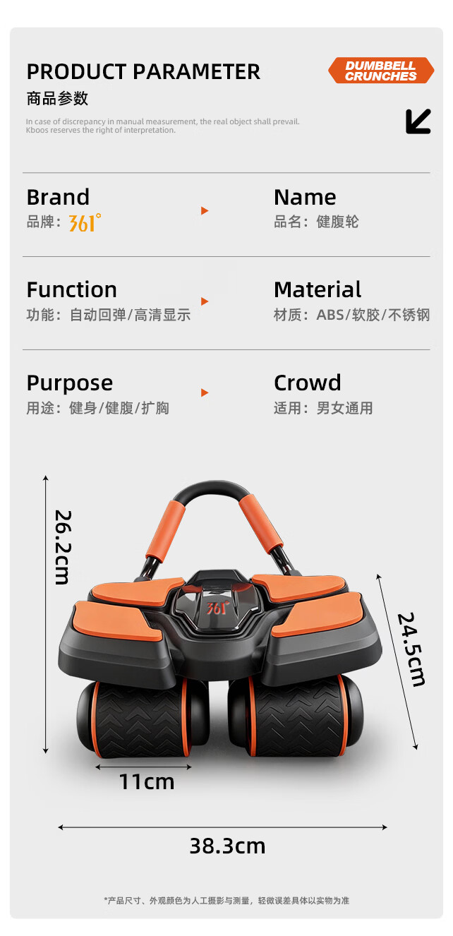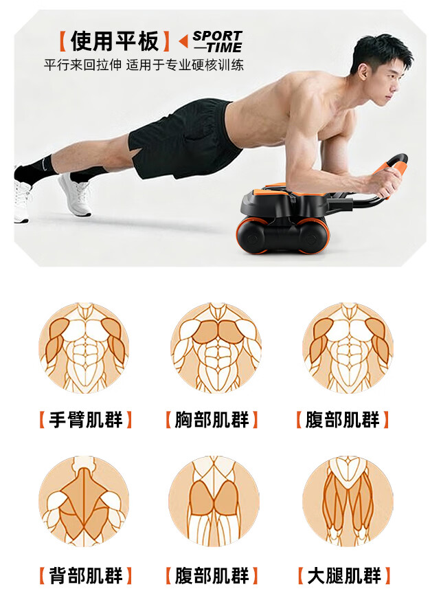 361°健腹轮自动回弹肘撑四轮健身运动器材腹肌训练器瘦肚子收腹练腹肌 特大橙黑色【智能数显+自动回弹】(送跪垫)