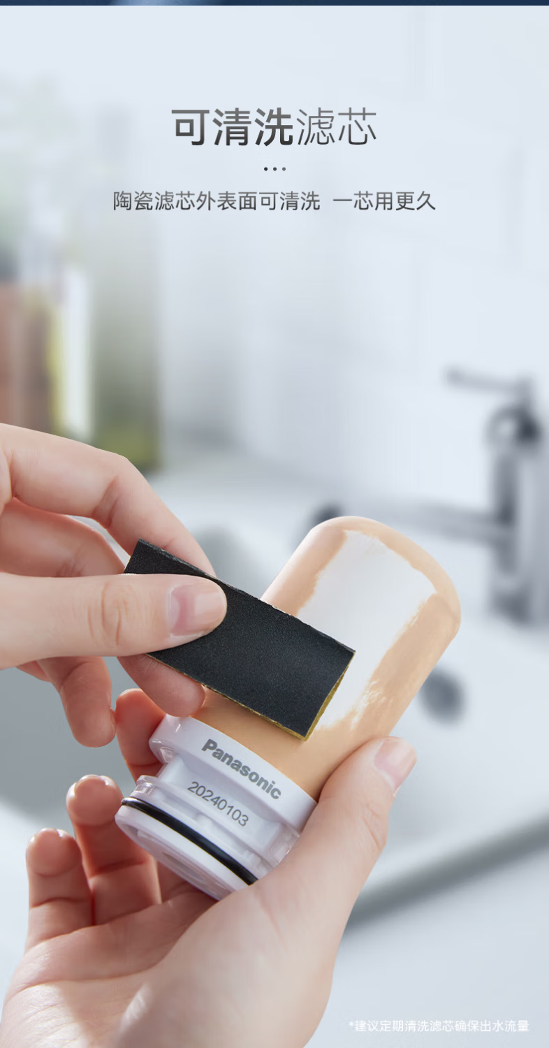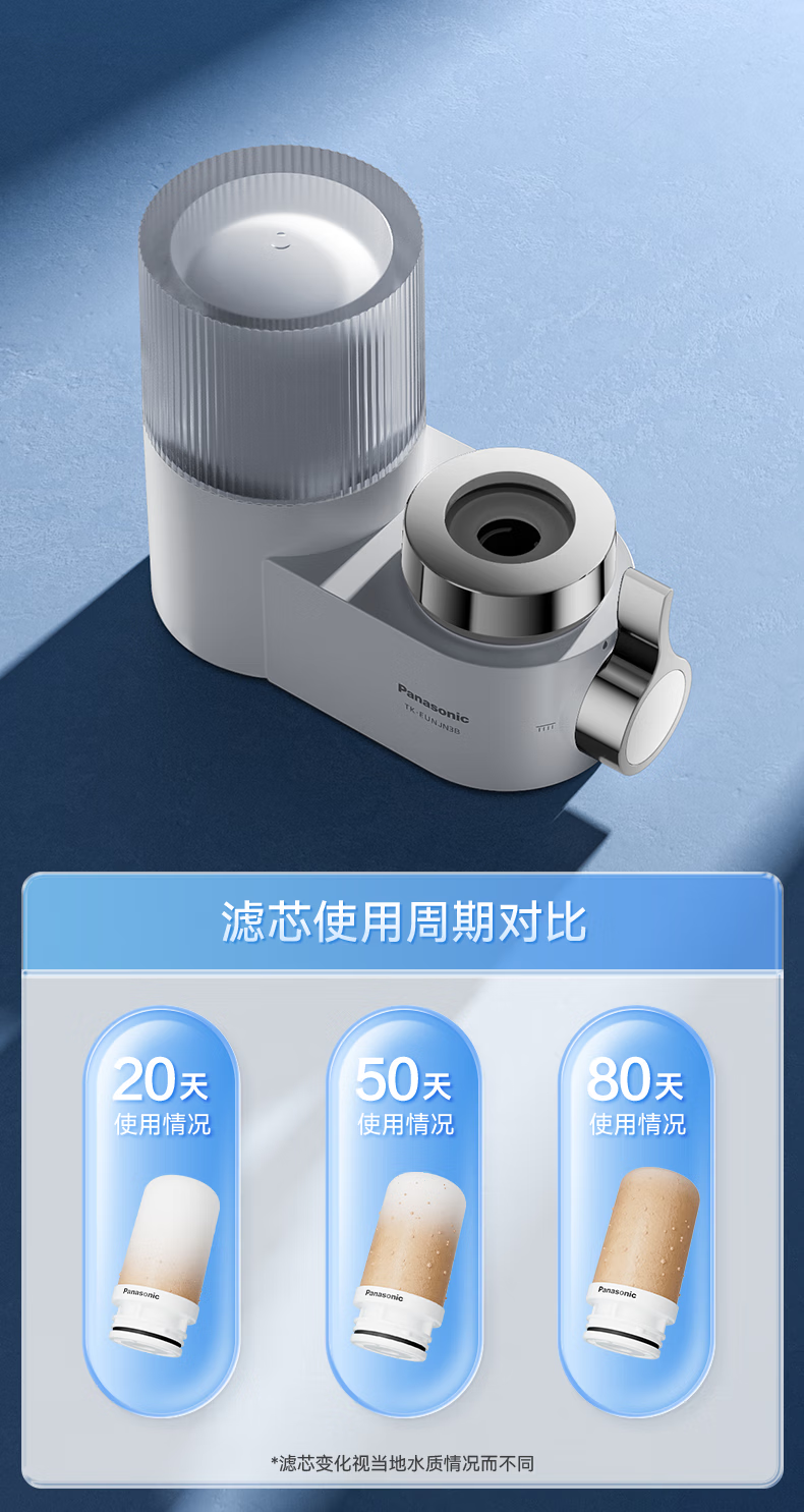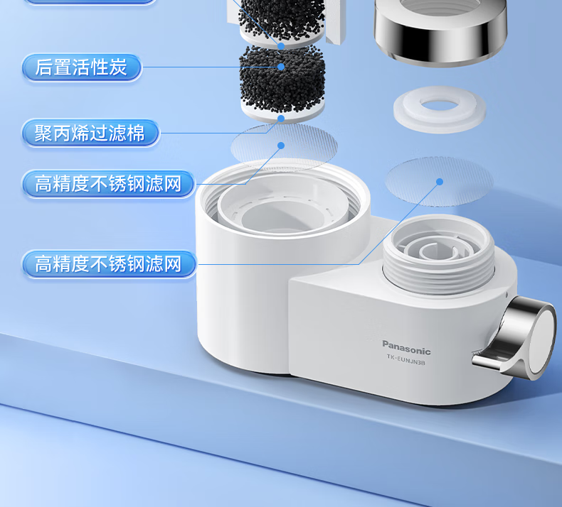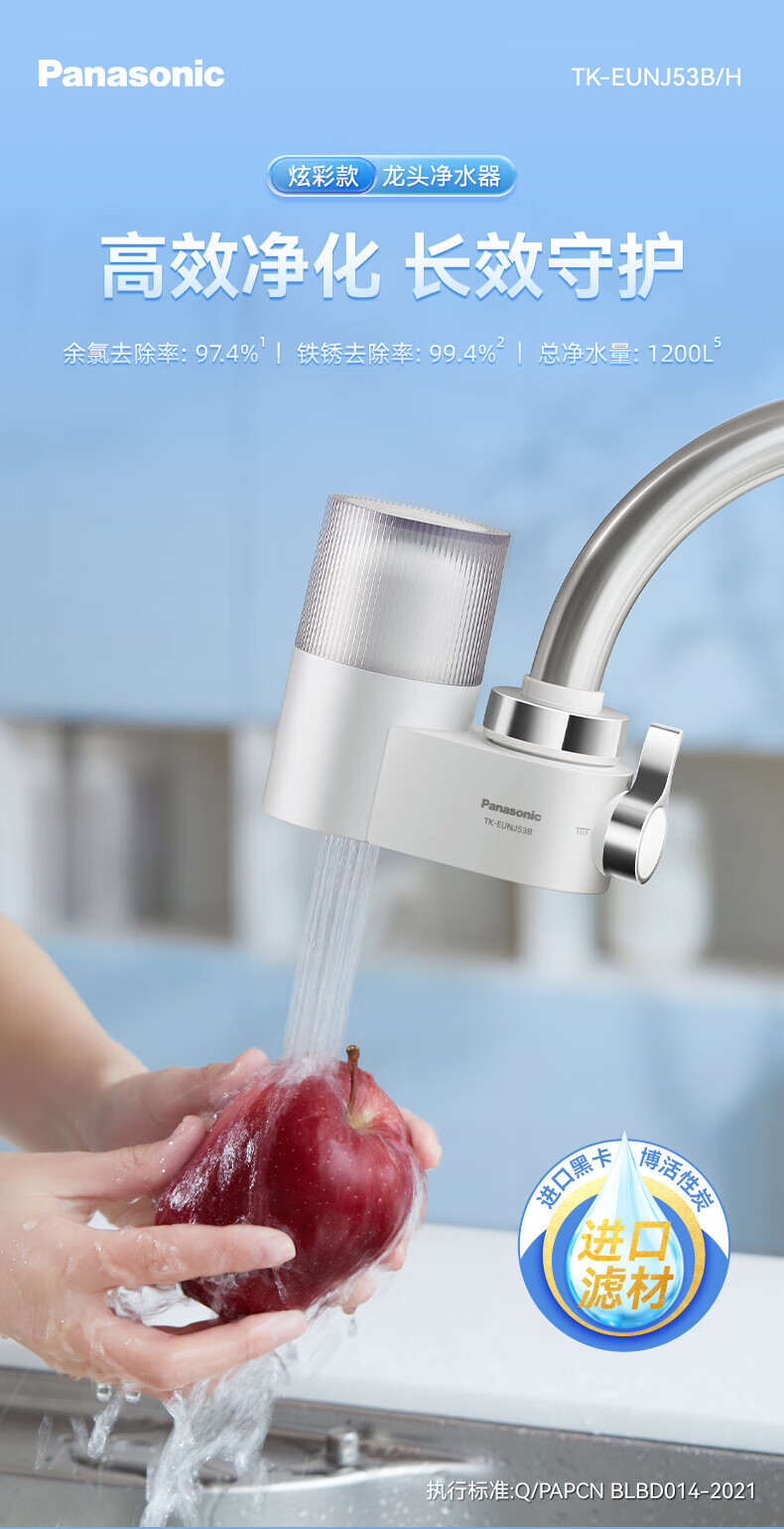 松下净水器家用水龙头过滤器自来水卫生间厨房净水不插电过滤器大流量进口活性炭除氯除味TK-EUNJ53H/B 进口黑博卡碳【1机6芯】白色