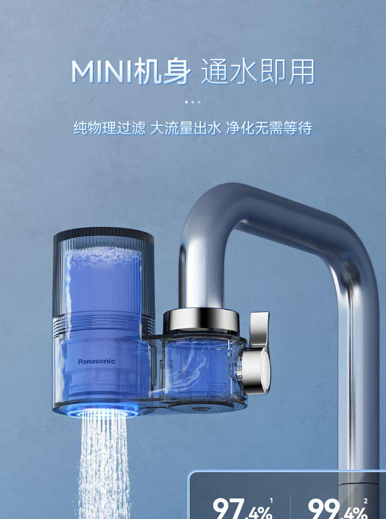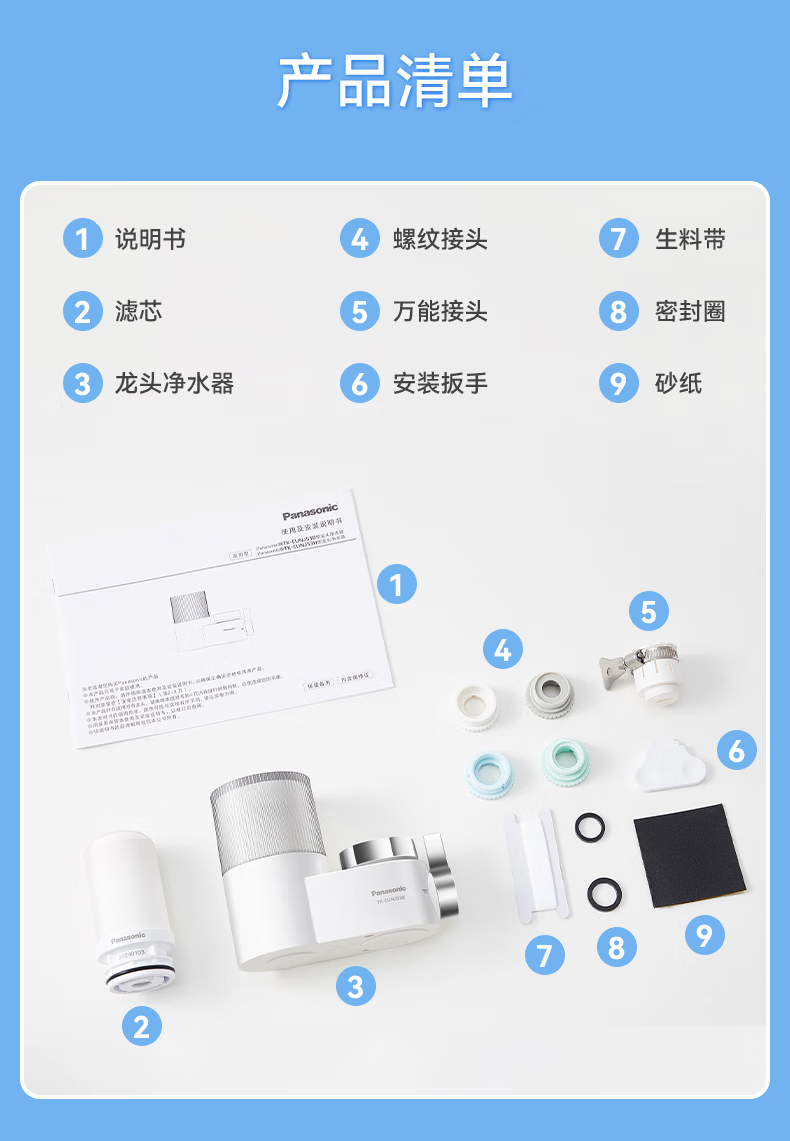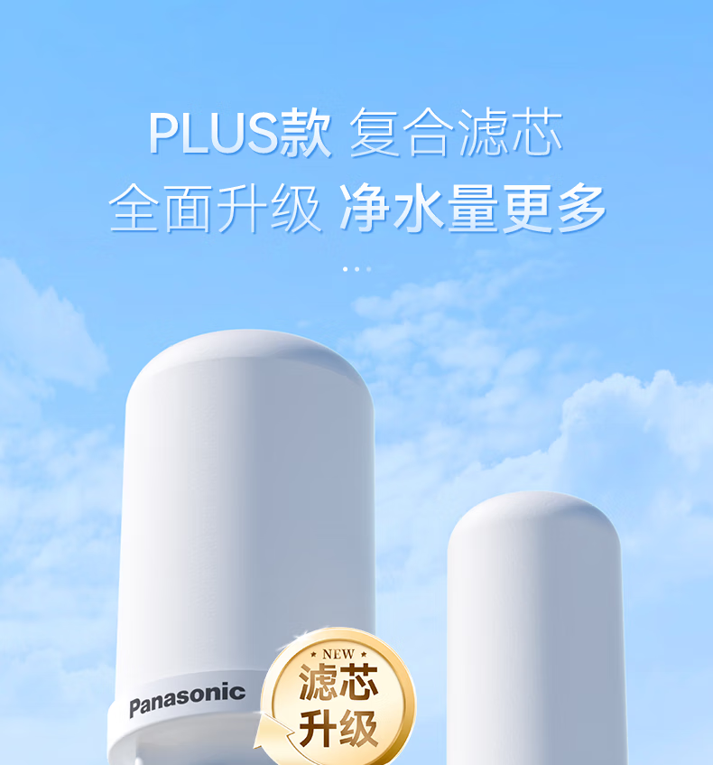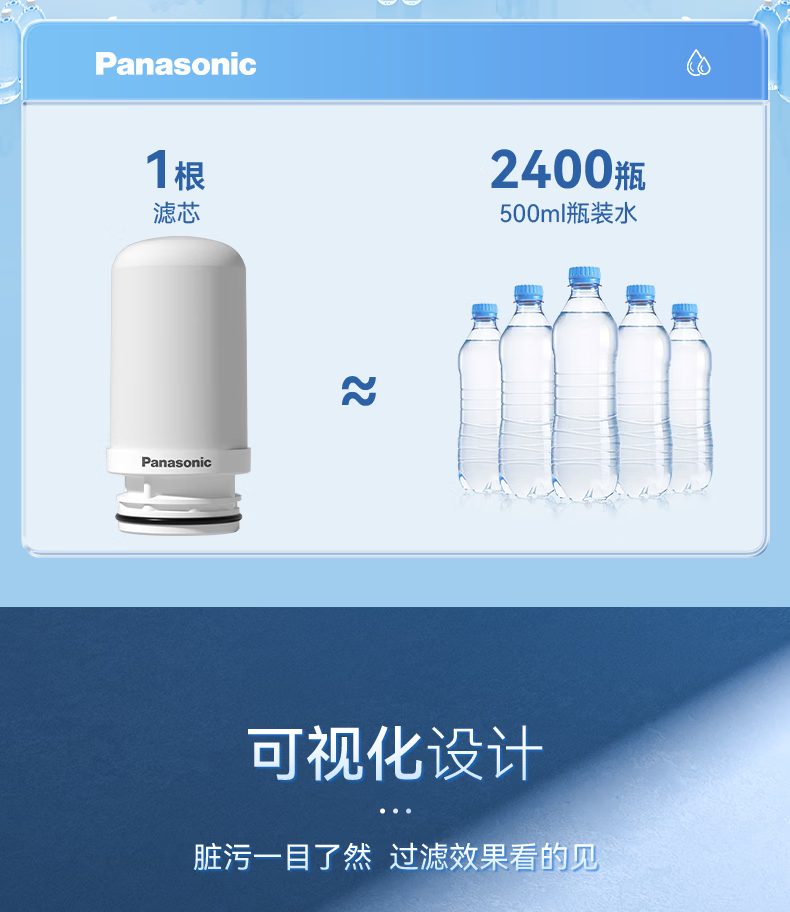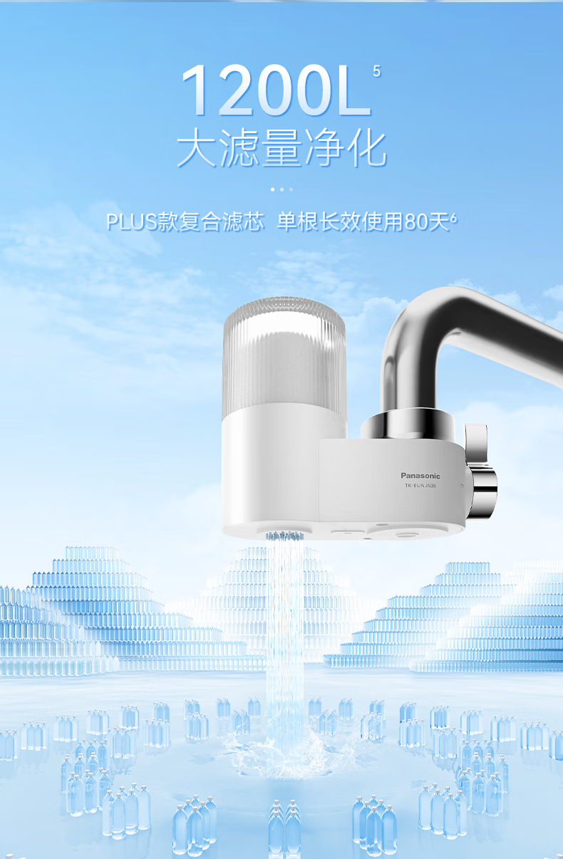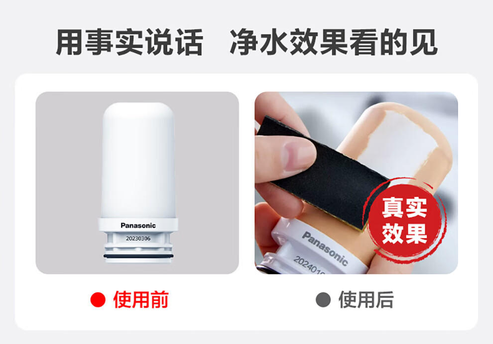松下净水器家用水龙头过滤器自来水卫生间厨房净水不插电过滤器大流量进口活性炭除氯除味TK-EUNJ53H/B 进口黑博卡碳【1机6芯】白色