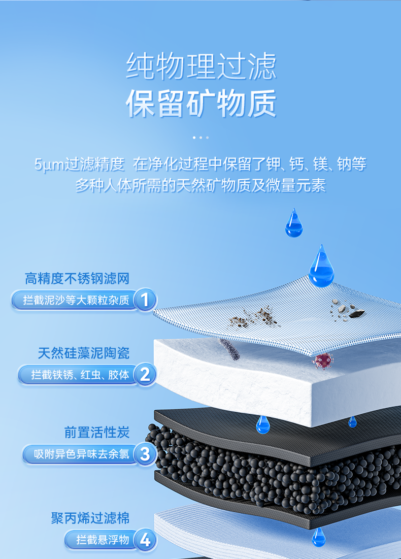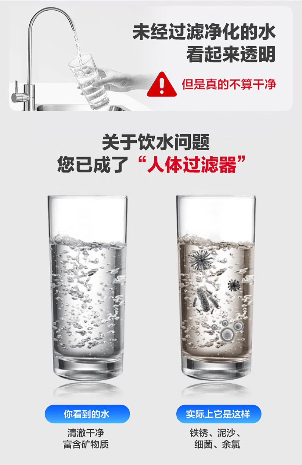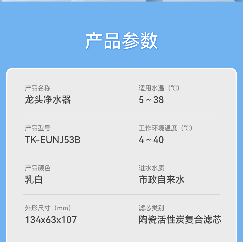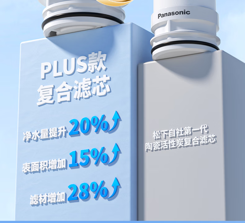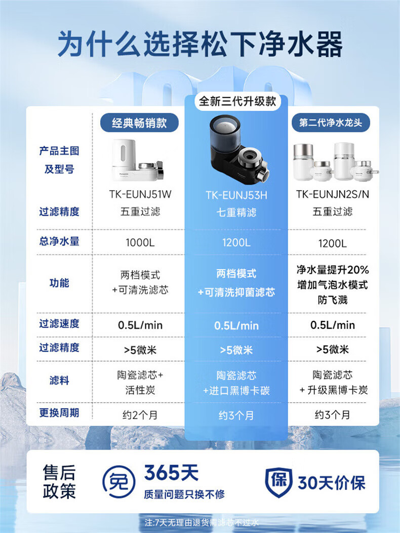松下净水器家用水龙头过滤器自来水卫生间厨房净水不插电过滤器大流量进口活性炭除氯除味TK-EUNJ53H/B 进口黑博卡碳【1机6芯】白色