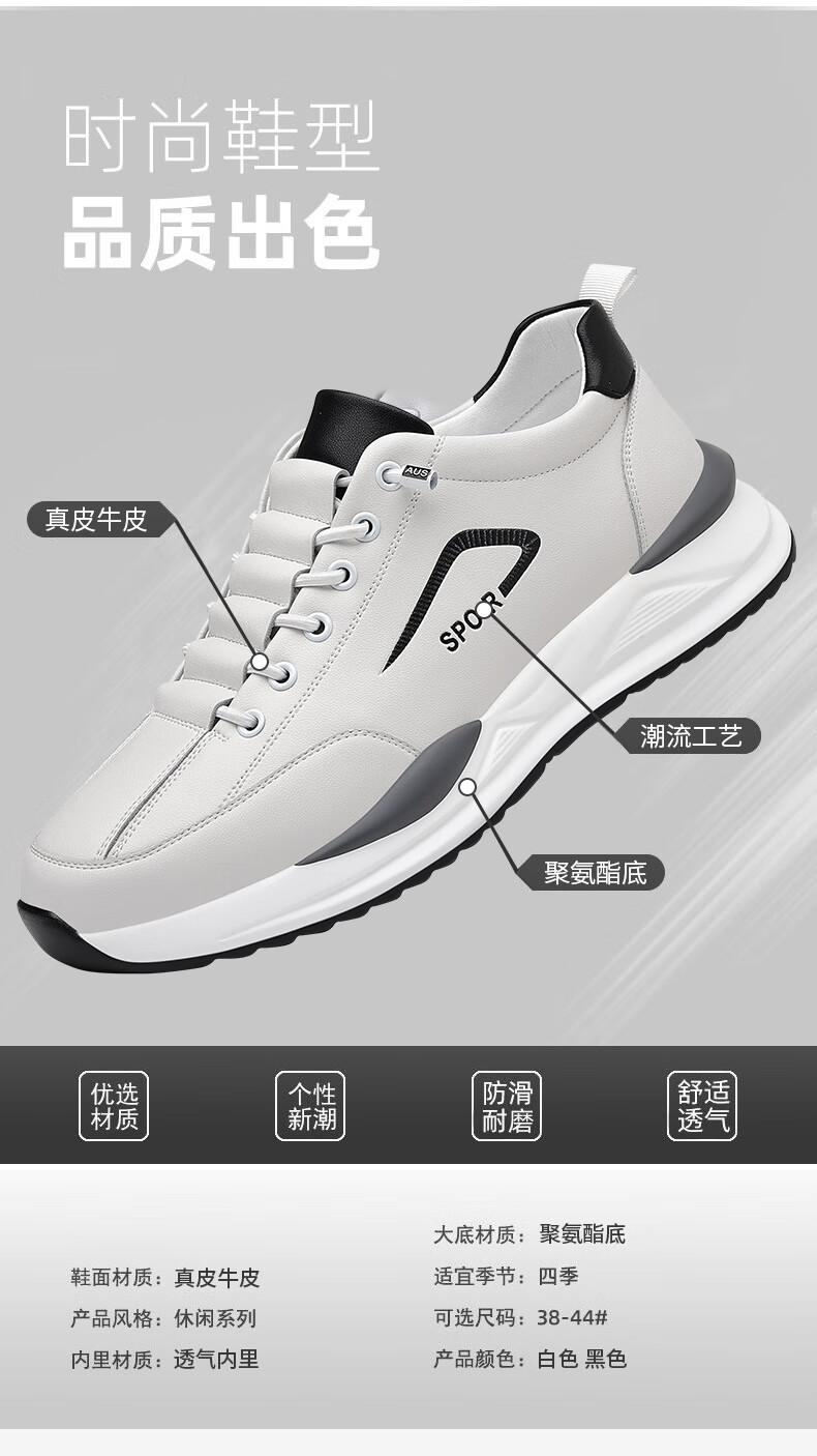 环球女鞋小白鞋子女2025春秋配裙子情侣百搭透气厚底增高休闲板鞋子男 驼色【厚底增高4厘米】 39 男码-【标准码,正常拍】