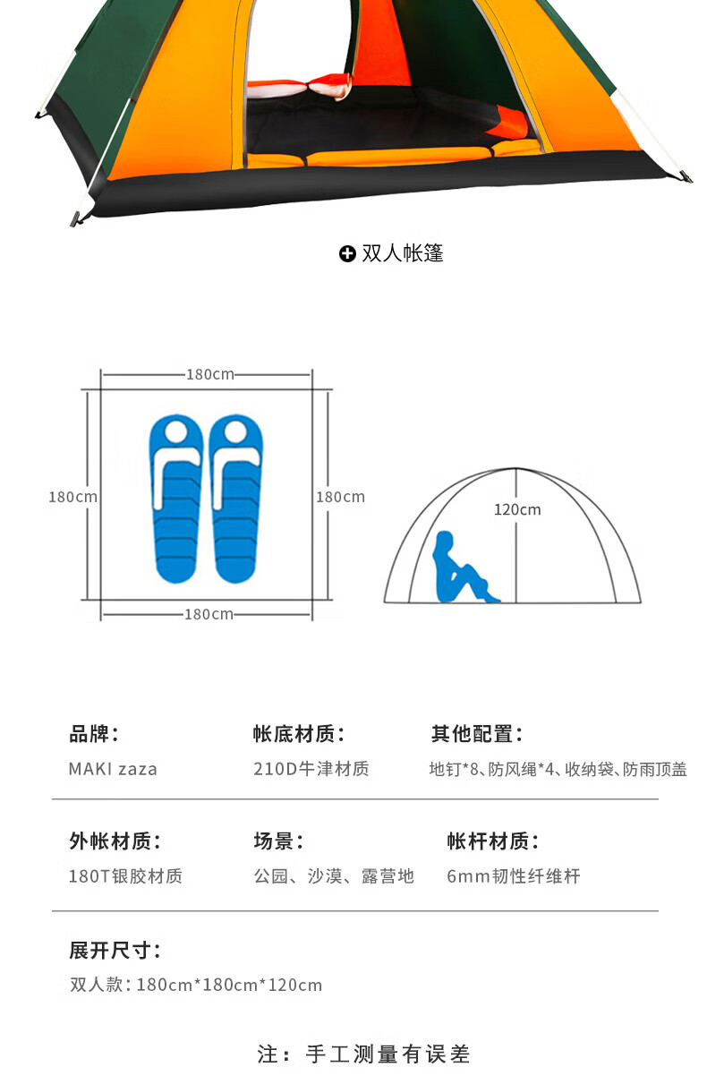 Makizaza户外运动天幕帐篷精致防晒便携野餐露营装备 两门帐篷 云雾灰