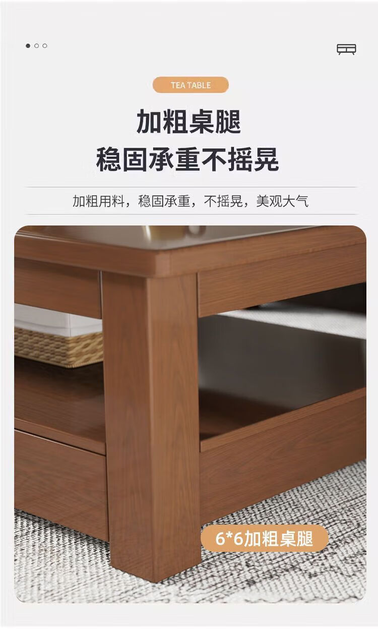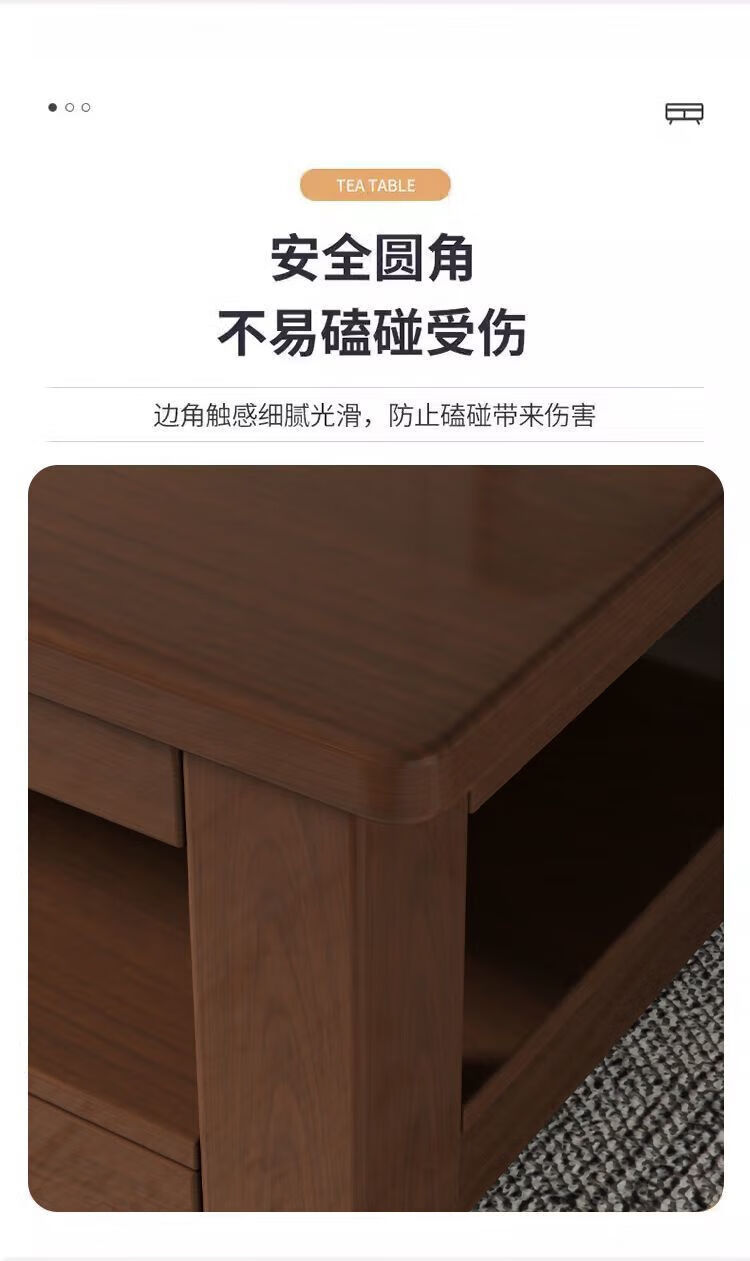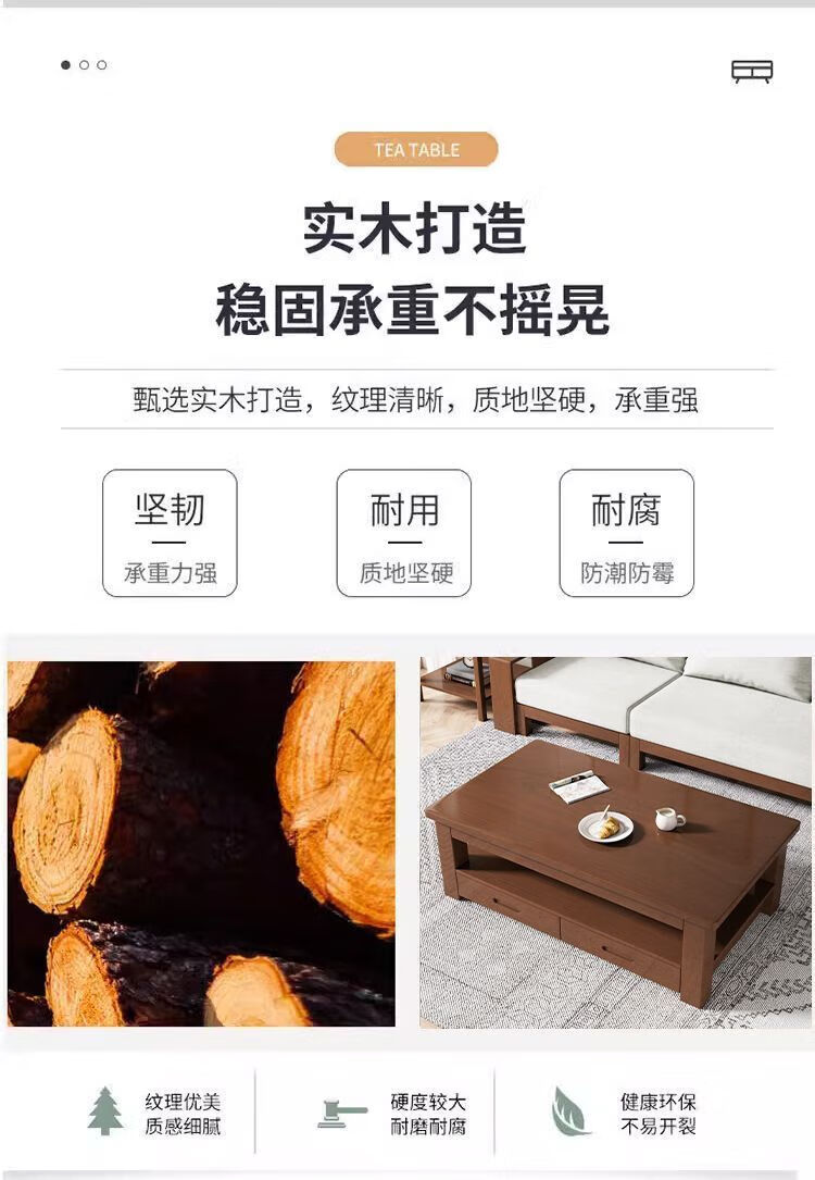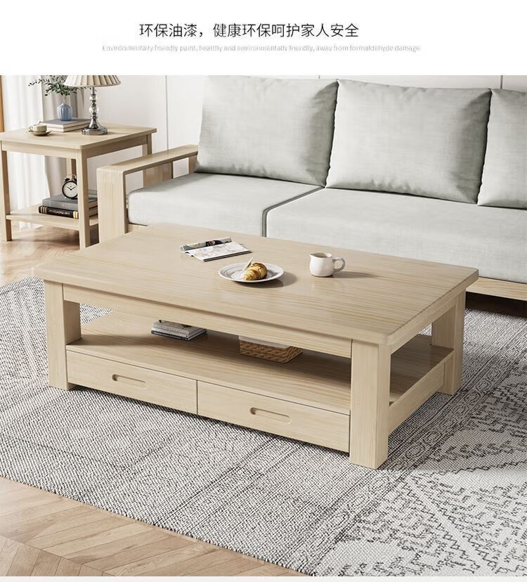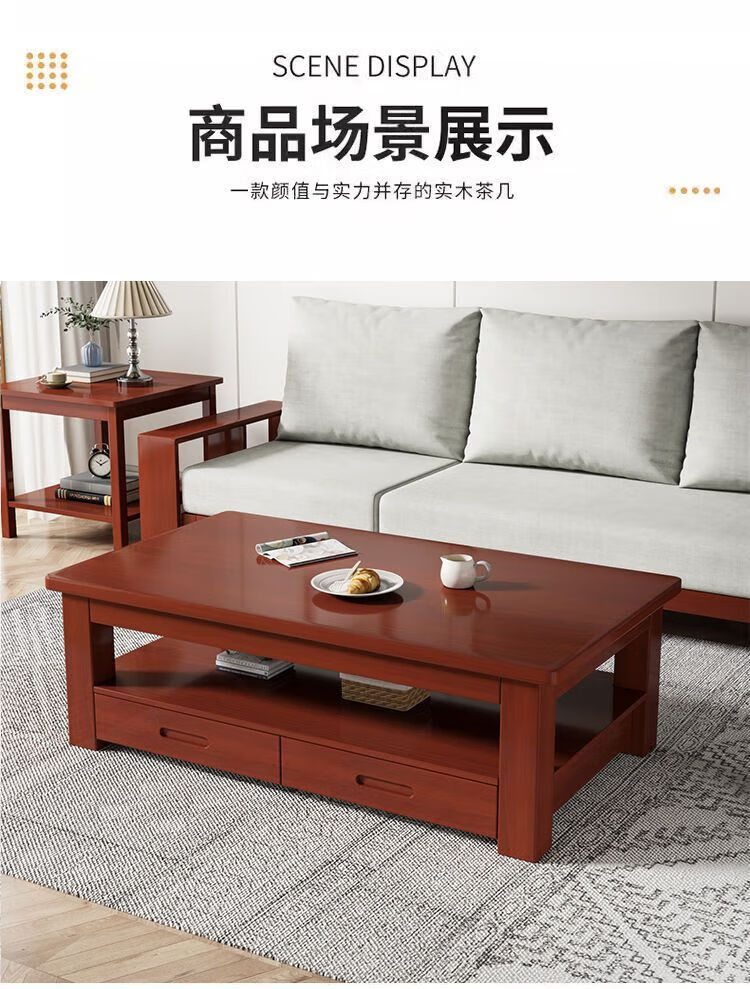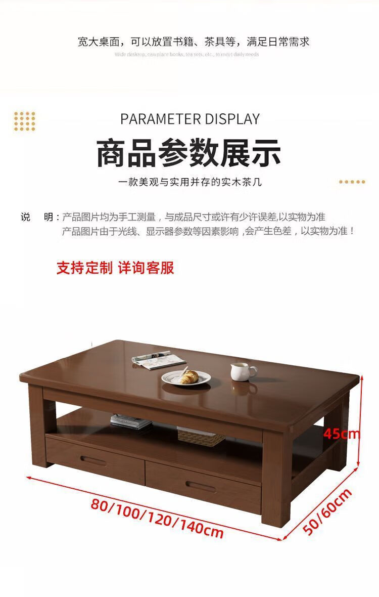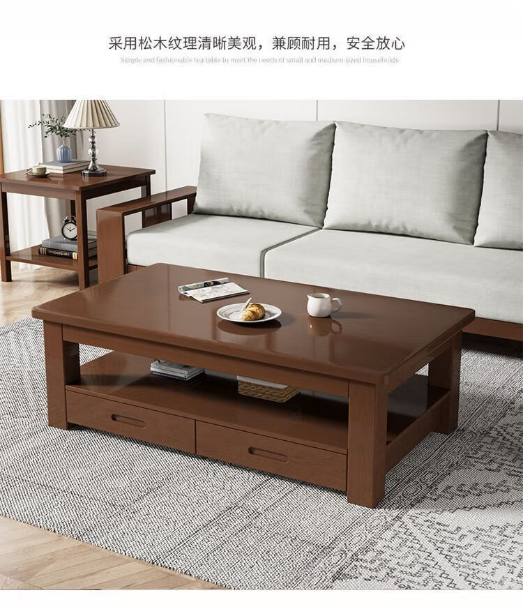 倘然之家简约北欧现代客厅办公实木茶几小户型家用双层储物茶桌抽屉新中式 胡桃色【实木加厚】 *带抽屉*长80*宽50*高45.