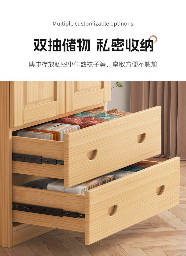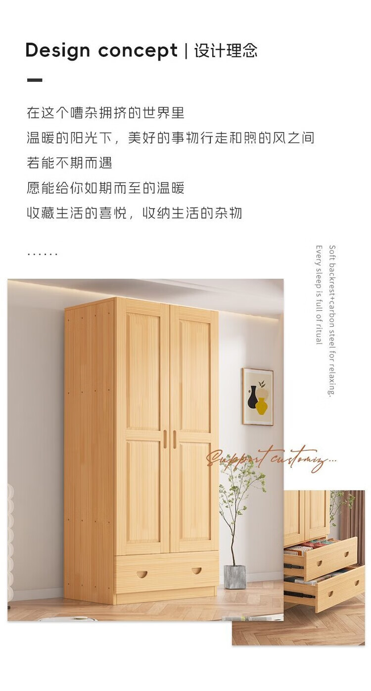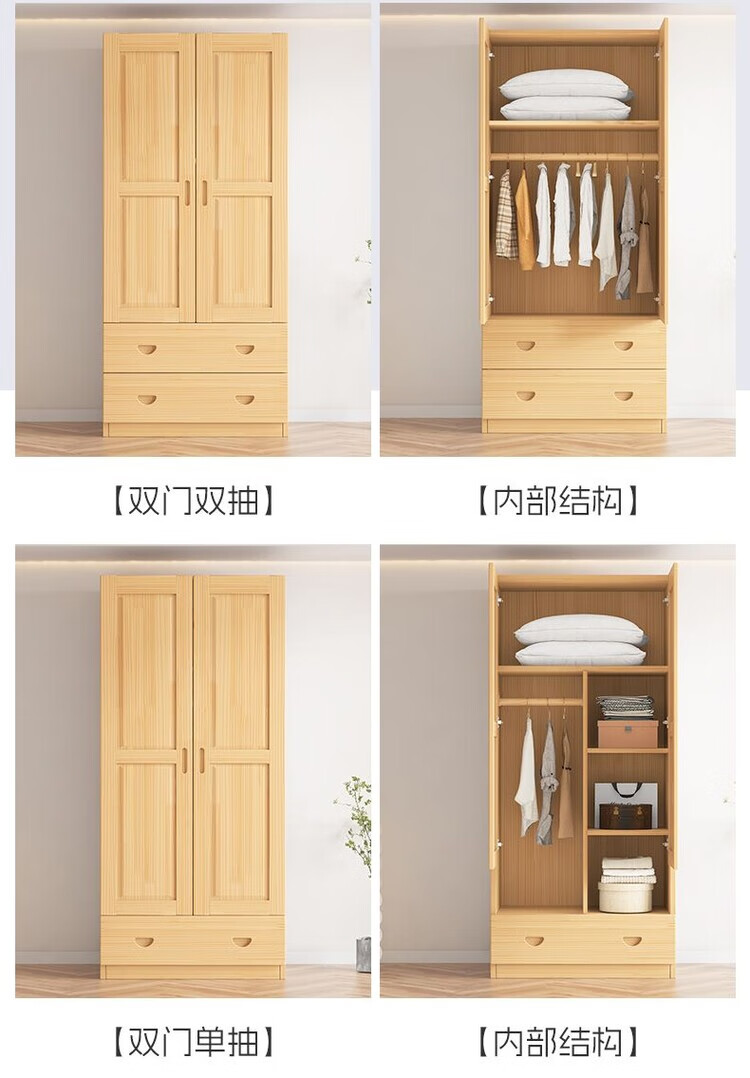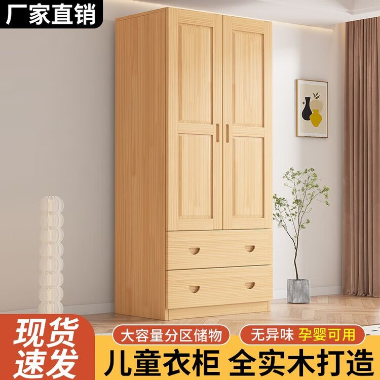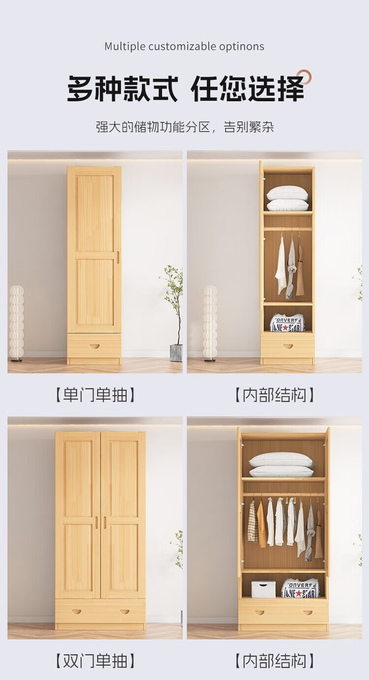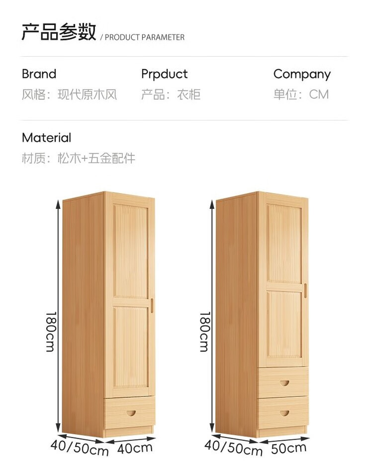 倘然之家实木衣柜全实木儿童衣柜家用卧室简约松木柜子抽屉对开门单人衣橱 【顺丰送货上楼+自行安装】纯实木 清漆款 长40深40高180cm A款单抽