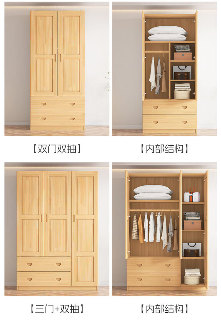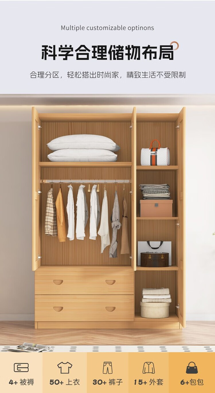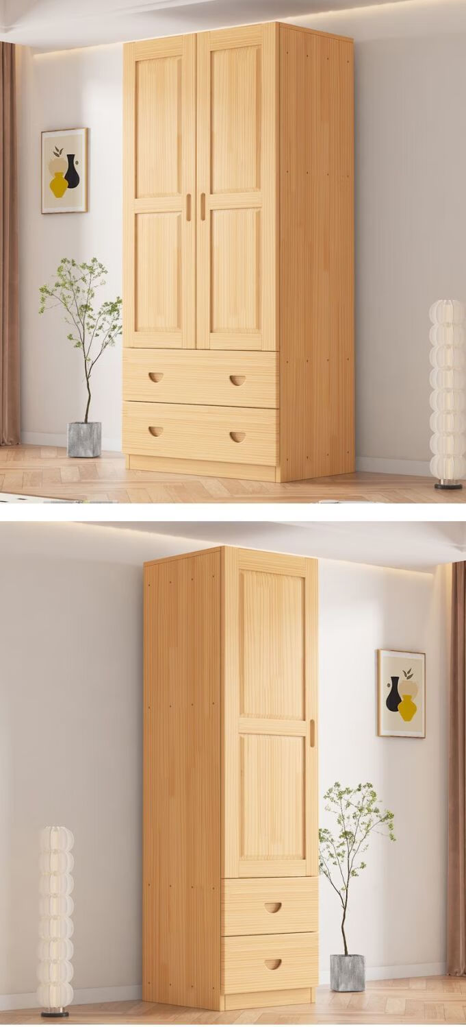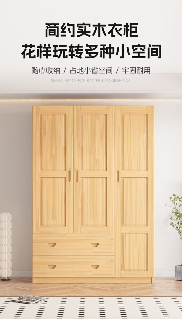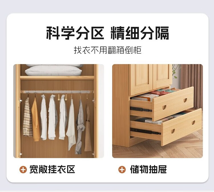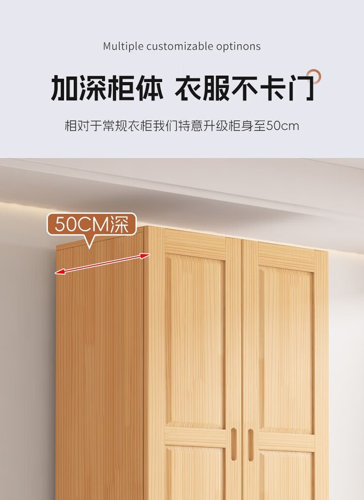 倘然之家实木衣柜全实木儿童衣柜家用卧室简约松木柜子抽屉对开门单人衣橱 【顺丰送货上楼+自行安装】纯实木 清漆款 长40深40高180cm A款单抽