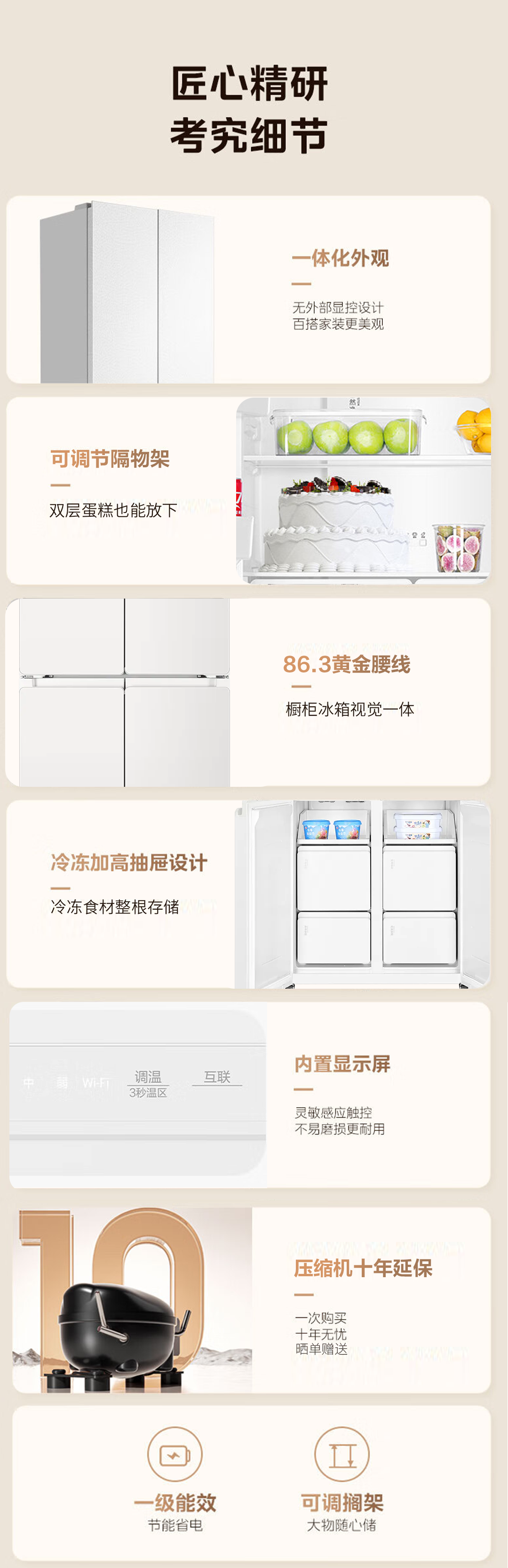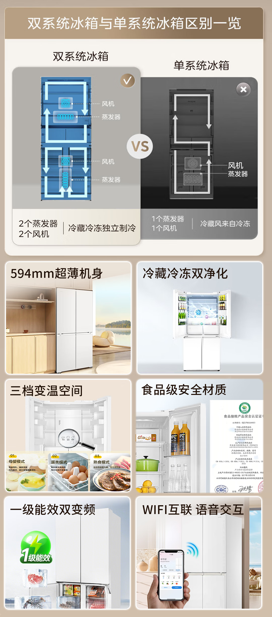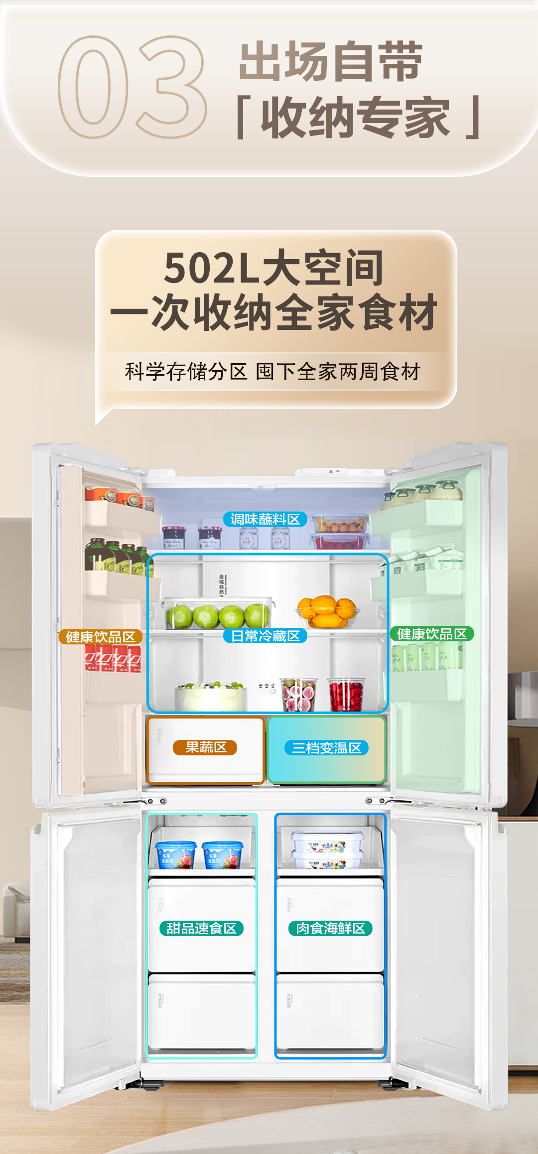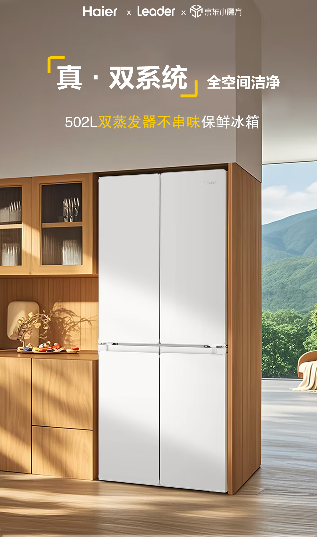 海尔(Haier)冰箱十字对开四门冰箱超薄嵌入式双系统双循环风冷无霜一级能效双变频家用以旧换新电冰箱 502升双蒸发器不串味+全域抗菌防霉净味