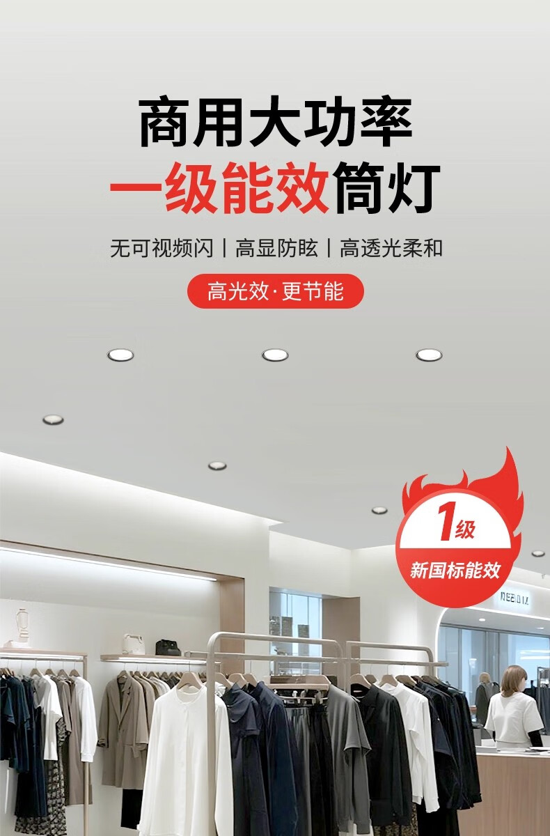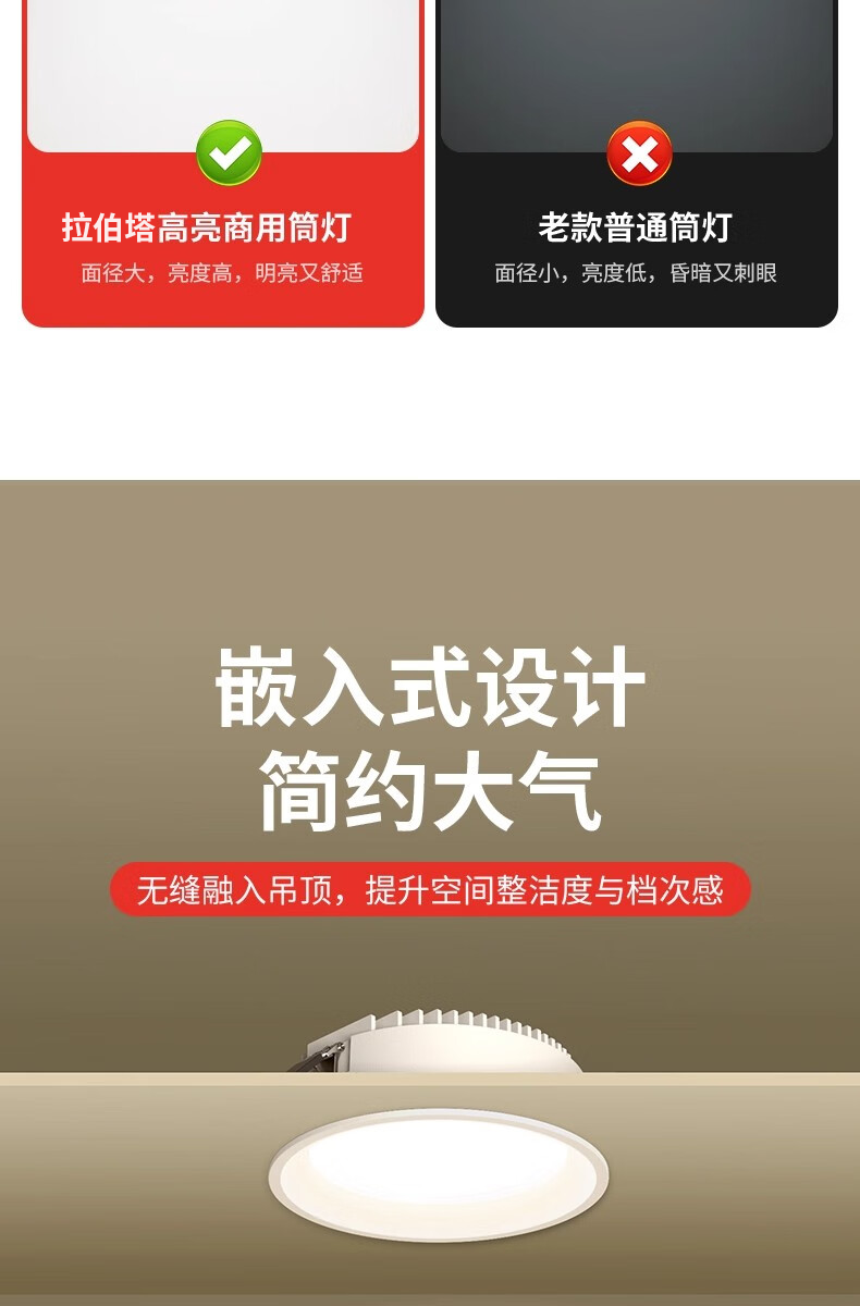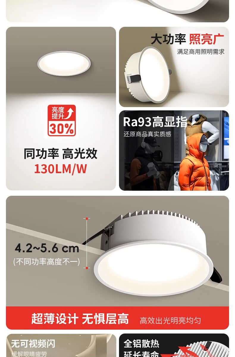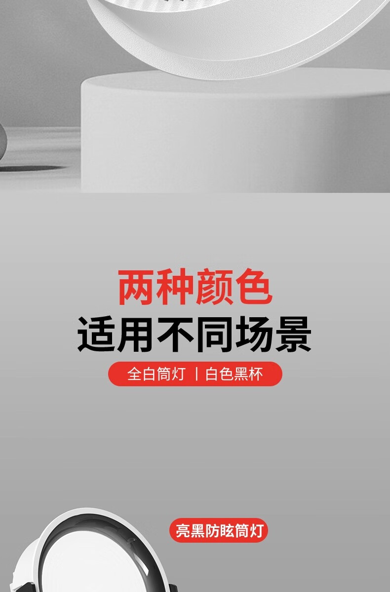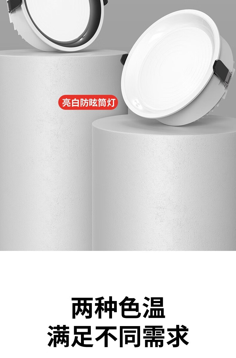拉伯塔一级能效筒灯防眩大瓦数商场店铺超亮4寸6寸开孔12cm嵌入式射灯 【开孔75-80】白杯7W-4000K 一级能耗-0.9P高光效