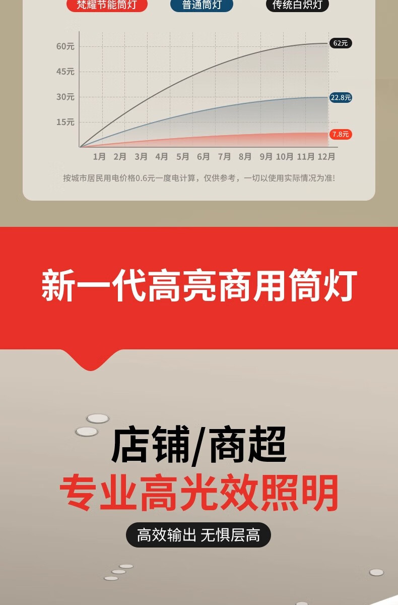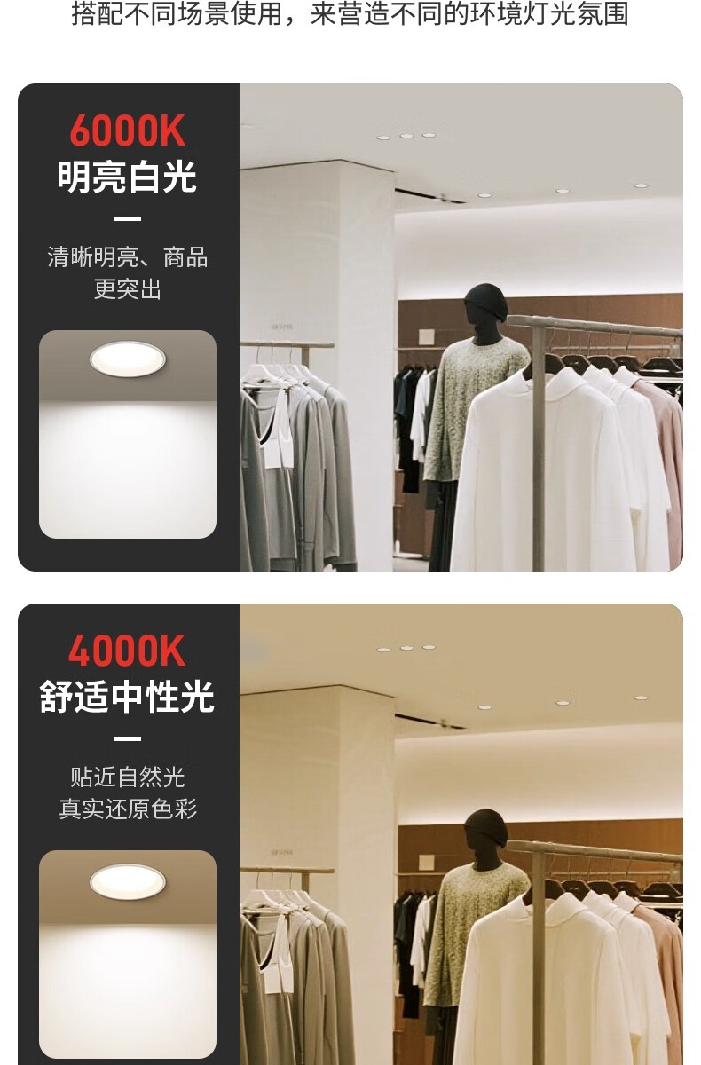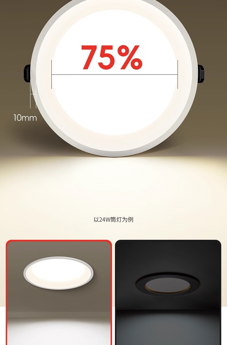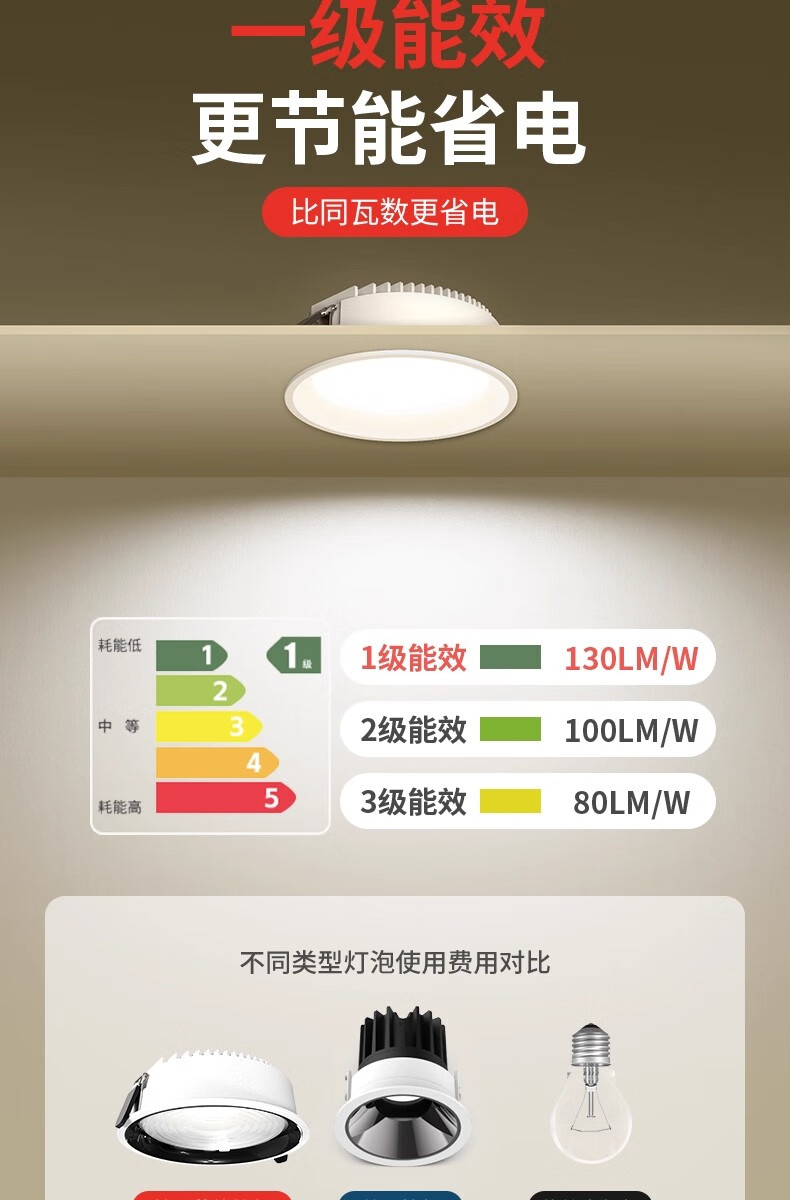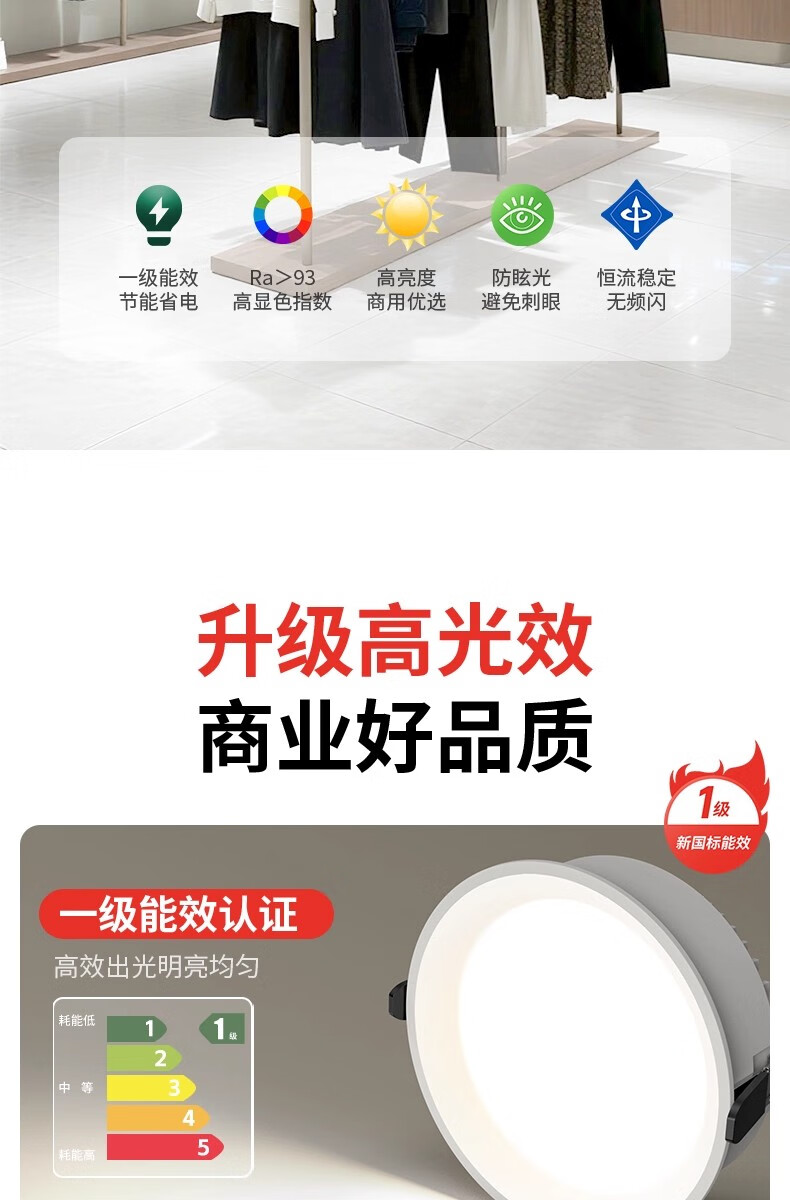 拉伯塔一级能效筒灯防眩大瓦数商场店铺超亮4寸6寸开孔12cm嵌入式射灯 【开孔75-80】白杯7W-4000K 一级能耗-0.9P高光效