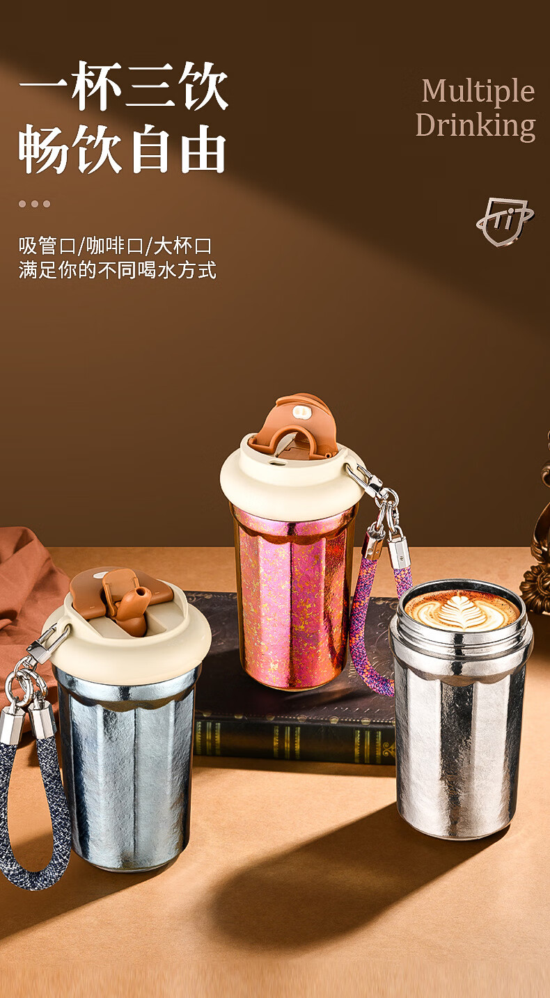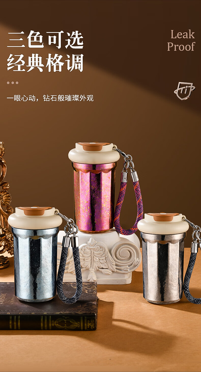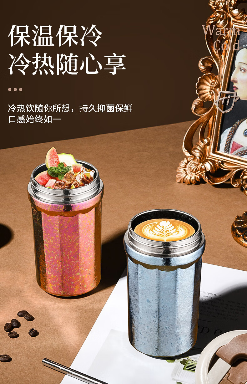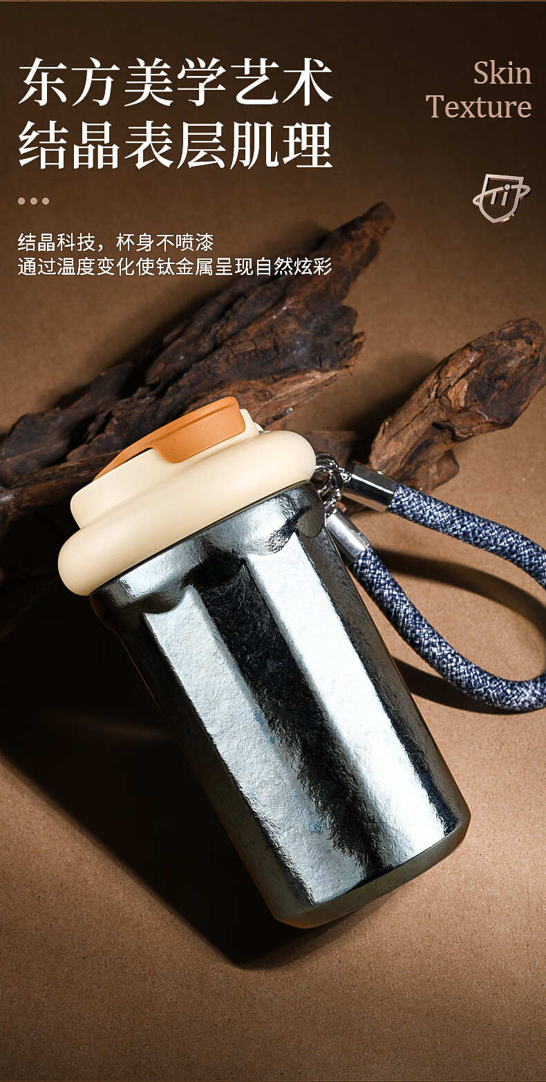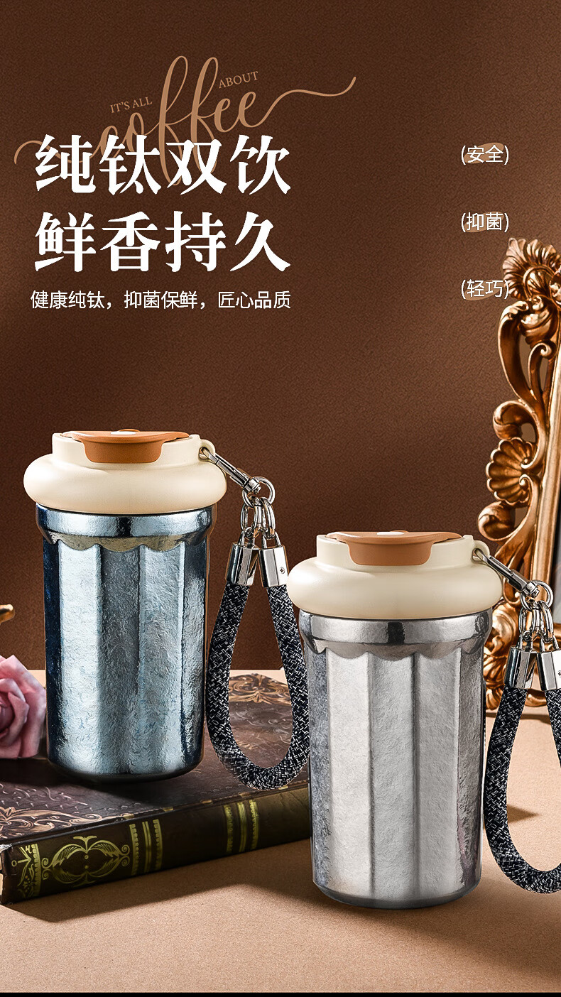 WFFPM德国品牌彩光手提咖啡杯便携随行纯钛高颜值随手杯轻奢女生送礼物 皓月银 400ml