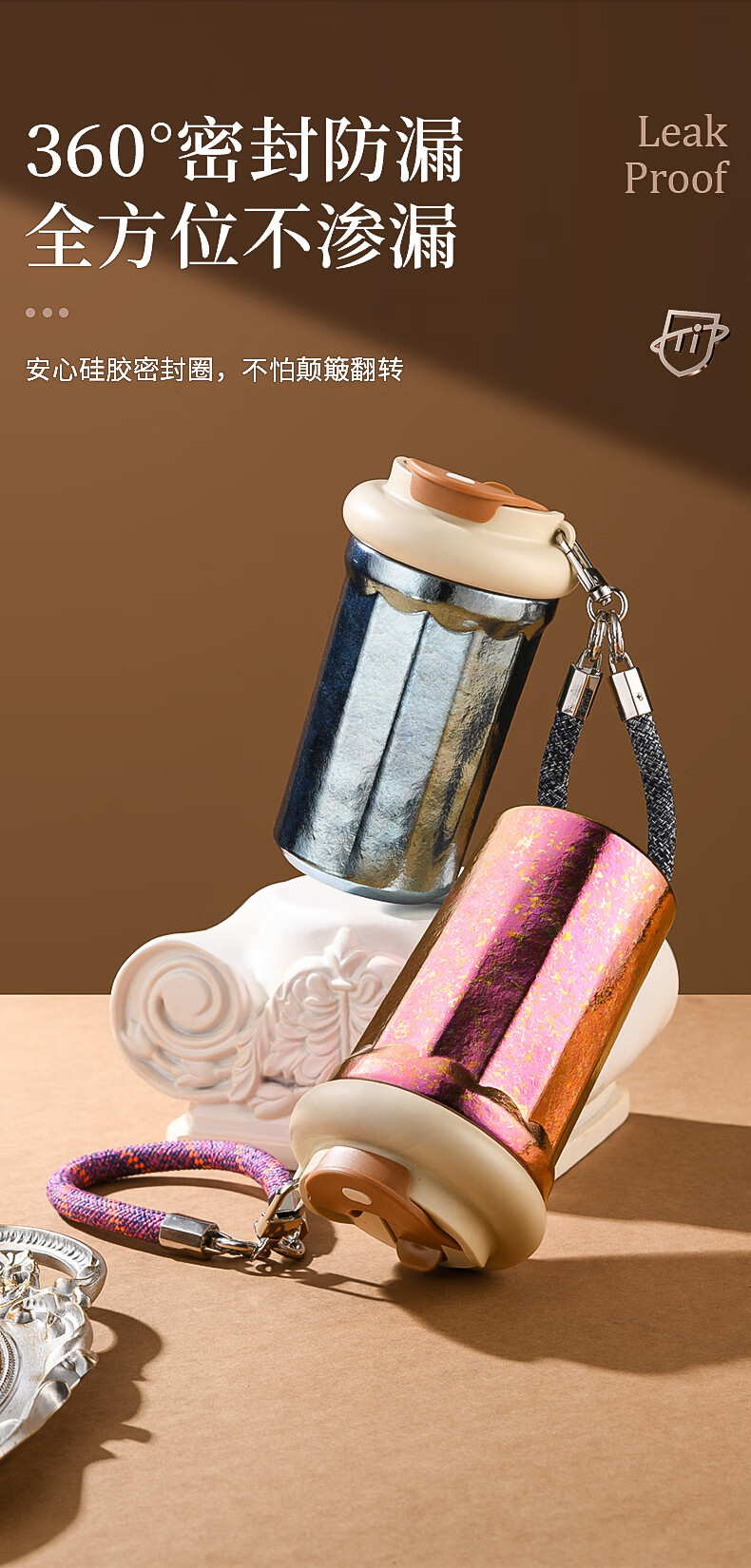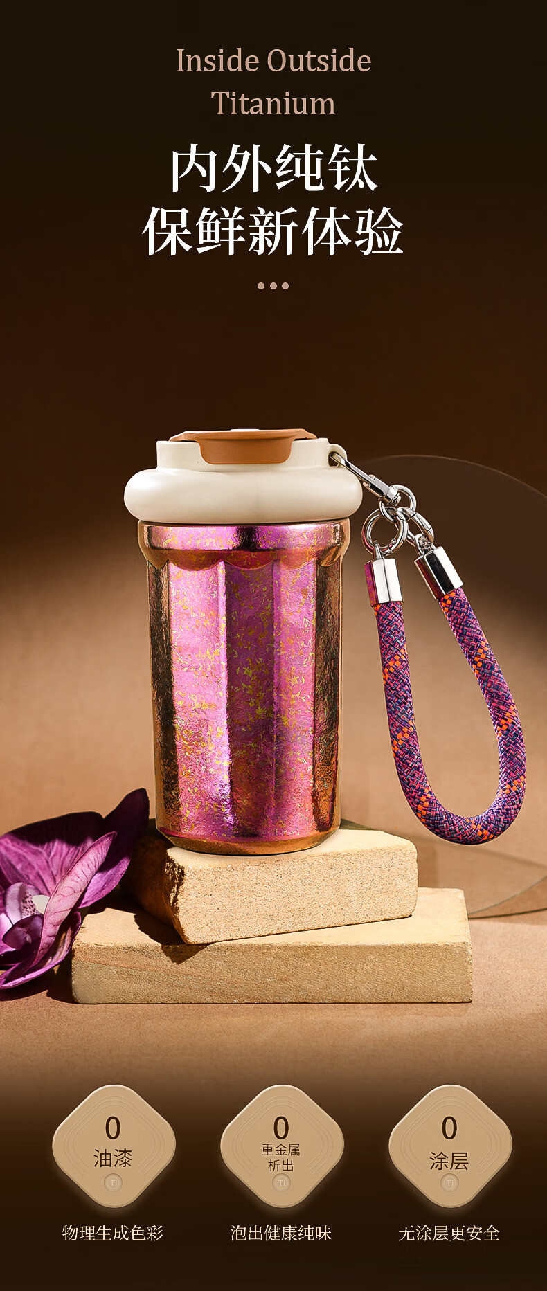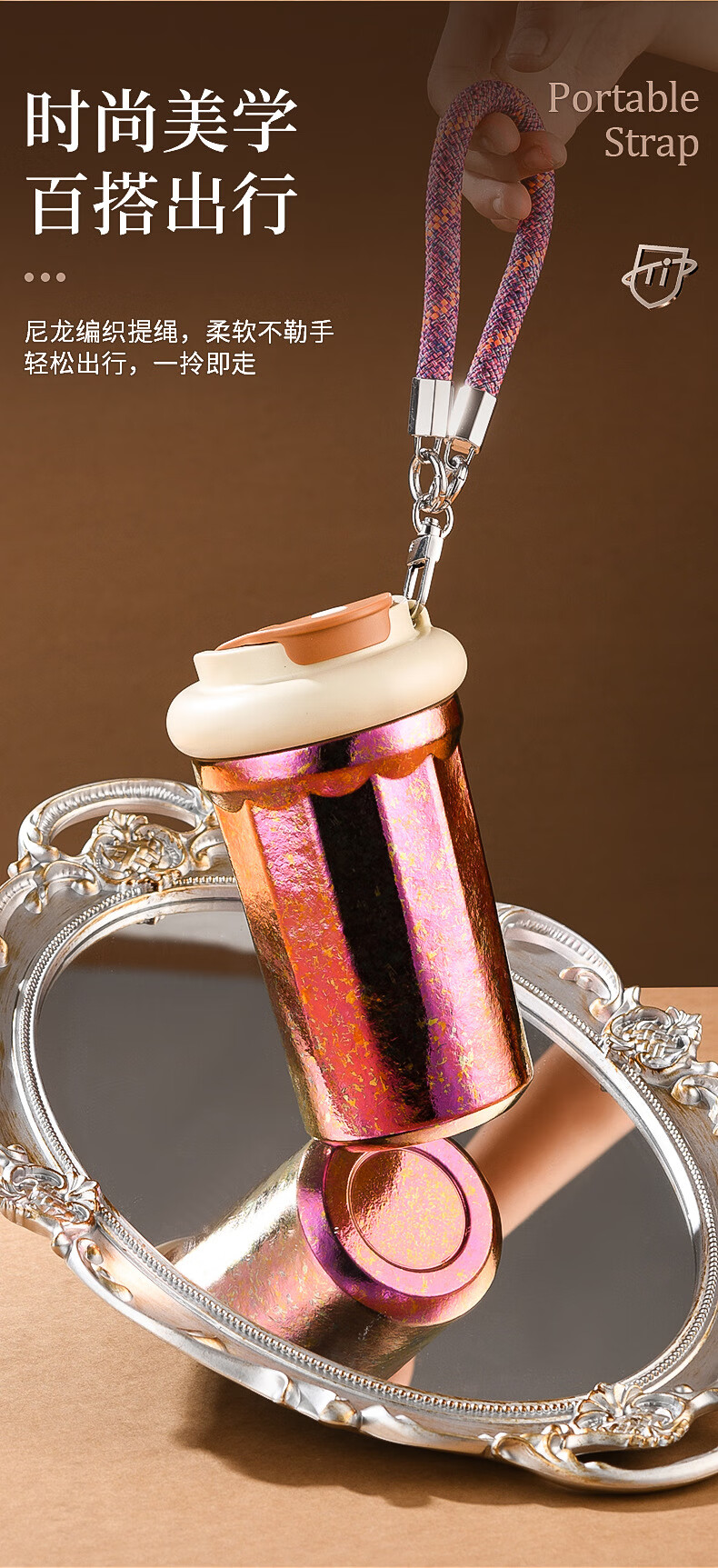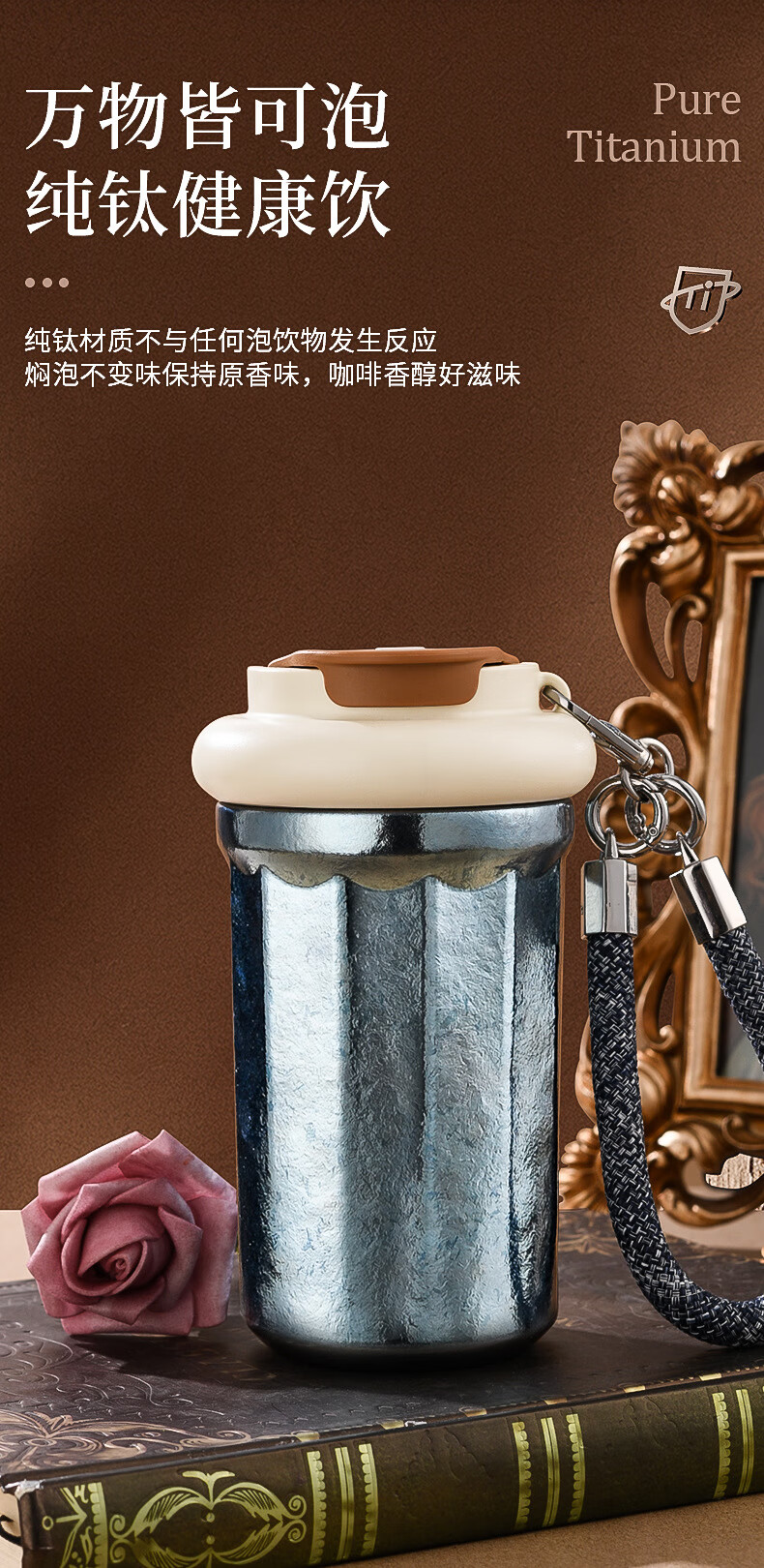 WFFPM德国品牌彩光手提咖啡杯便携随行纯钛高颜值随手杯轻奢女生送礼物 皓月银 400ml