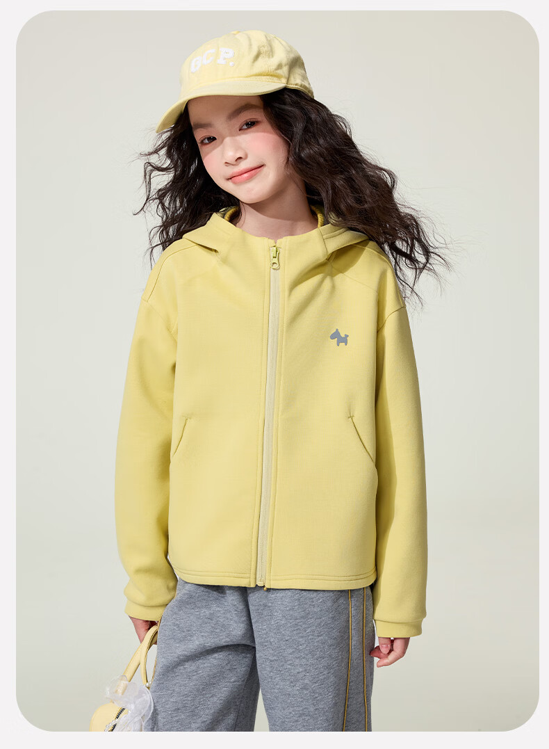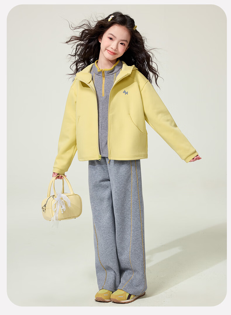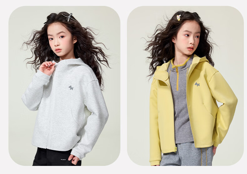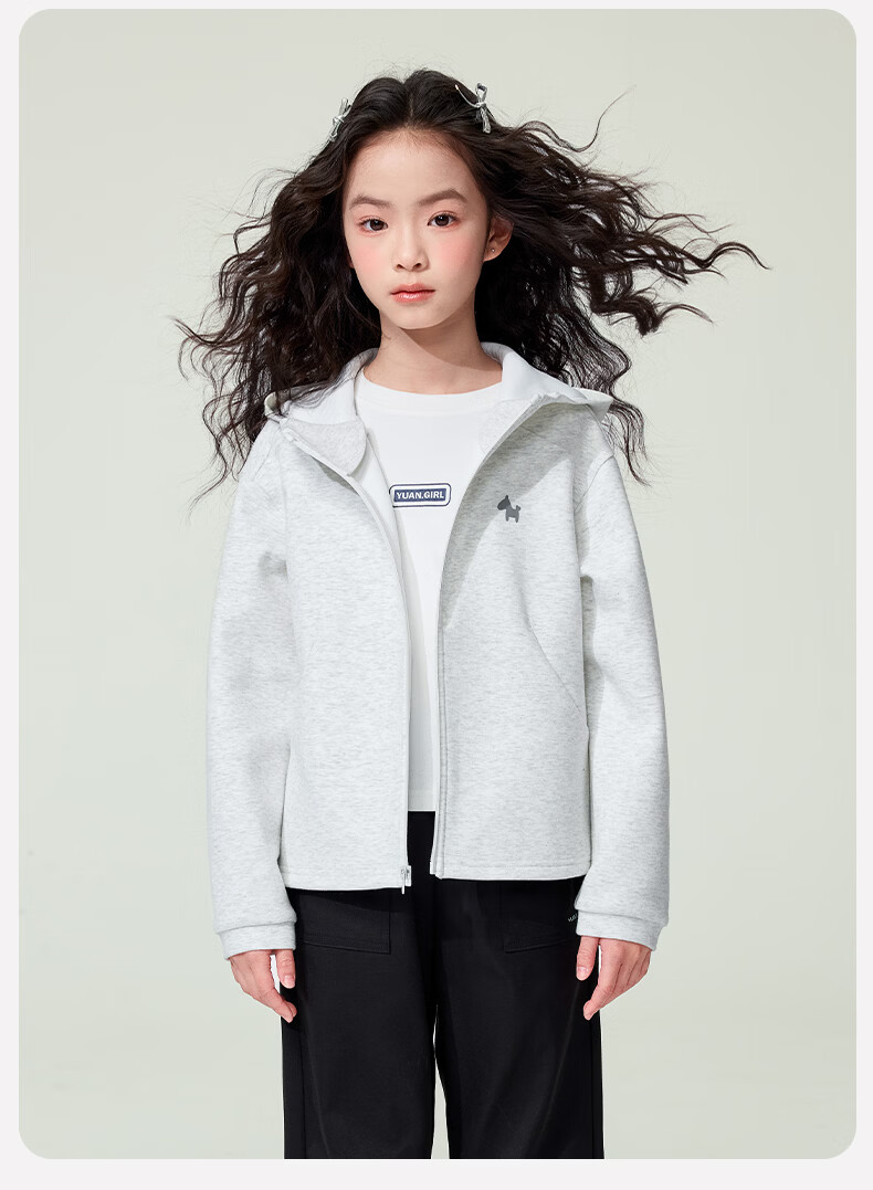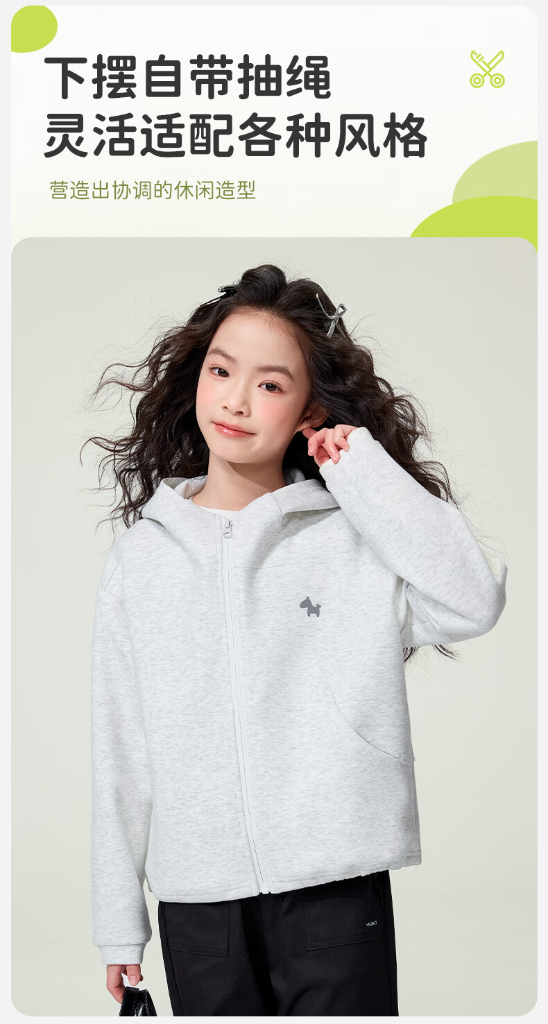 媛媛公主女童外套春秋款儿童连帽暖密绒卫衣26新款中大童学院风开衫上衣 灰色 110
