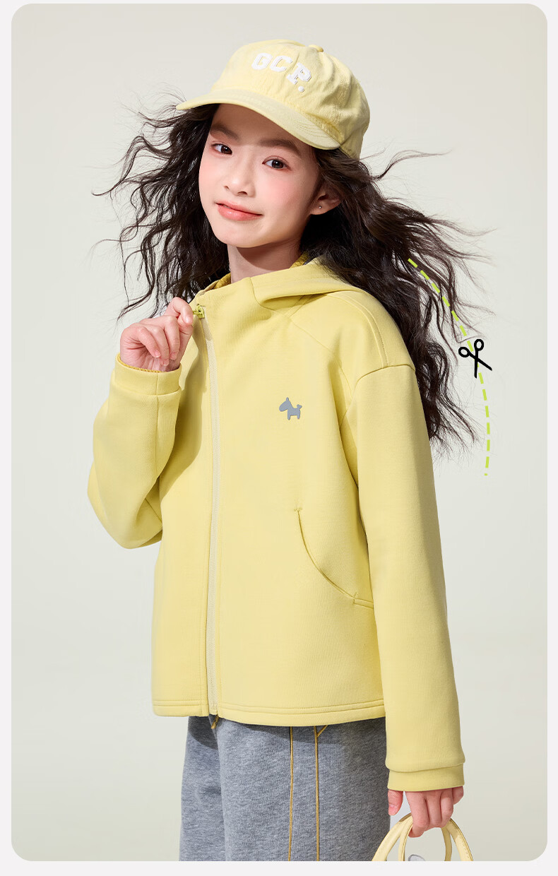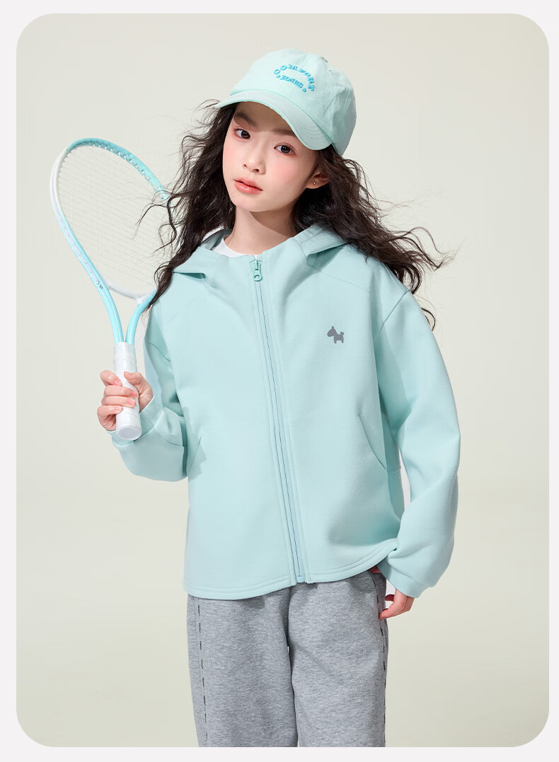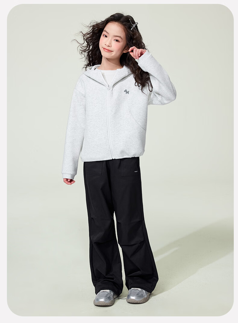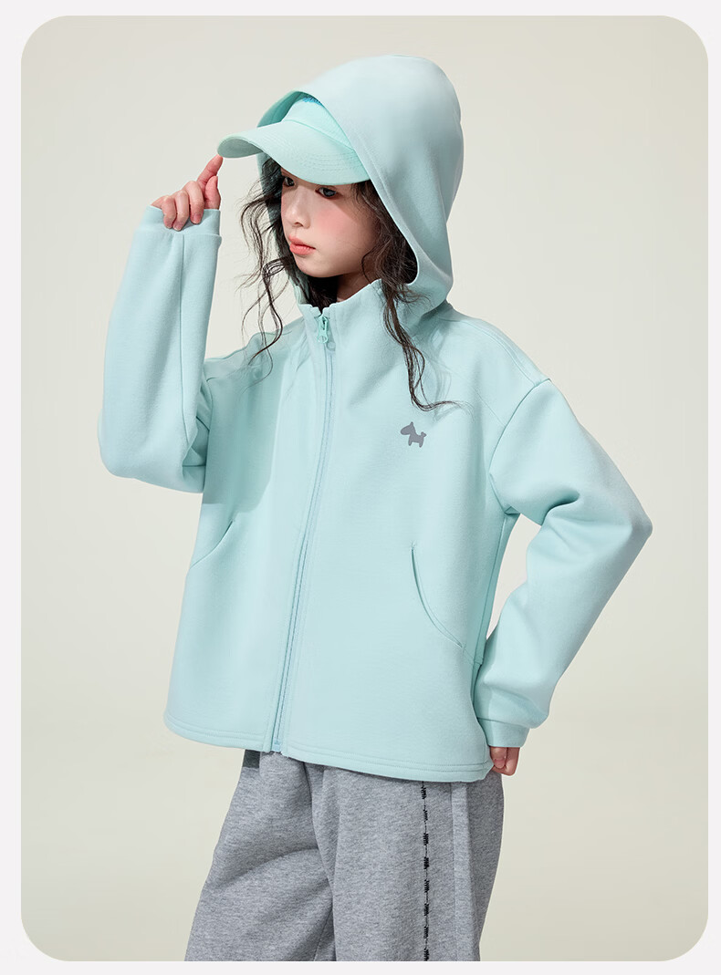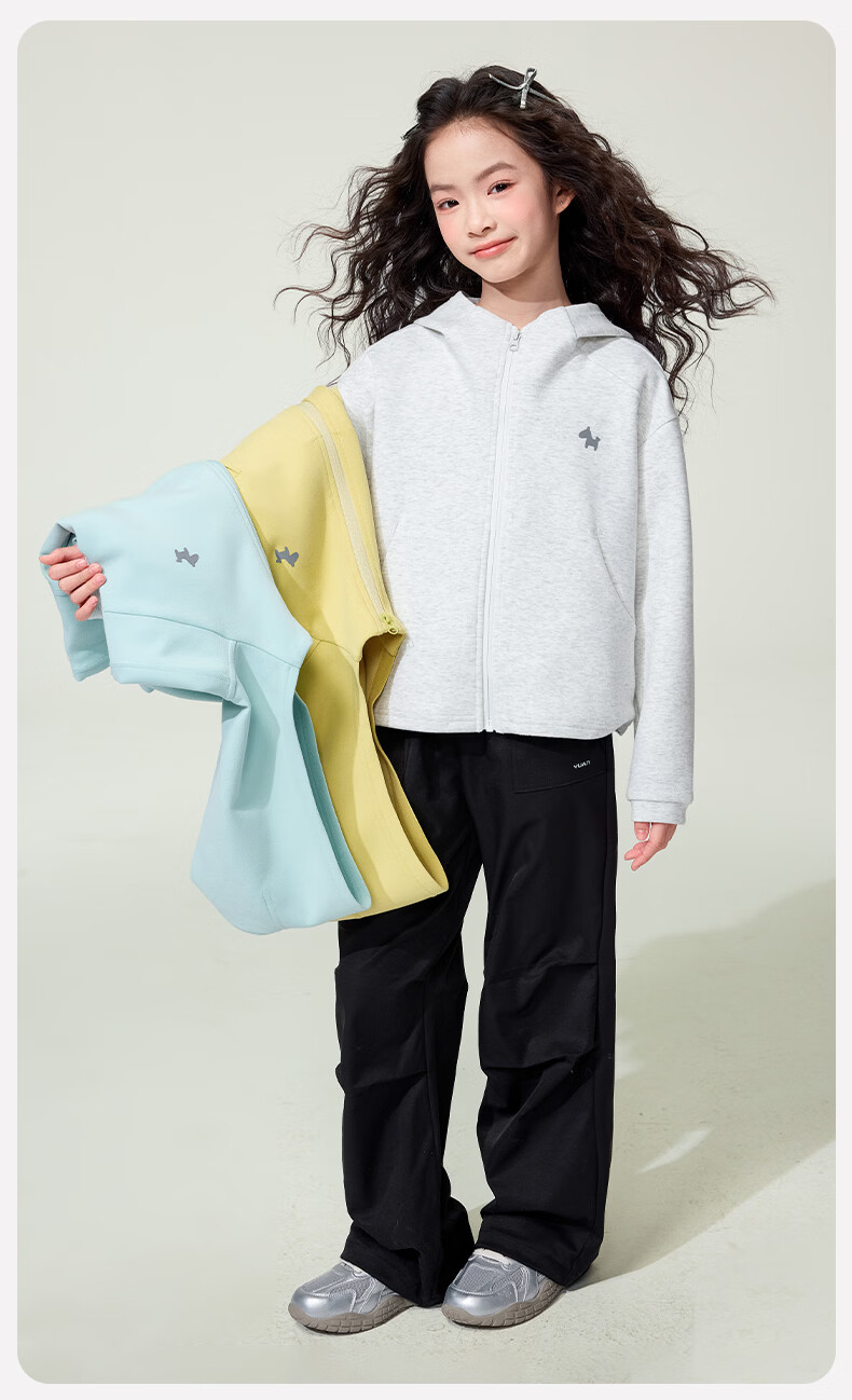 媛媛公主女童外套春秋款儿童连帽暖密绒卫衣26新款中大童学院风开衫上衣 灰色 110