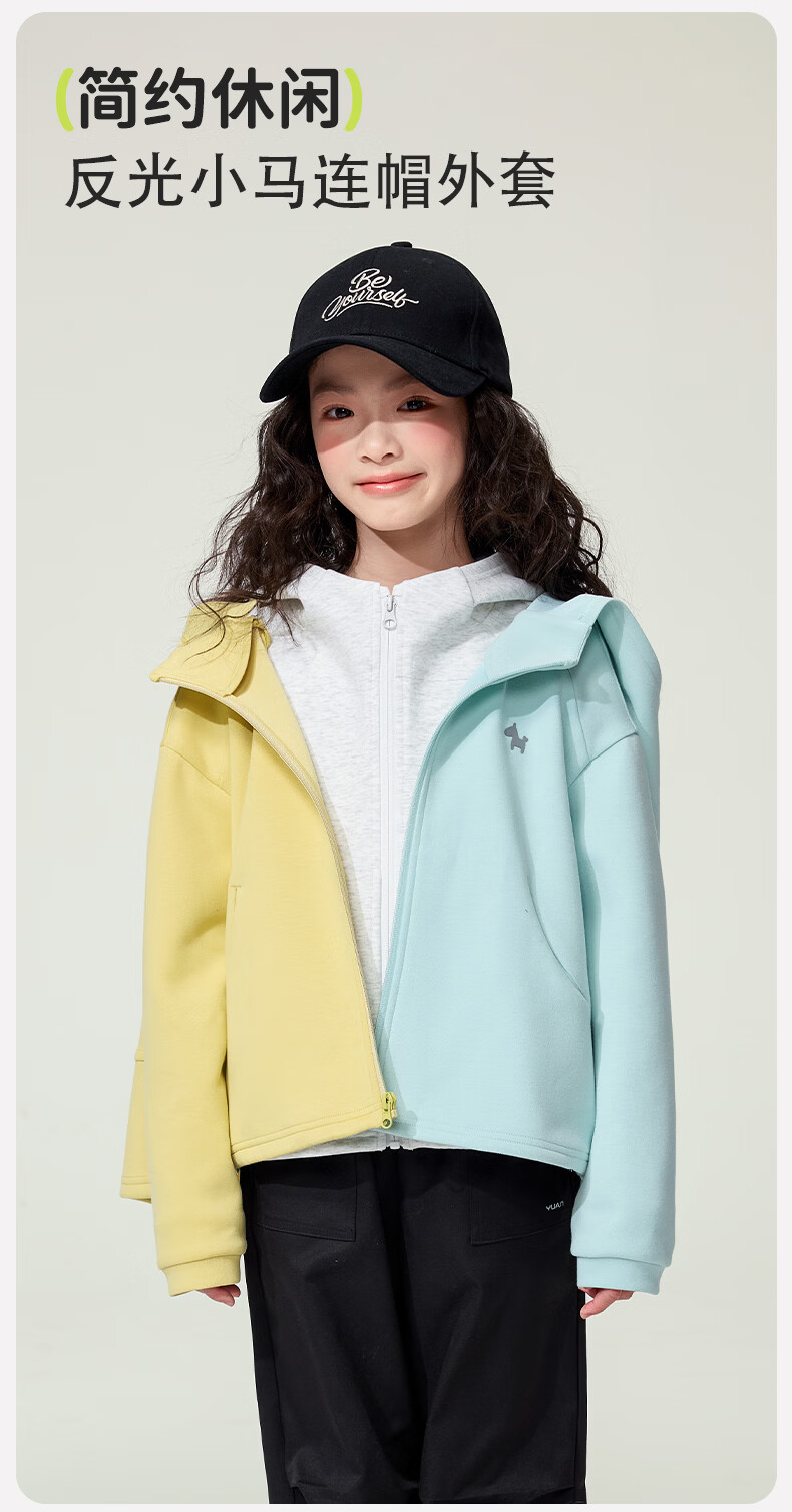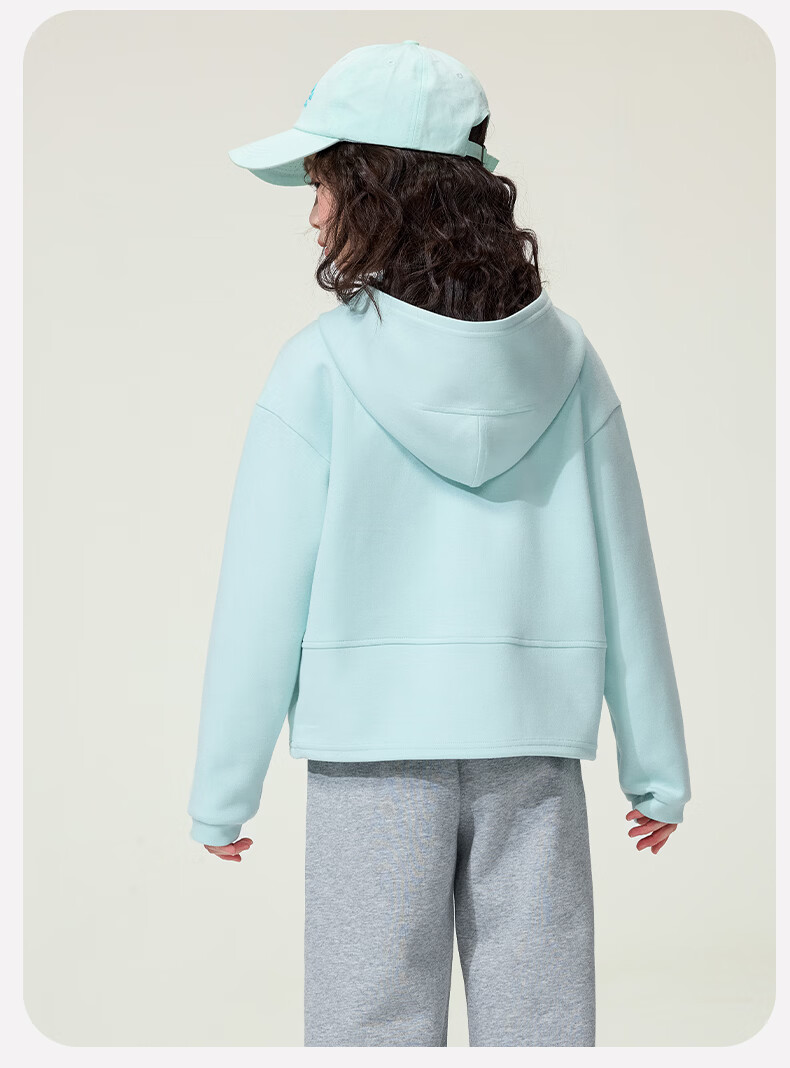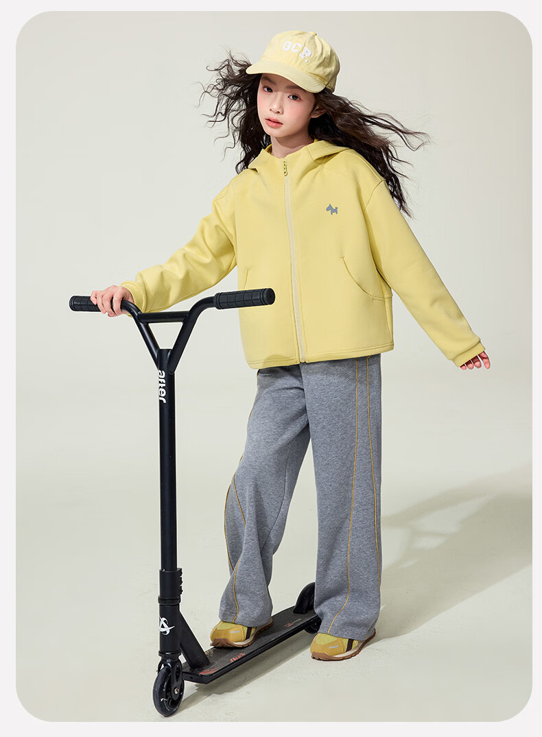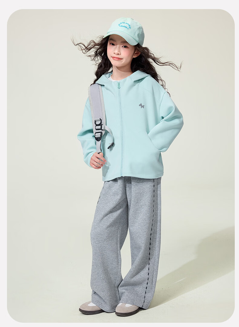 媛媛公主女童外套春秋款儿童连帽暖密绒卫衣26新款中大童学院风开衫上衣 灰色 110