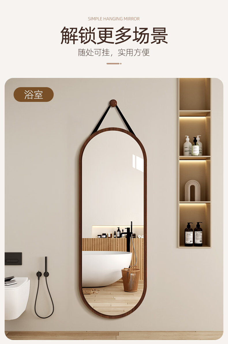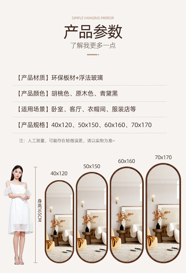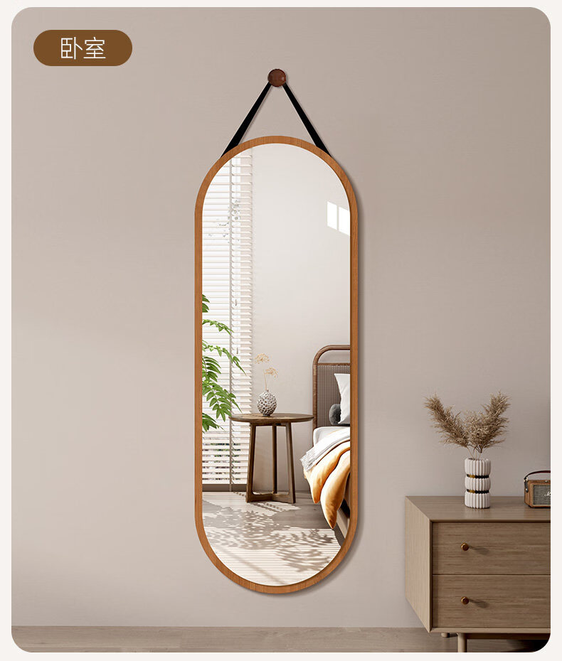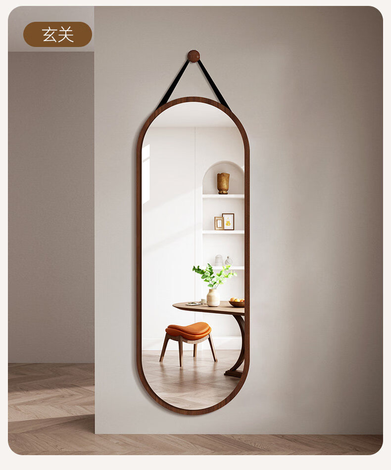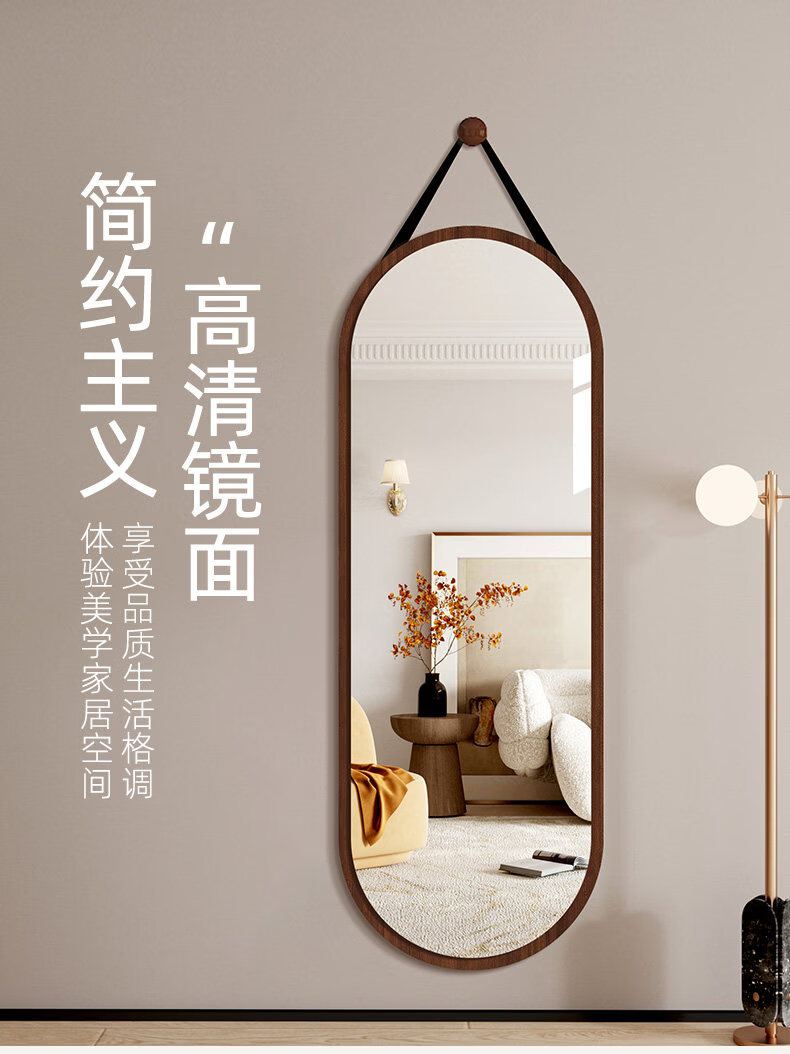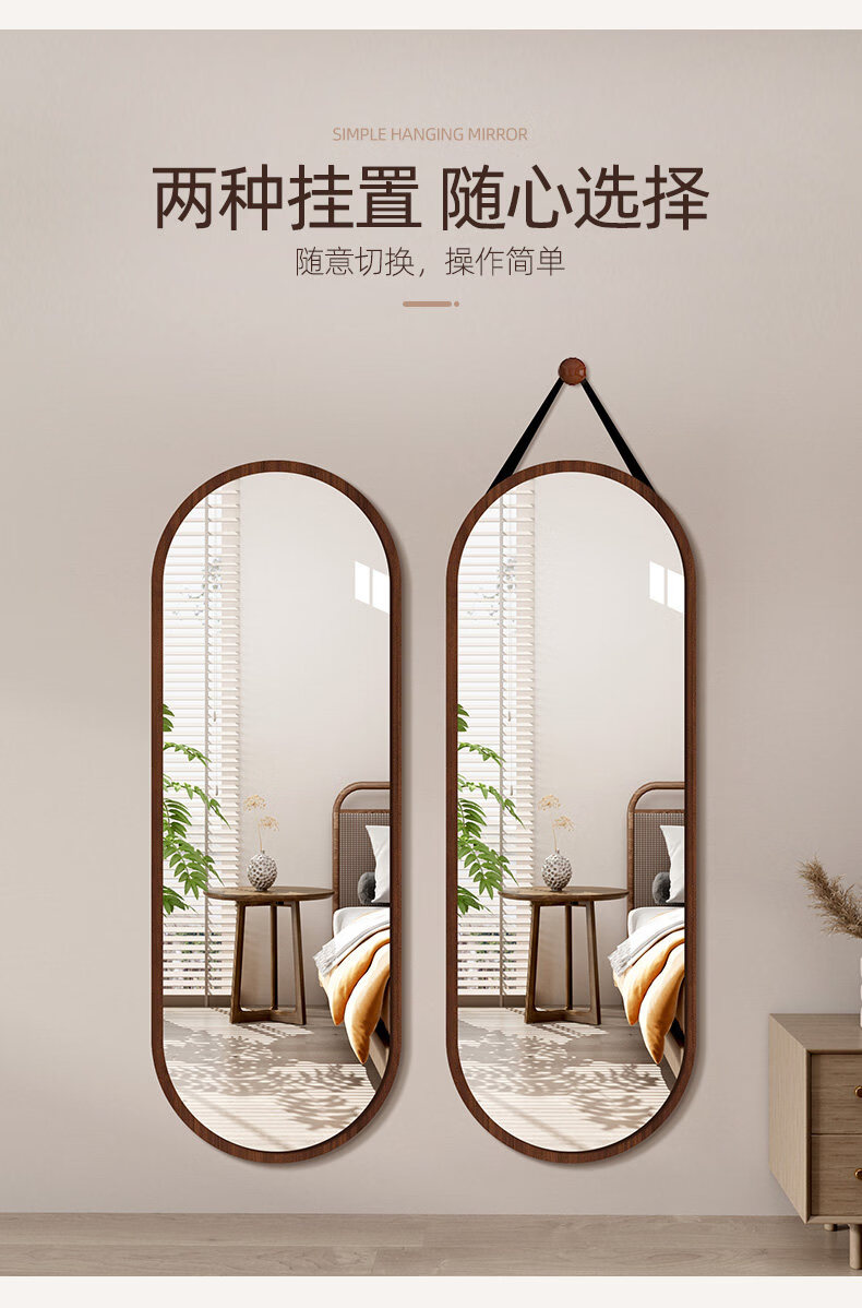 诗元中古风壁挂绳全身镜挂墙穿衣镜贴墙自粘卧室家用玻璃网红试衣镜子 胡桃色【浮法玻艺 运损包赔】 40*120