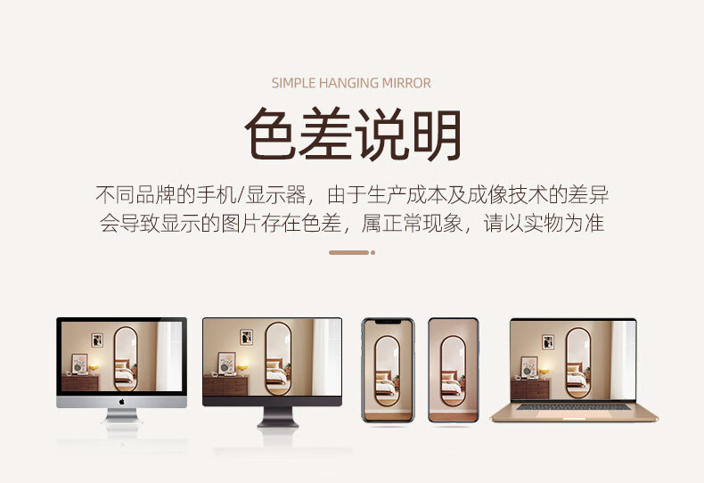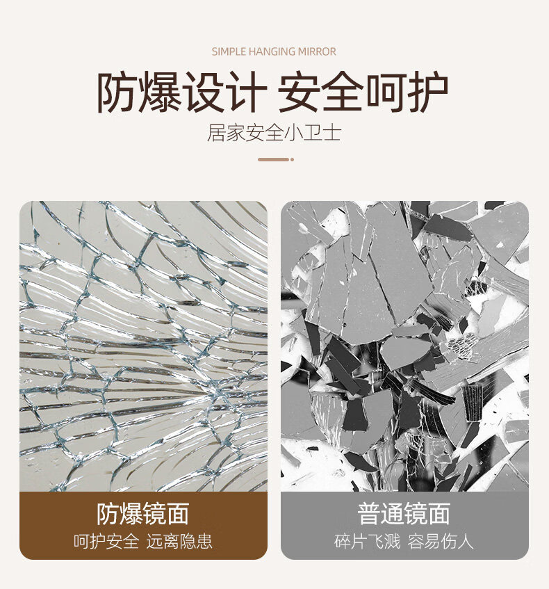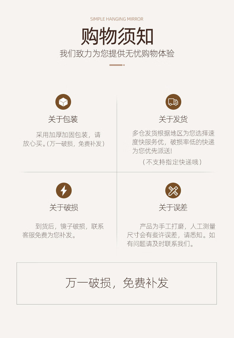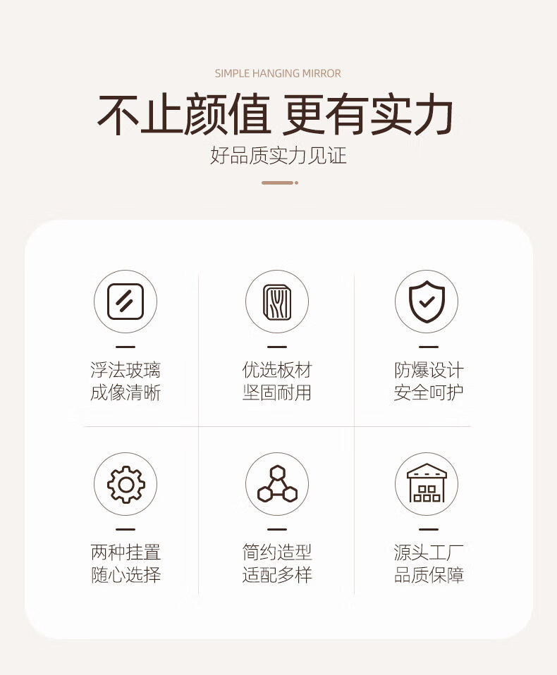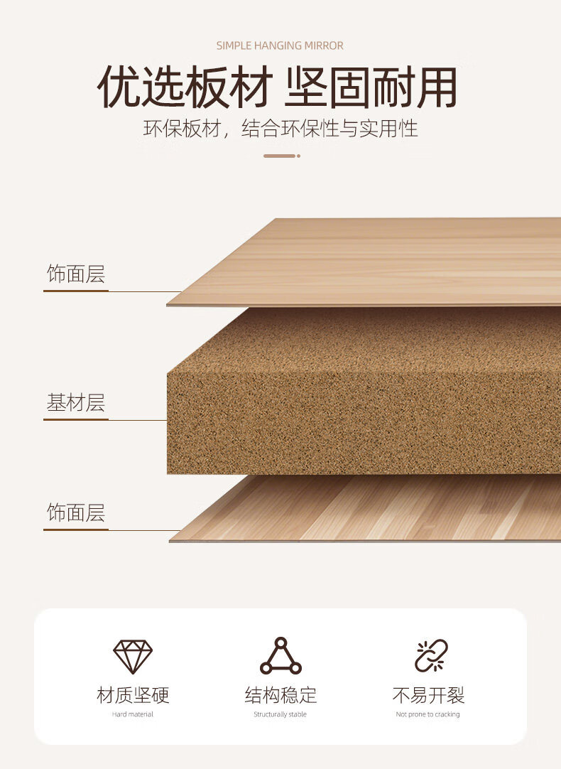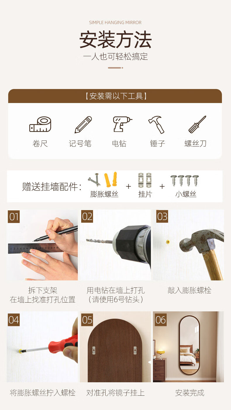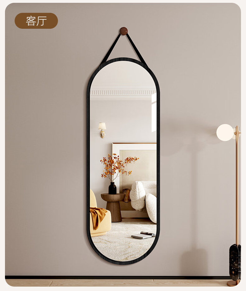 诗元中古风壁挂绳全身镜挂墙穿衣镜贴墙自粘卧室家用玻璃网红试衣镜子 胡桃色【浮法玻艺 运损包赔】 40*120
