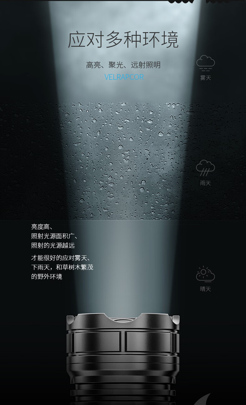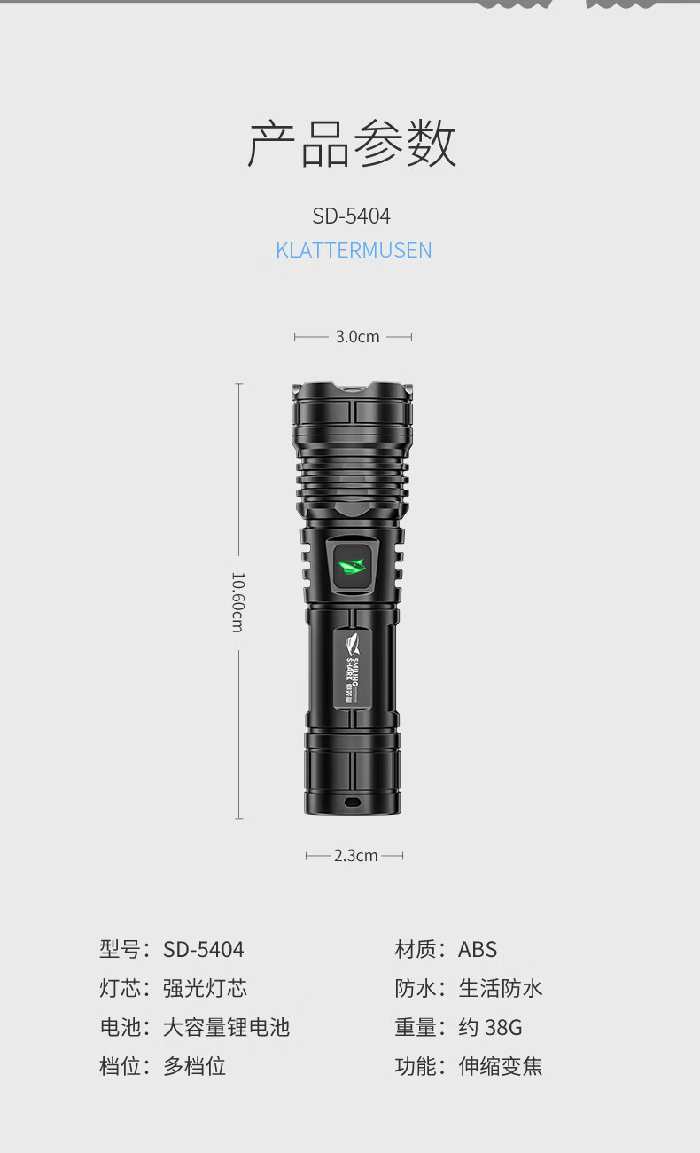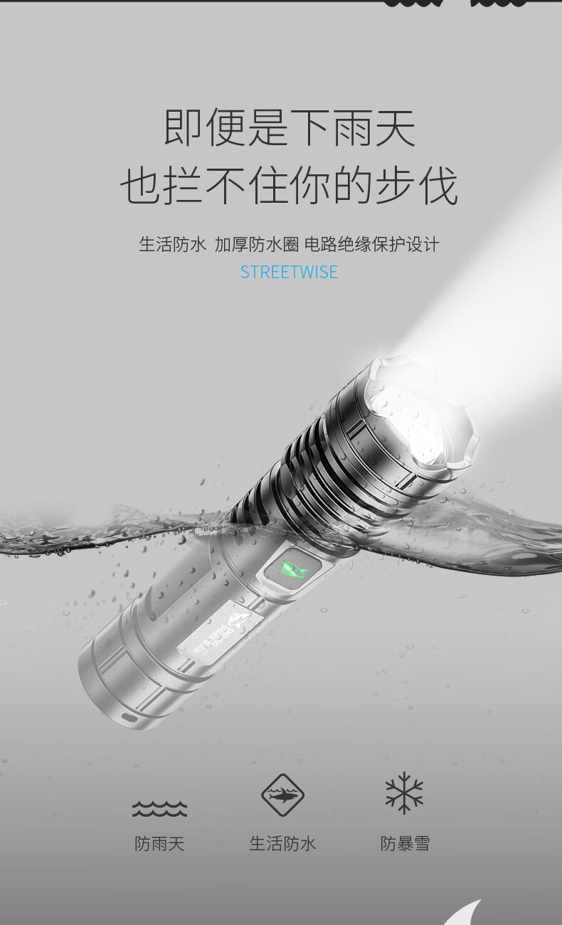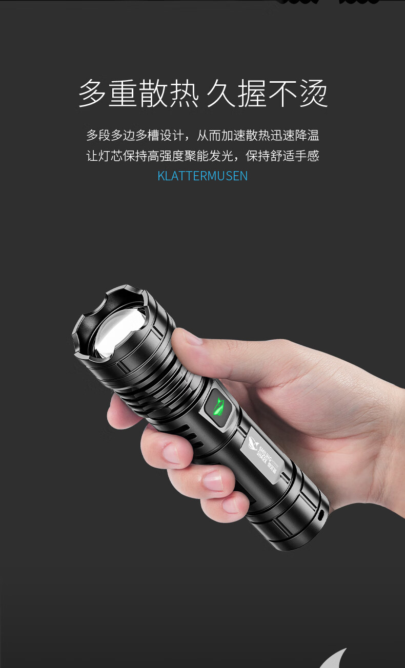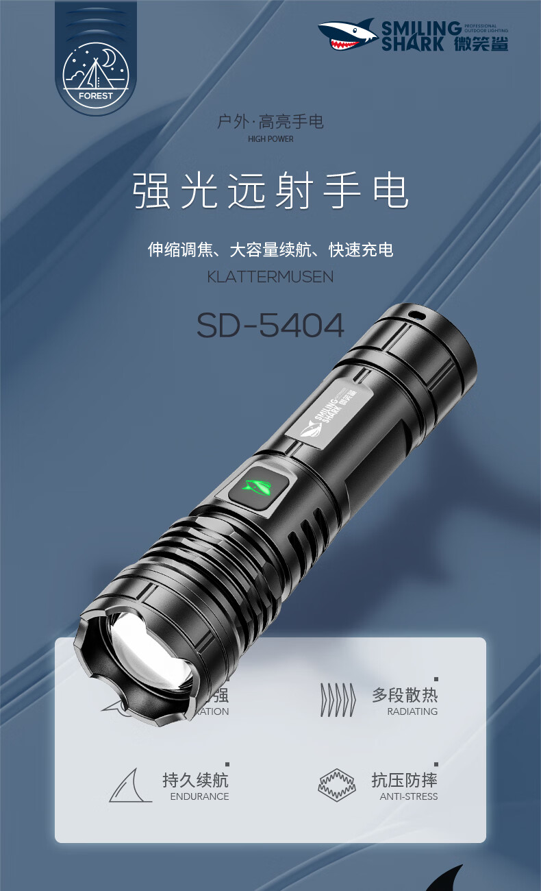 微笑鲨手电筒强光超亮可充电户外变焦远射长续航led家用小型便携照明灯 可伸缩调焦【高亮灯芯】小巧轻便