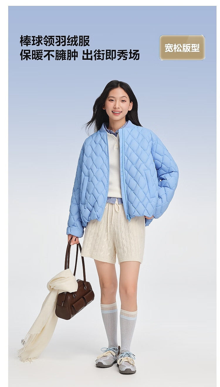 波司登25年羽绒服女士秋90绒轻薄棒球领宽松短款内胆时尚百搭外套
