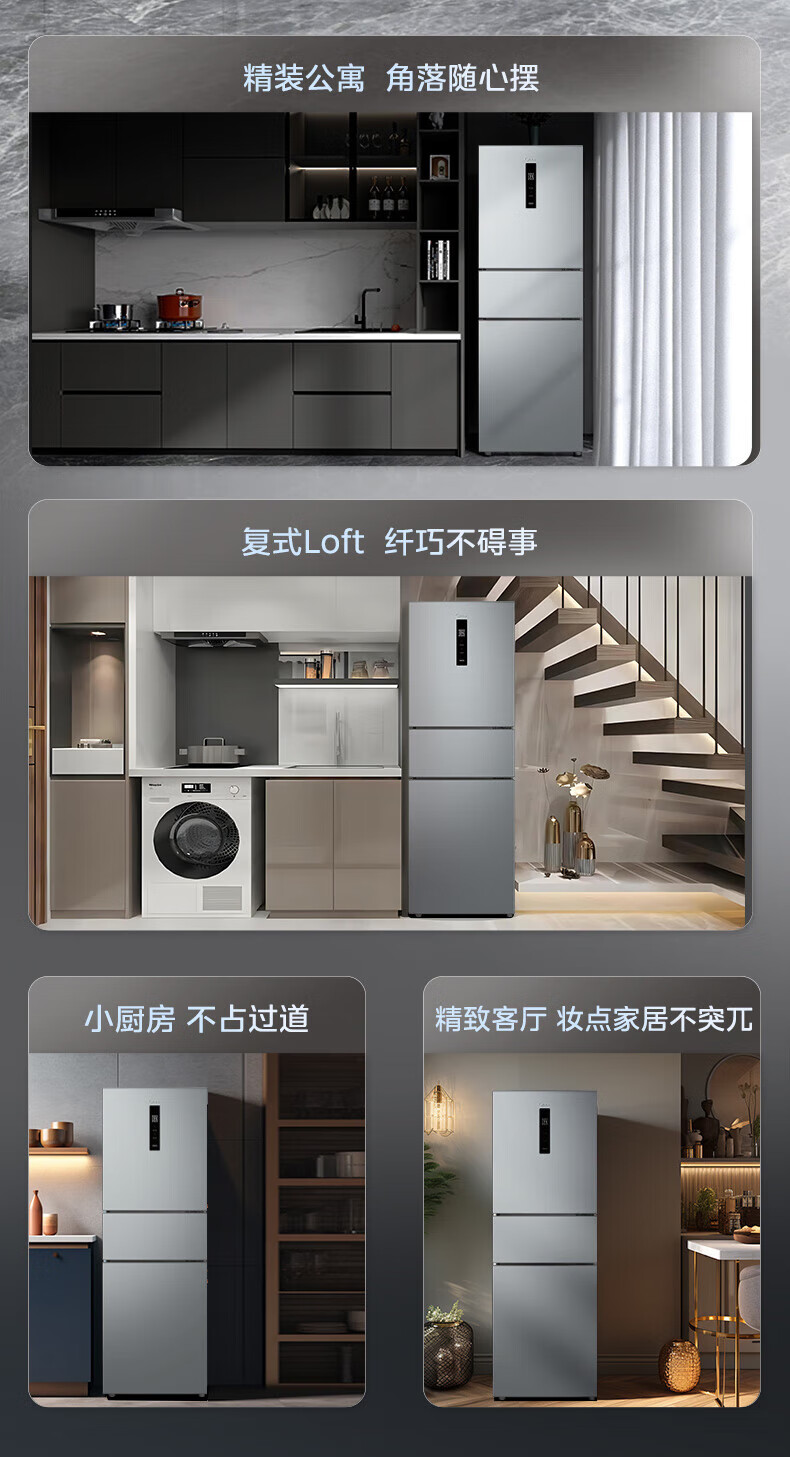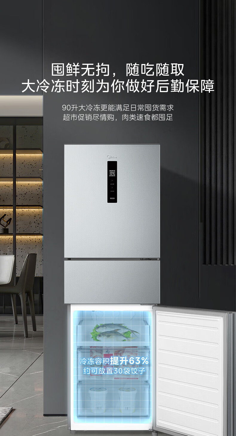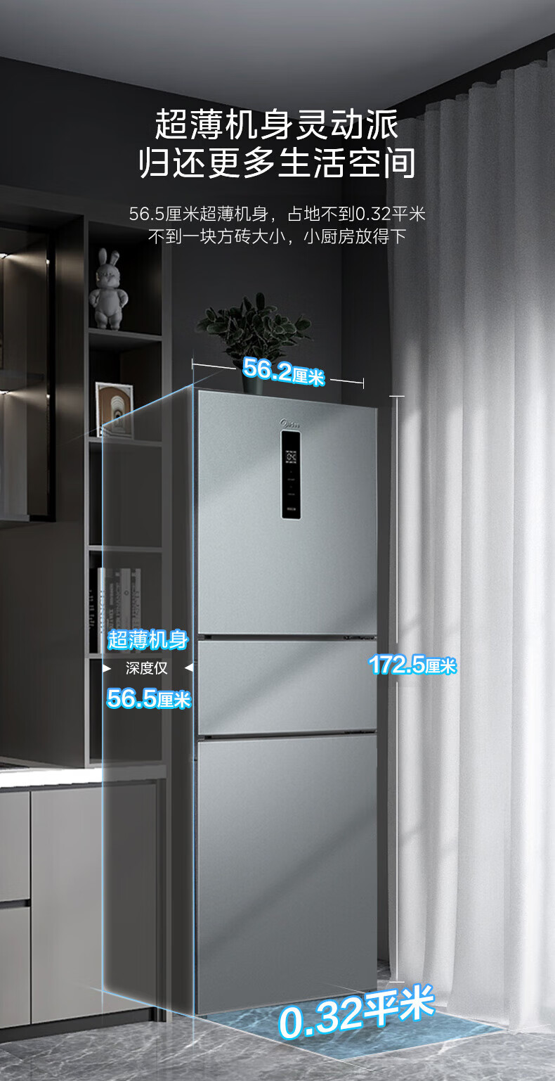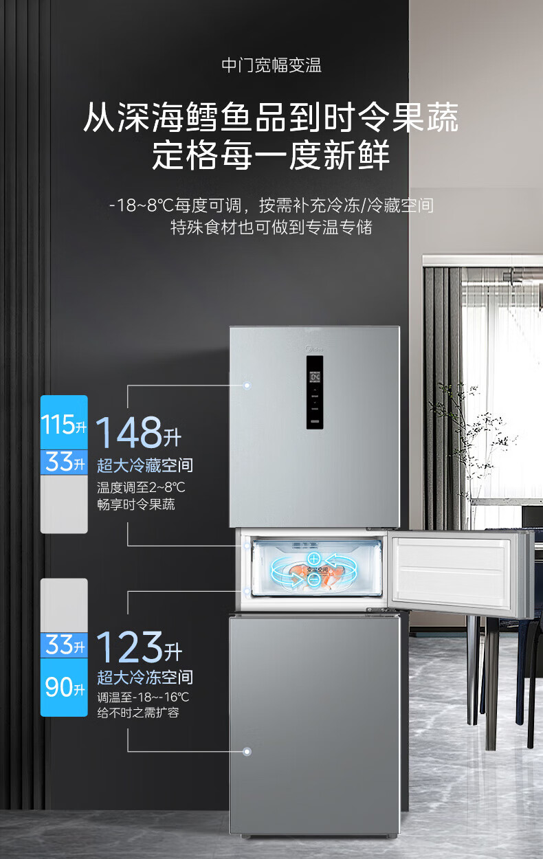 美的(Midea)249三门多门冰箱变频一级能效风冷无霜中门变温大冷冻空间节能低噪租房小型MR-249WTPE国家补贴