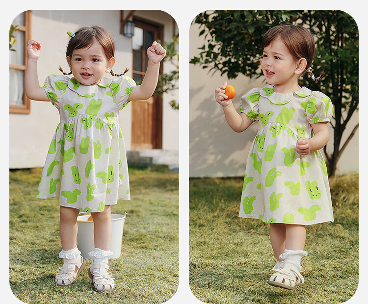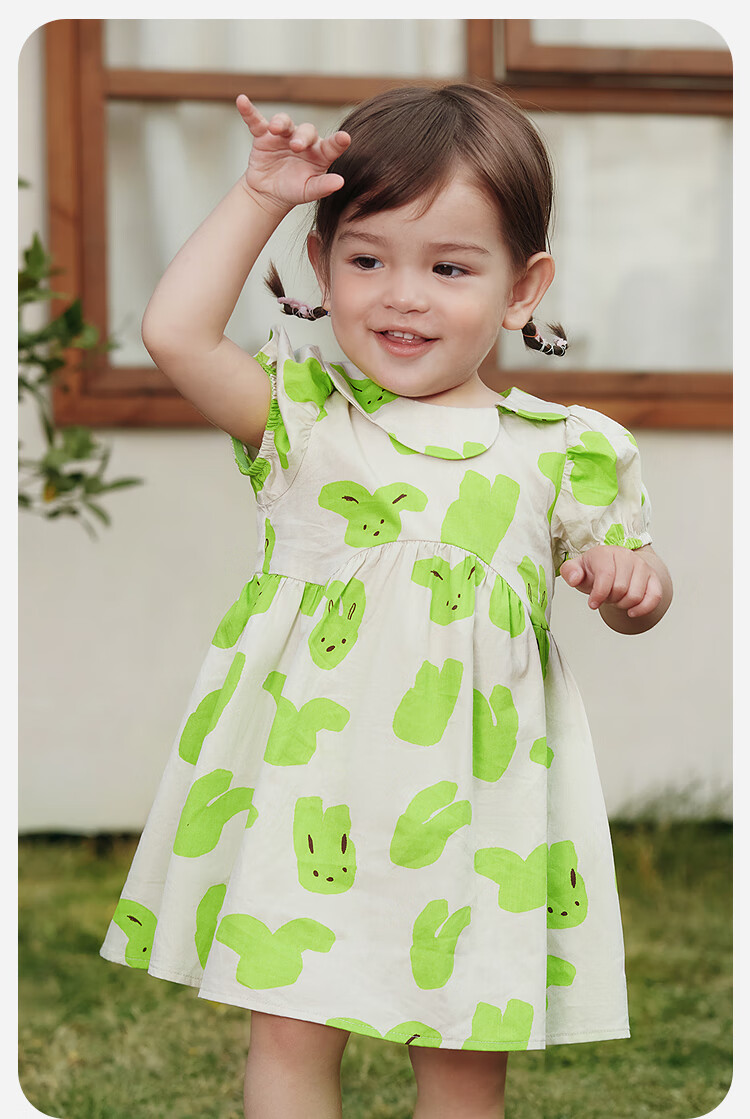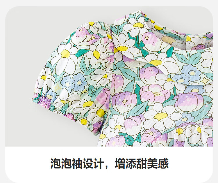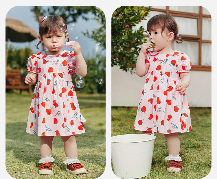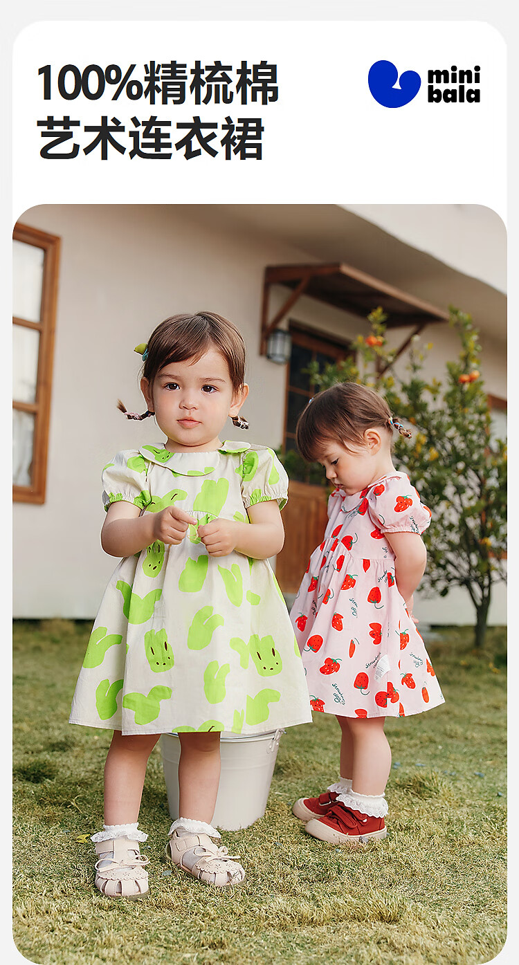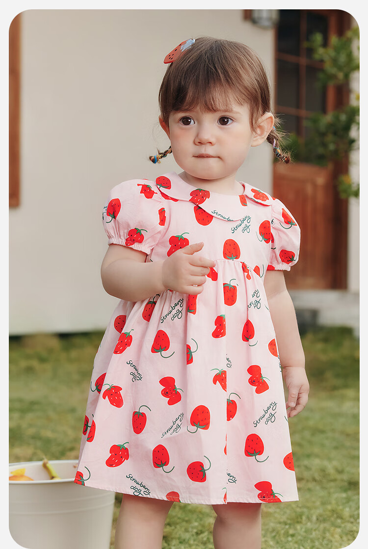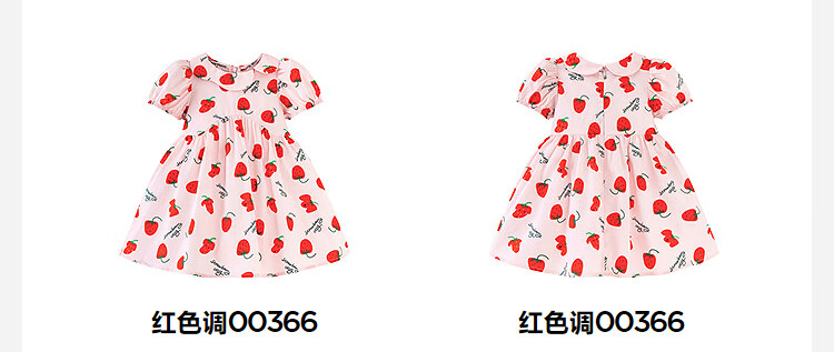 迷你巴拉迷你巴拉纯棉连衣裙女童儿童亲肤透气甜美泡泡袖夏季新款 红色调00366 90