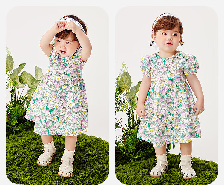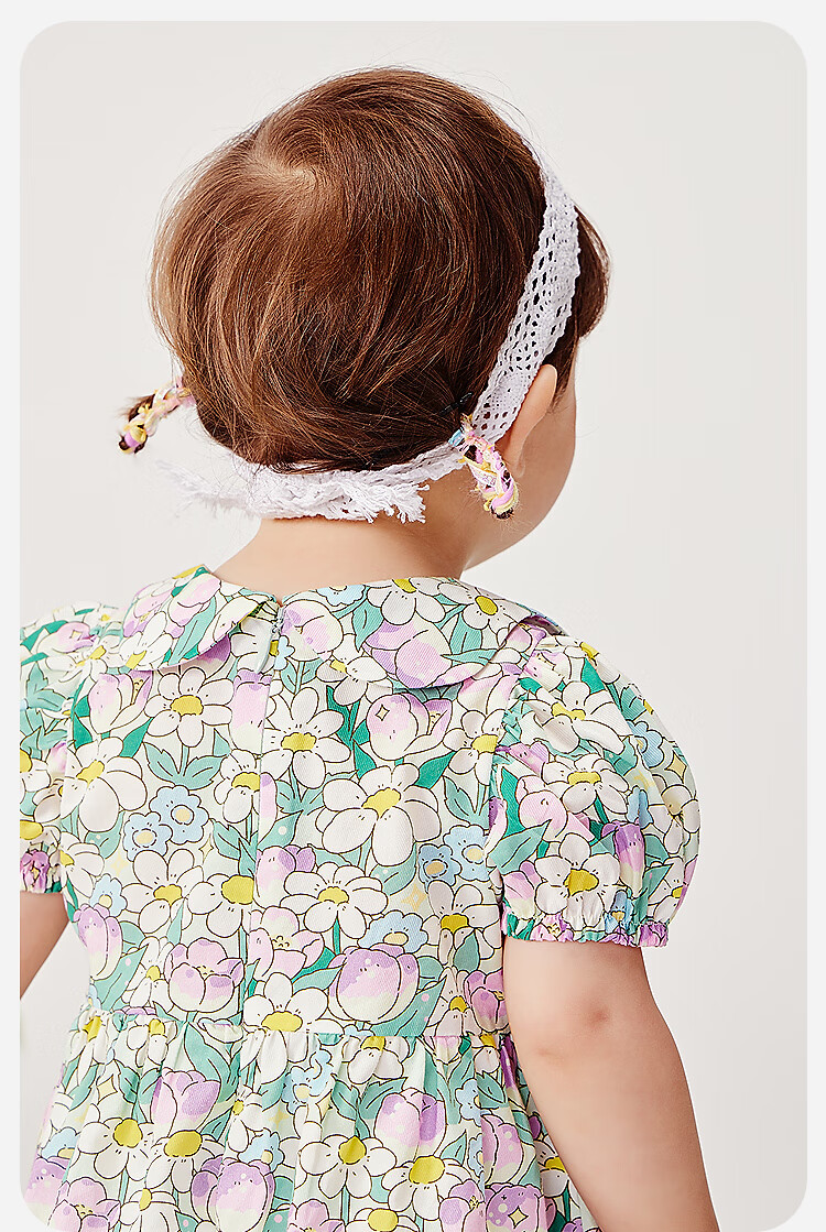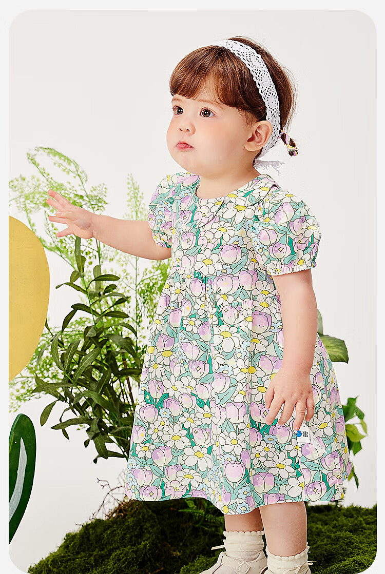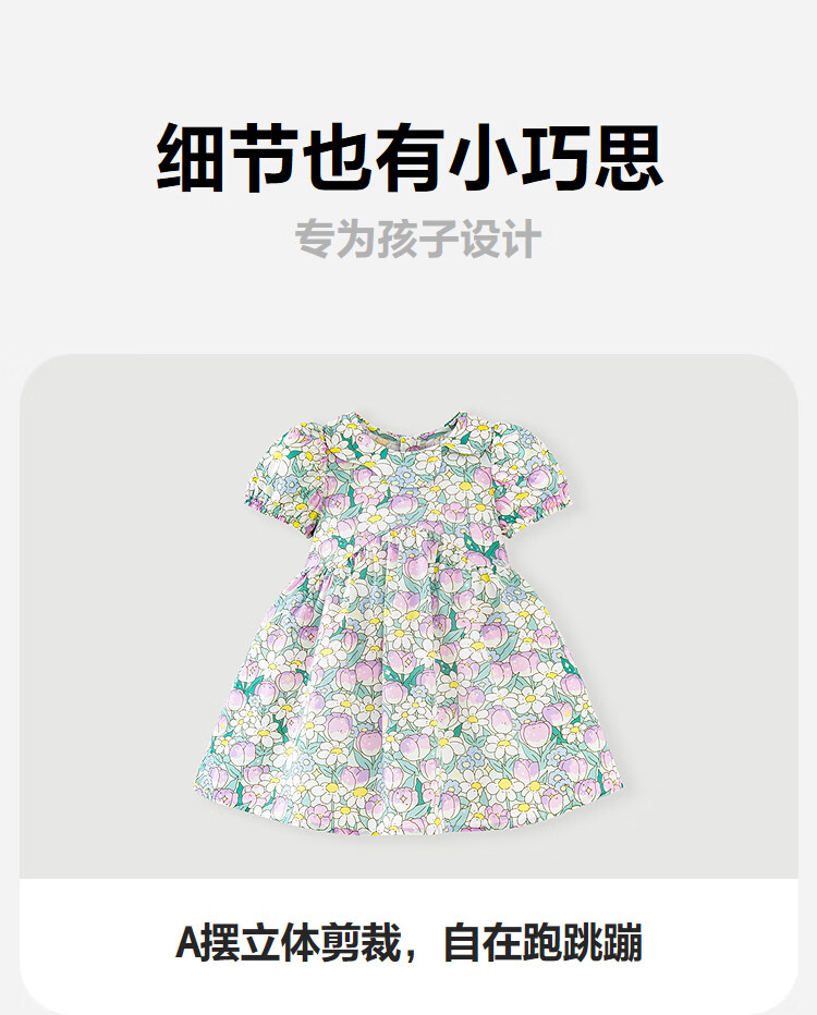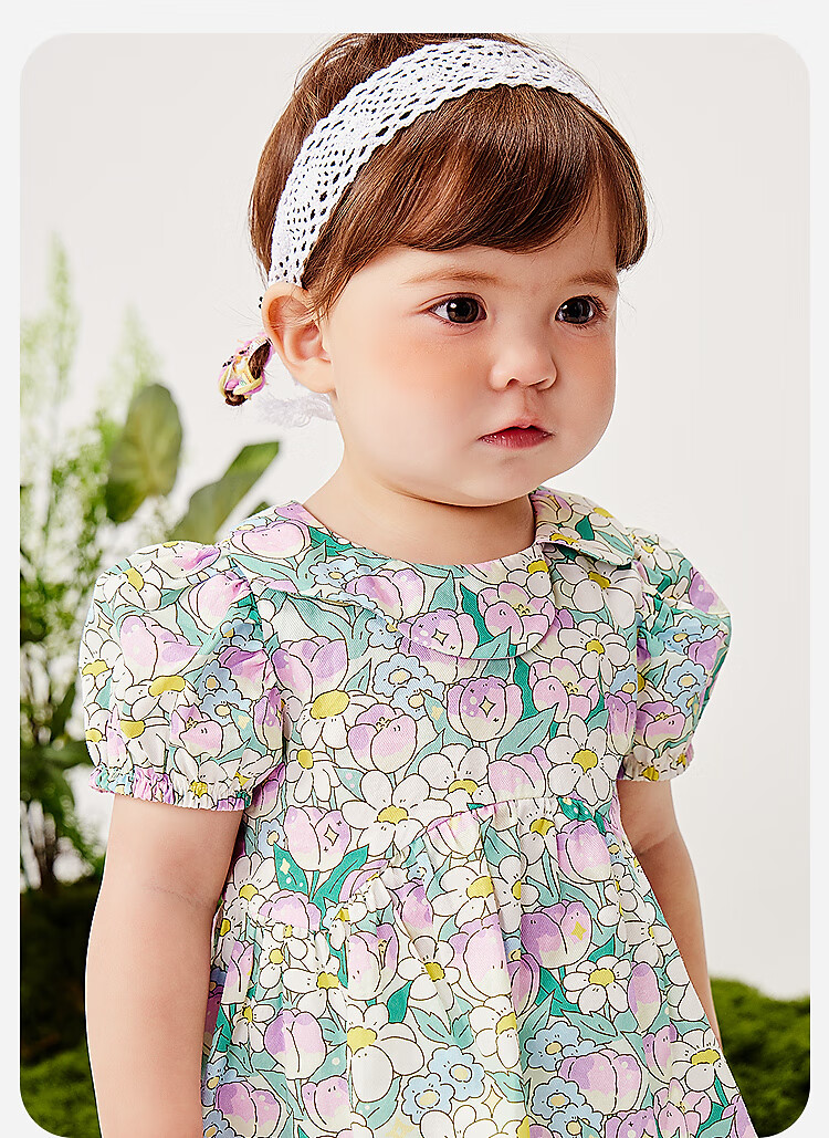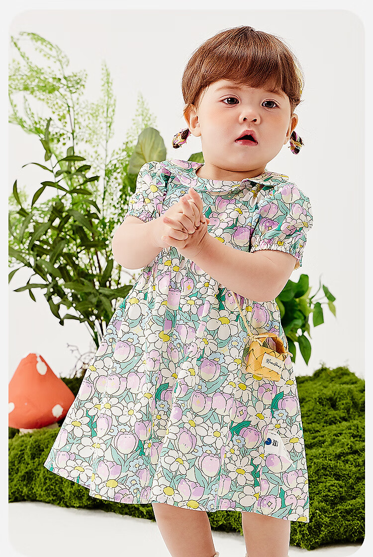 迷你巴拉迷你巴拉纯棉连衣裙女童儿童亲肤透气甜美泡泡袖夏季新款 红色调00366 90