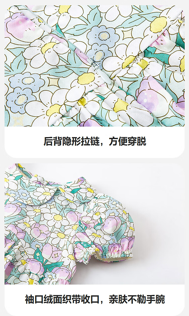 巴拉巴拉女童夏装婴儿短袖套装宝宝两件套甜美复古国风萌 米白10302 100