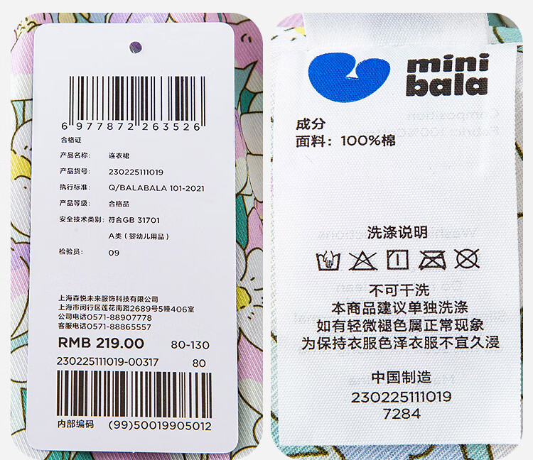 迷你巴拉巴拉男女童长袖套装潮流拼色上衣长裤两件套春季新款 海盐千层 100 【91-100cm 12-16kg】