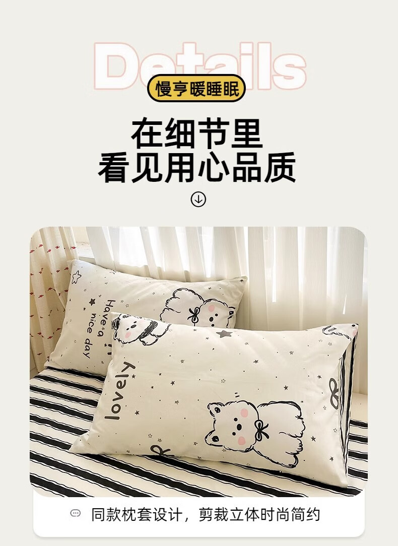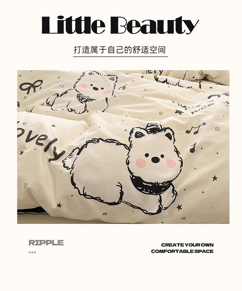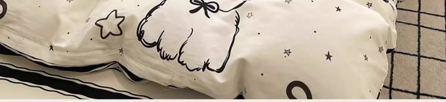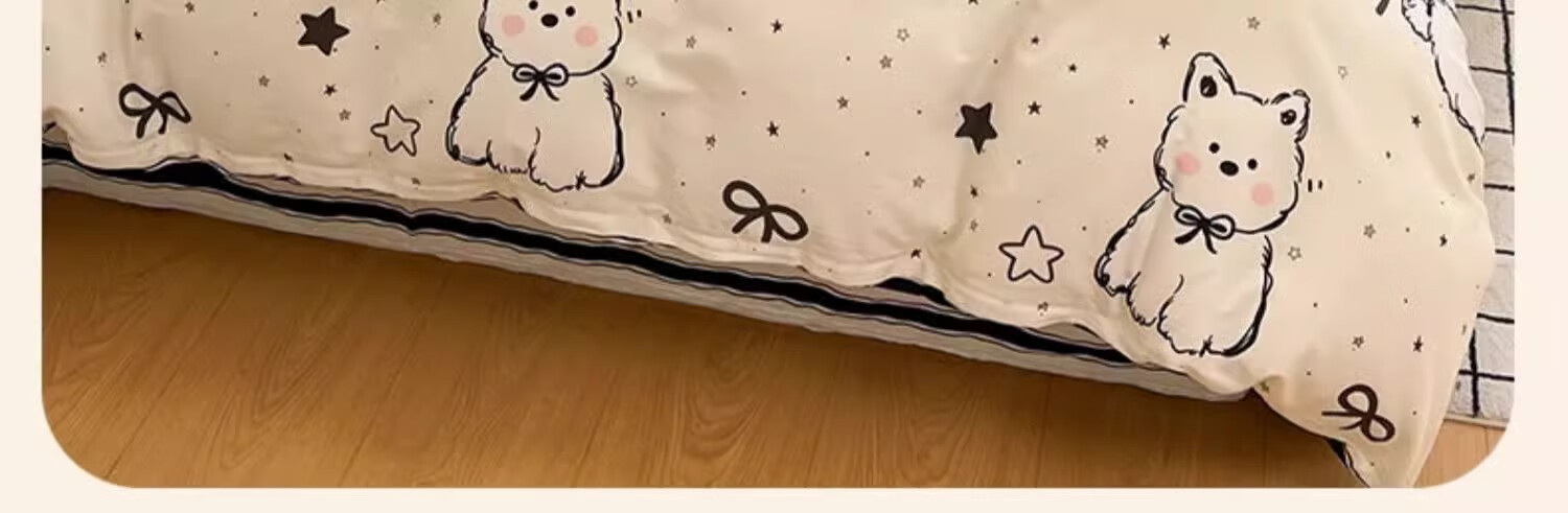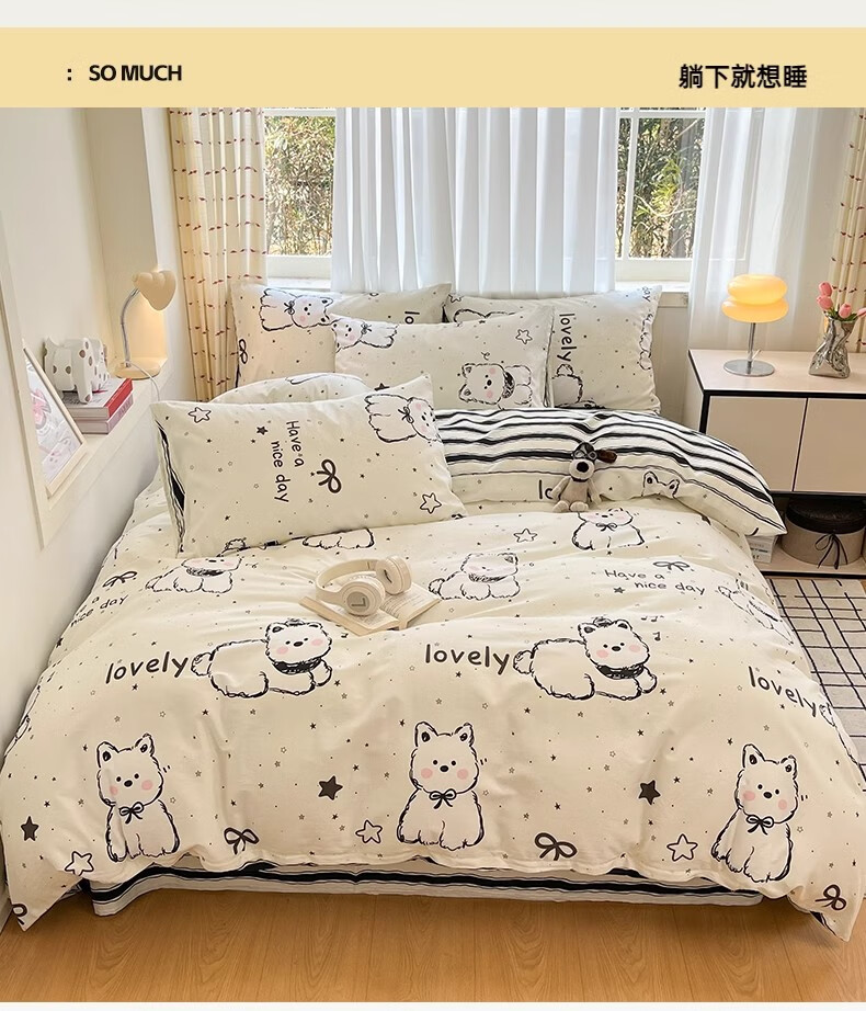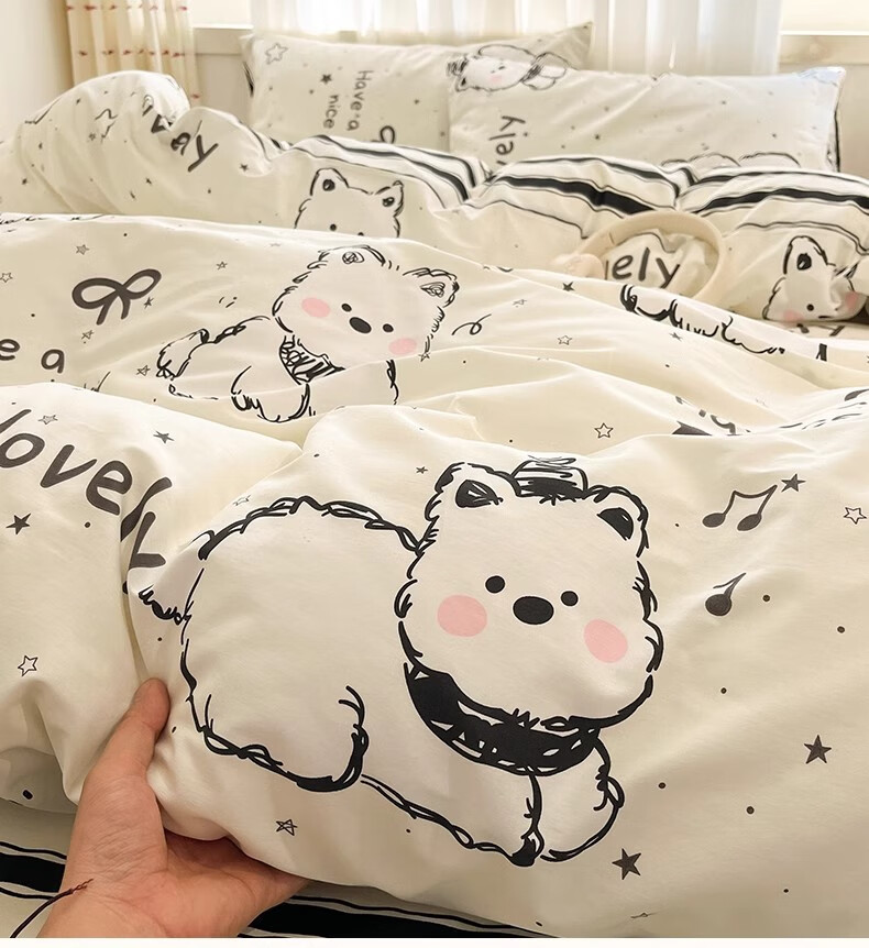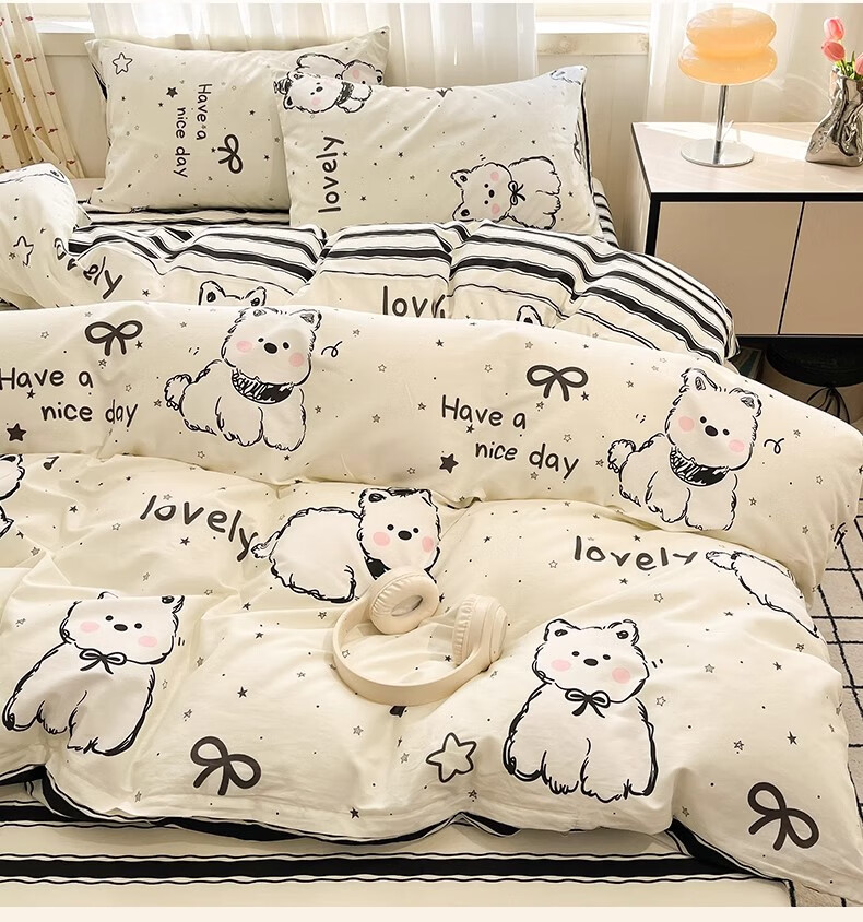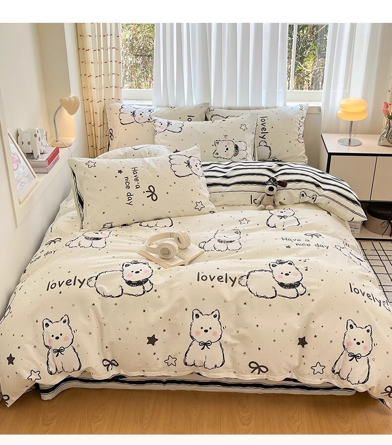 无印良品100%全棉床上四件套纯棉2026新款卡通狗狗被套床单床笠款床品套件 黑白西高地【100%全棉亲肤柔软】 床单款 1.8m四件套-被套200x230cm