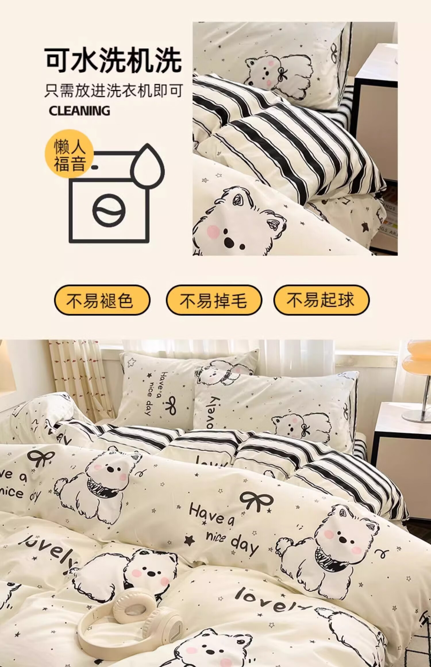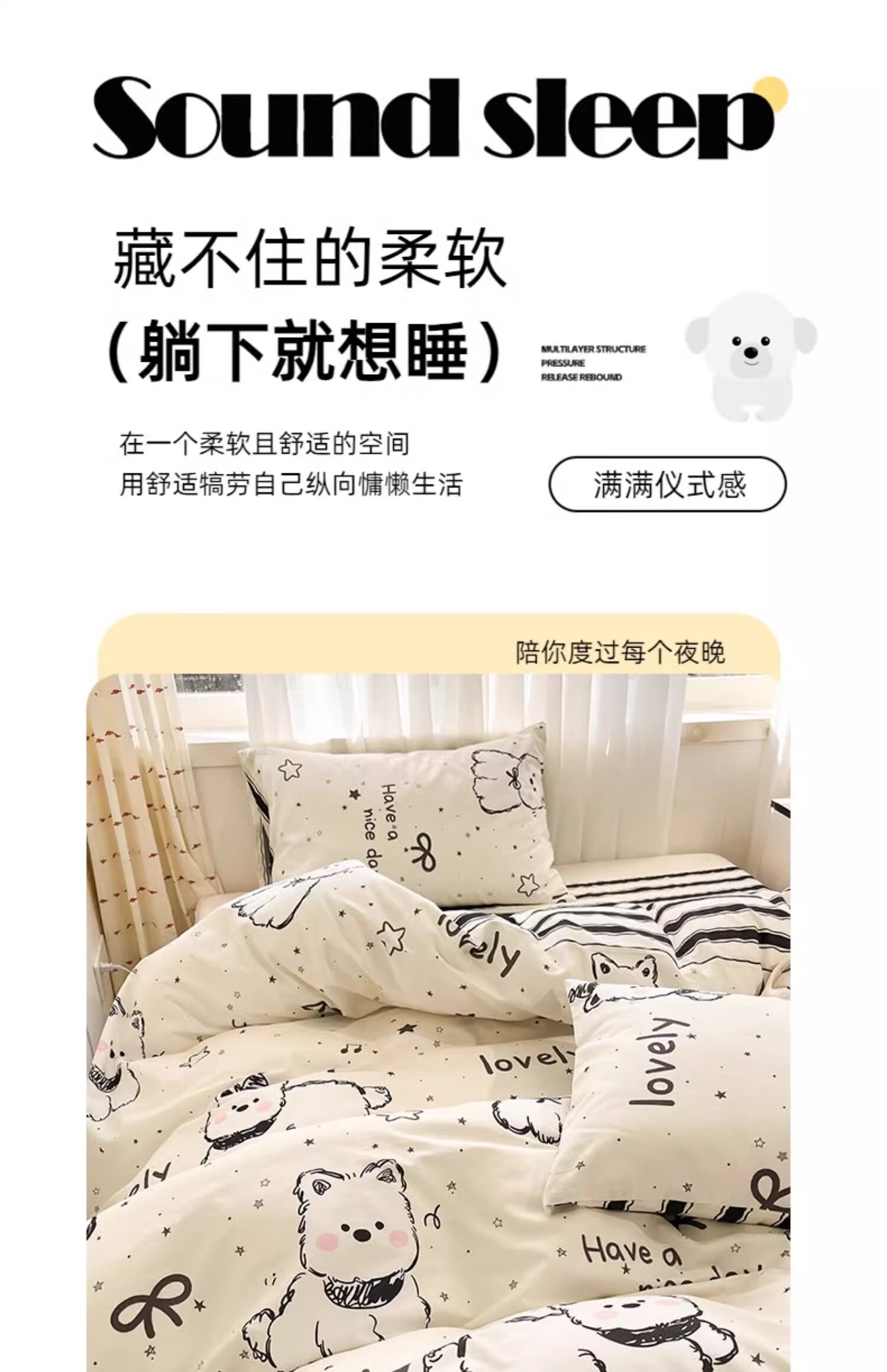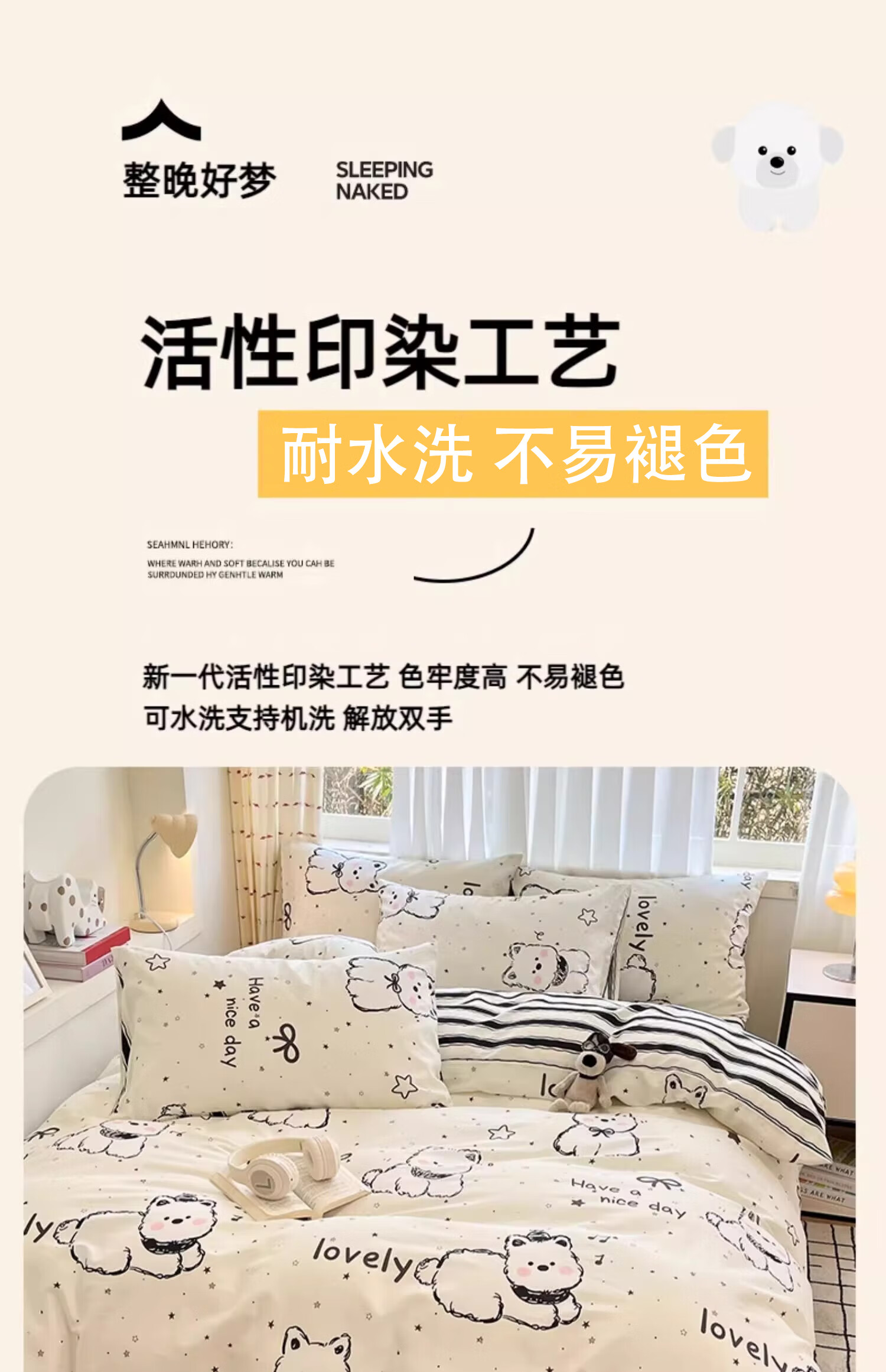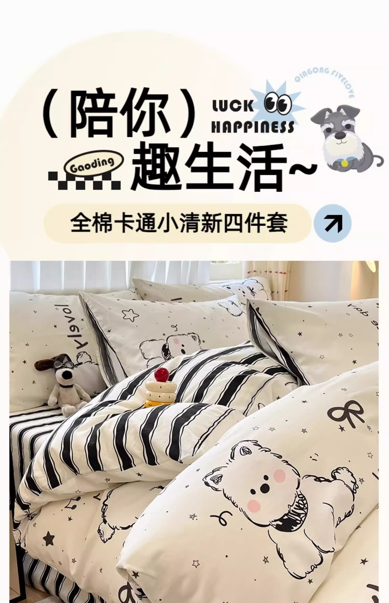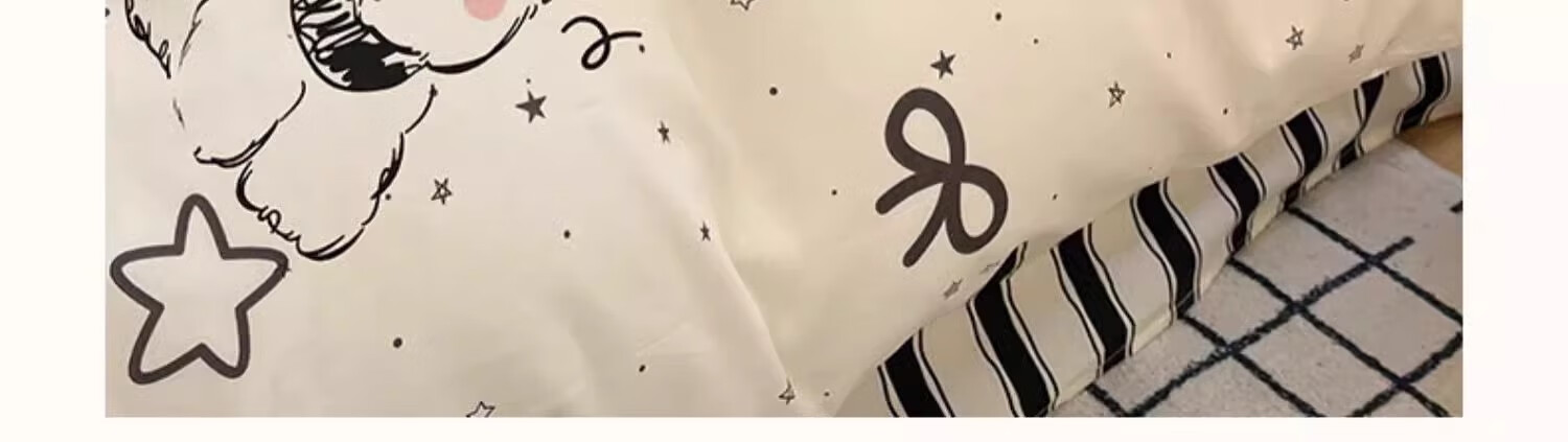 无印良品100%全棉床上四件套纯棉2026新款卡通狗狗被套床单床笠款床品套件 黑白西高地【100%全棉亲肤柔软】 床单款 1.8m四件套-被套200x230cm