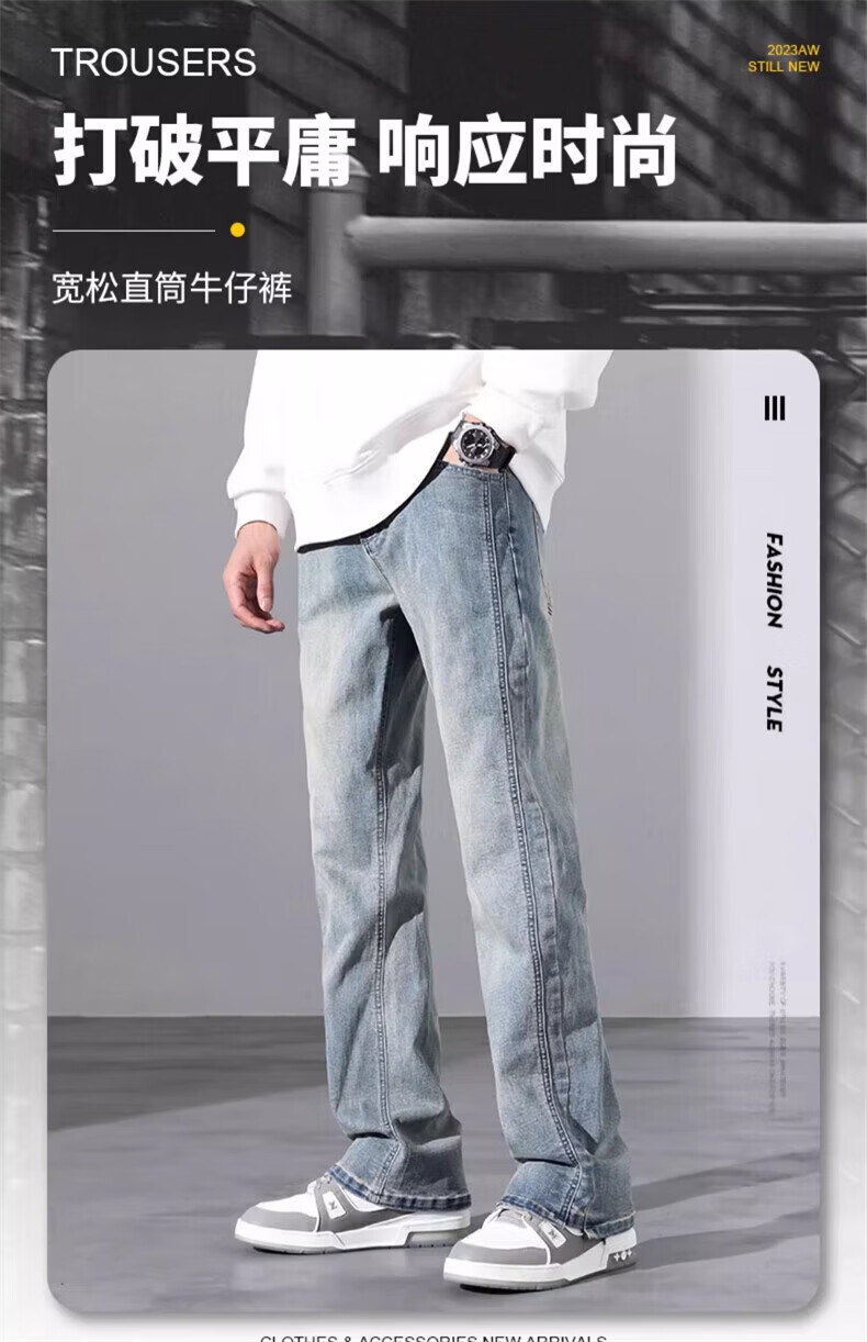 真维斯(Jeanswest)春季黑色复古牛仔裤男宽松直筒2026春秋高中生美式微喇休闲长裤子 怀旧蓝 S