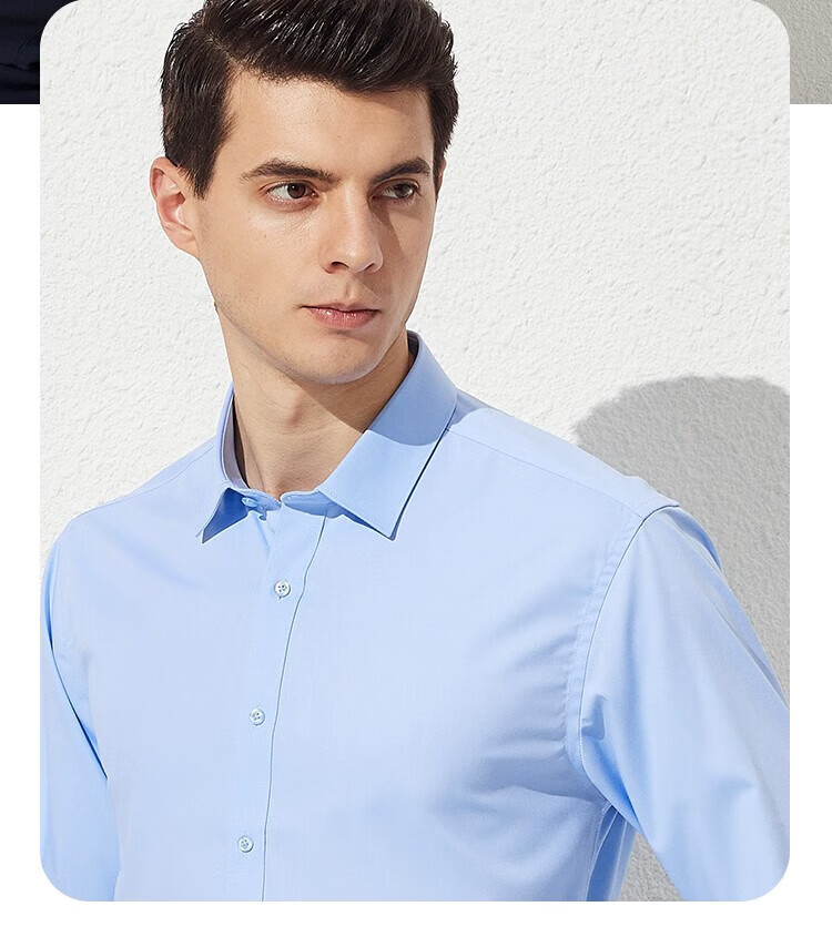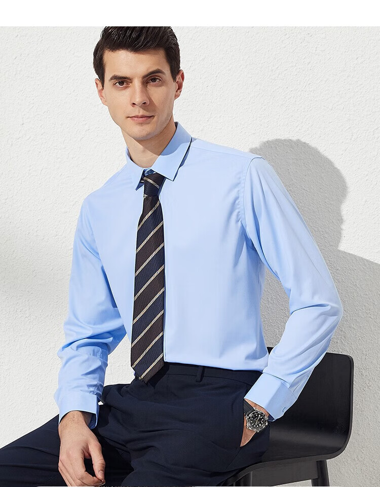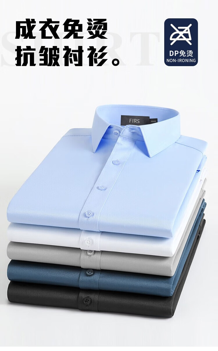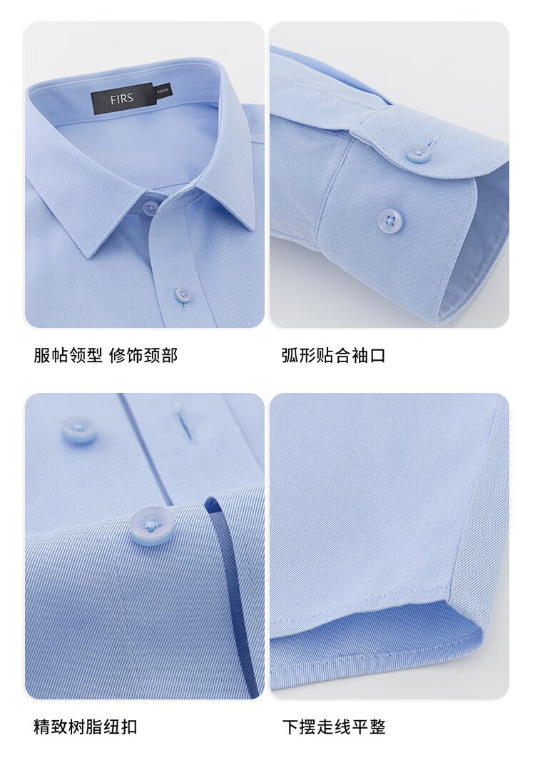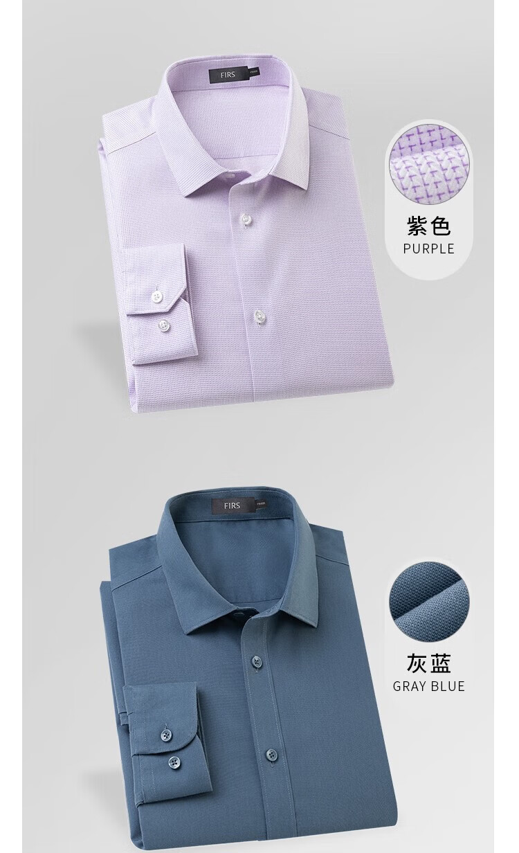 杉杉(FIRS)【DP成衣免烫】衬衫男长袖纯棉四季款轻商务上衣抗皱易打理衬衣男 灰蓝 38
