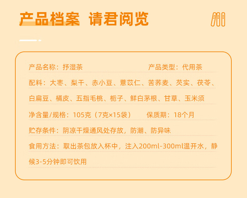 方回春堂抒湿茶(五指毛桃茯苓茶)105g 7g*15袋 拒绝湿态 轻松自在