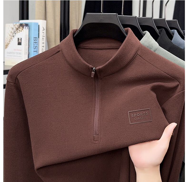 雅鹿男装德绒拉链卫衣男2025冬季新款加厚保暖套头休闲男士上衣 豆绿 XL (175)(建议140-155斤)