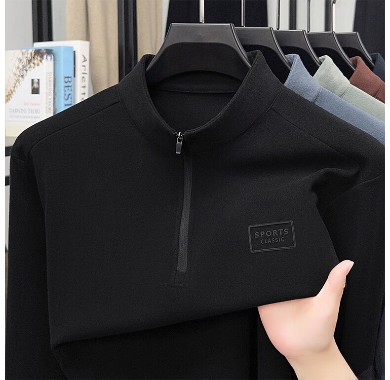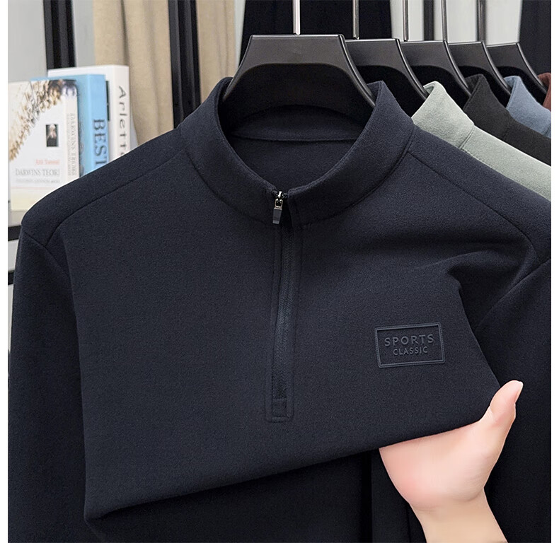 雅鹿男装德绒拉链卫衣男2025冬季新款加厚保暖套头休闲男士上衣 黑色 L (170)(建议120-140斤)
