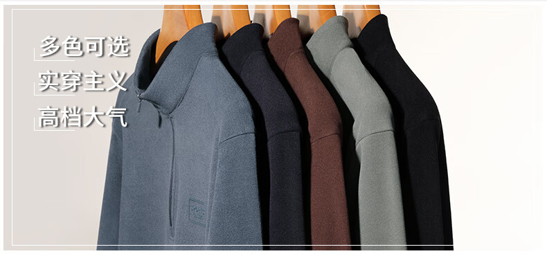 雅鹿男装德绒拉链卫衣男2025冬季新款加厚保暖套头休闲男士上衣 豆绿 L (170)(建议120-140斤)
