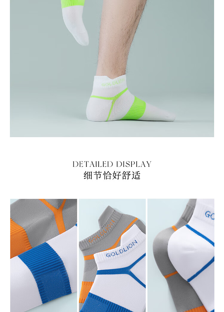 金利来男士袜子男7A级抗菌防臭短袜透气吸汗中筒袜休闲运动袜5双装 男短袜461灰色*3+白绿*2 均码