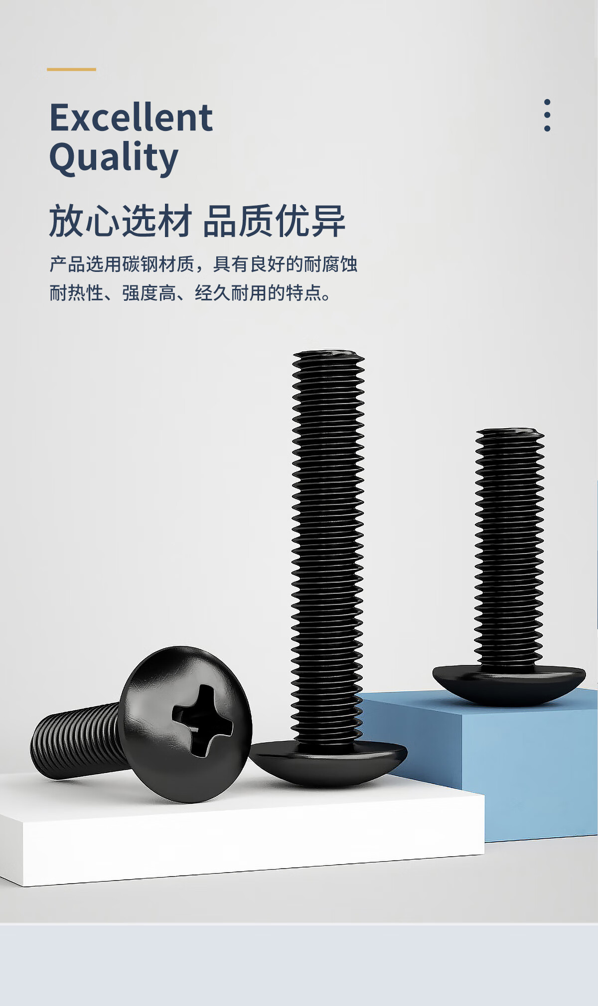 固万基(GUWANJI)铁黑十字大扁头螺丝大伞头蘑菇圆头机丝螺栓螺丝钉M2M3-M6 M2x3[2000个]