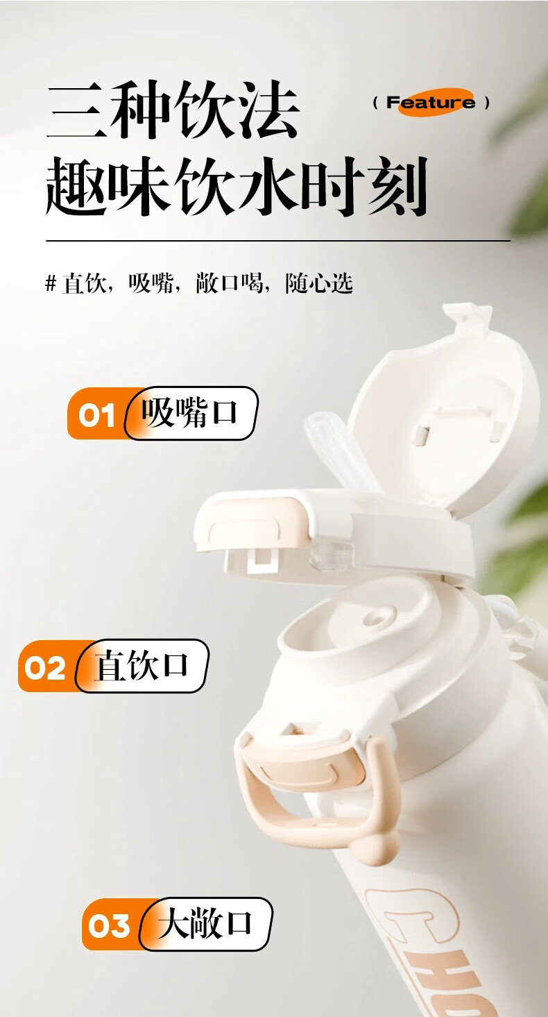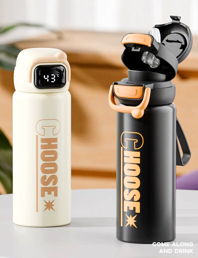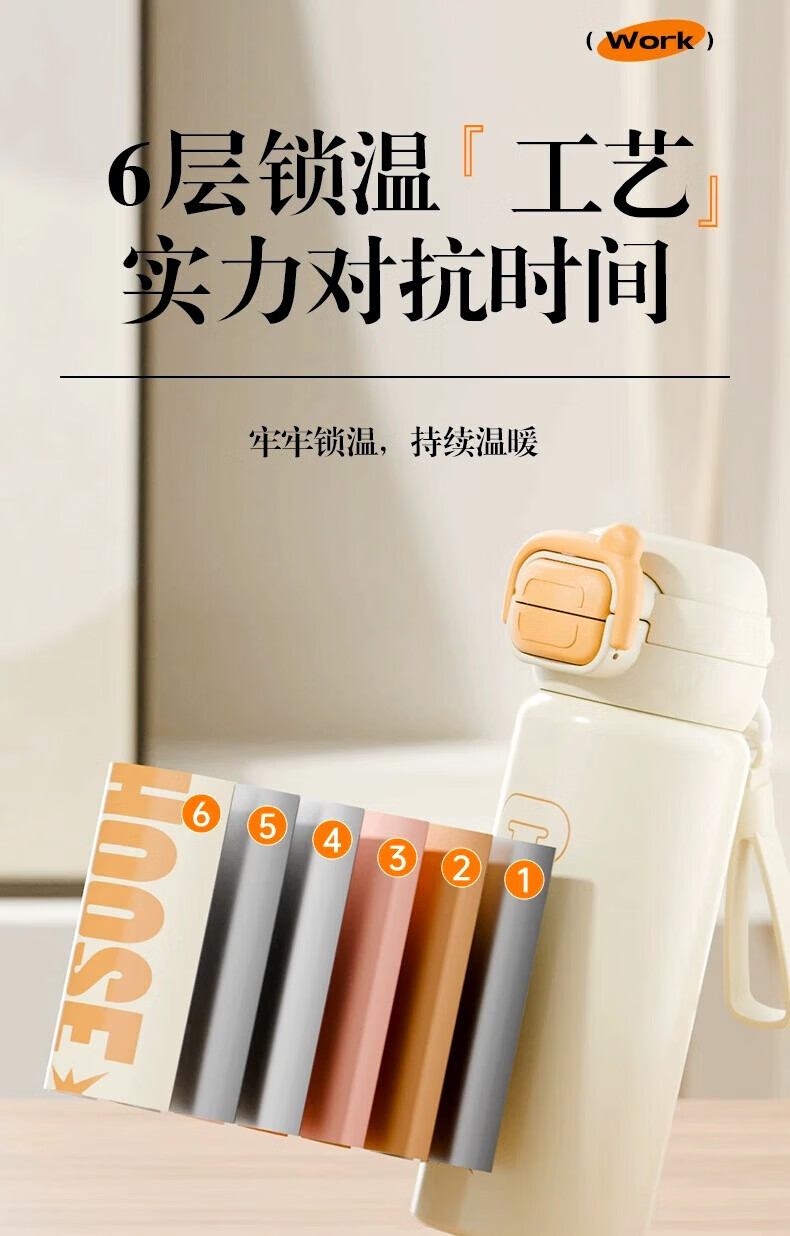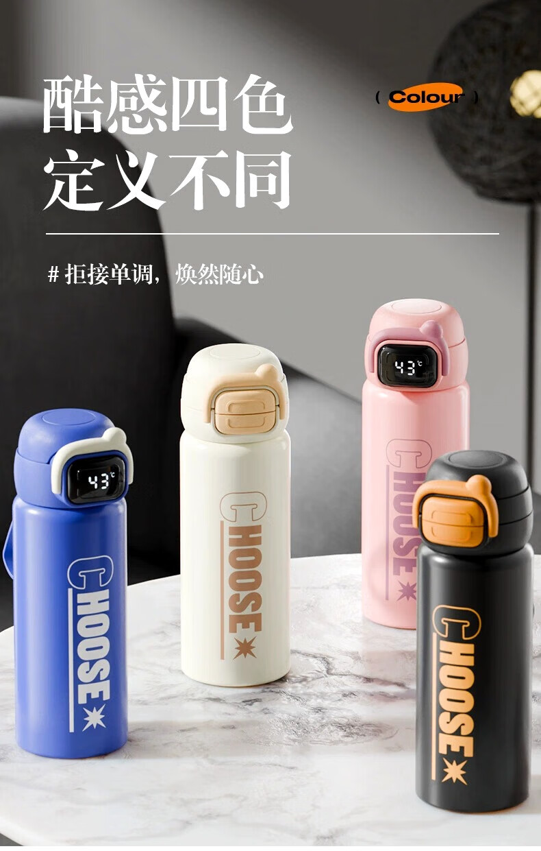WFFPM德国品牌316不锈钢显温男女士保温杯高颜值双饮学生运动随行水杯 粉色智能款【智能显温】 500ML